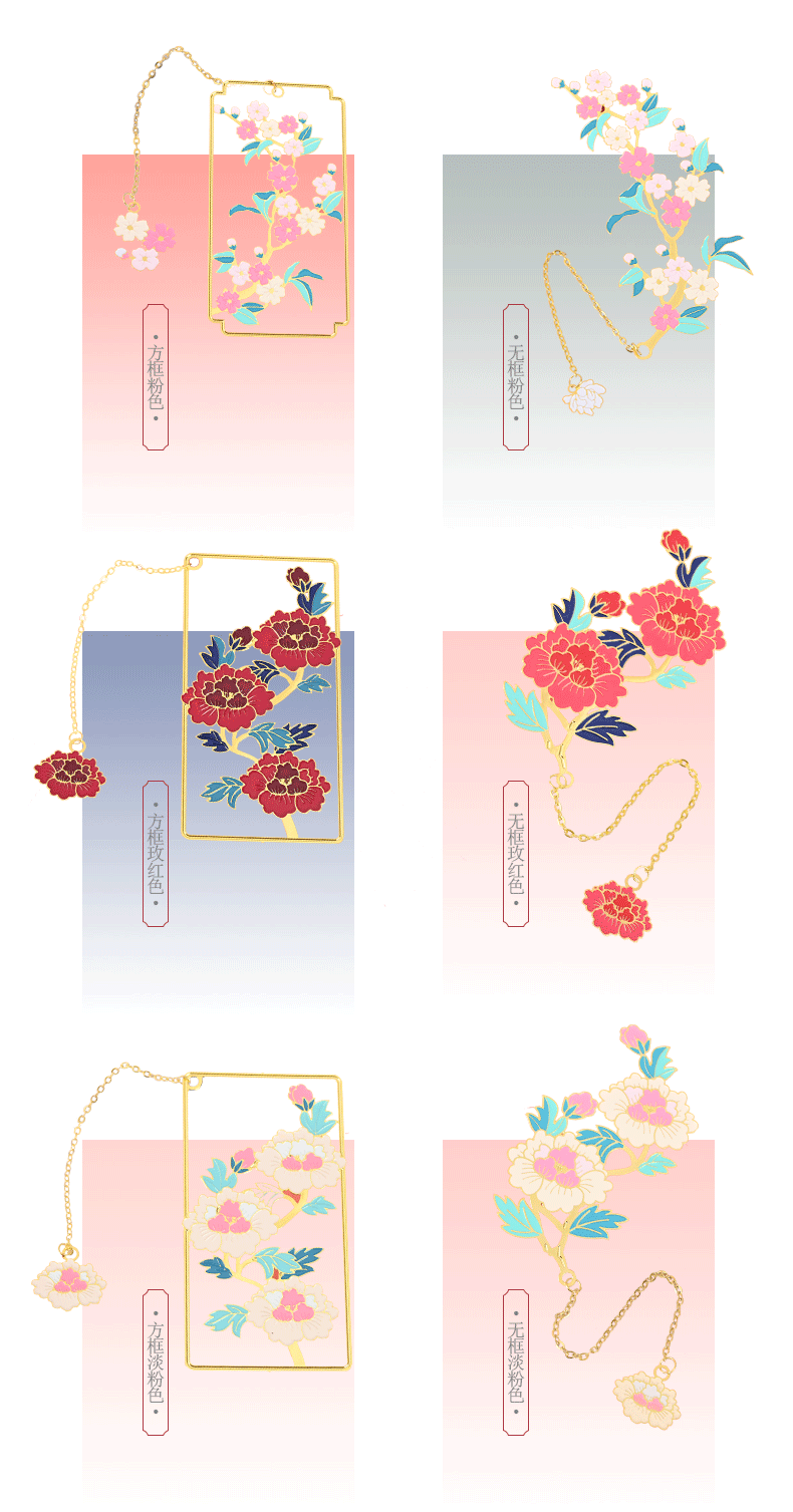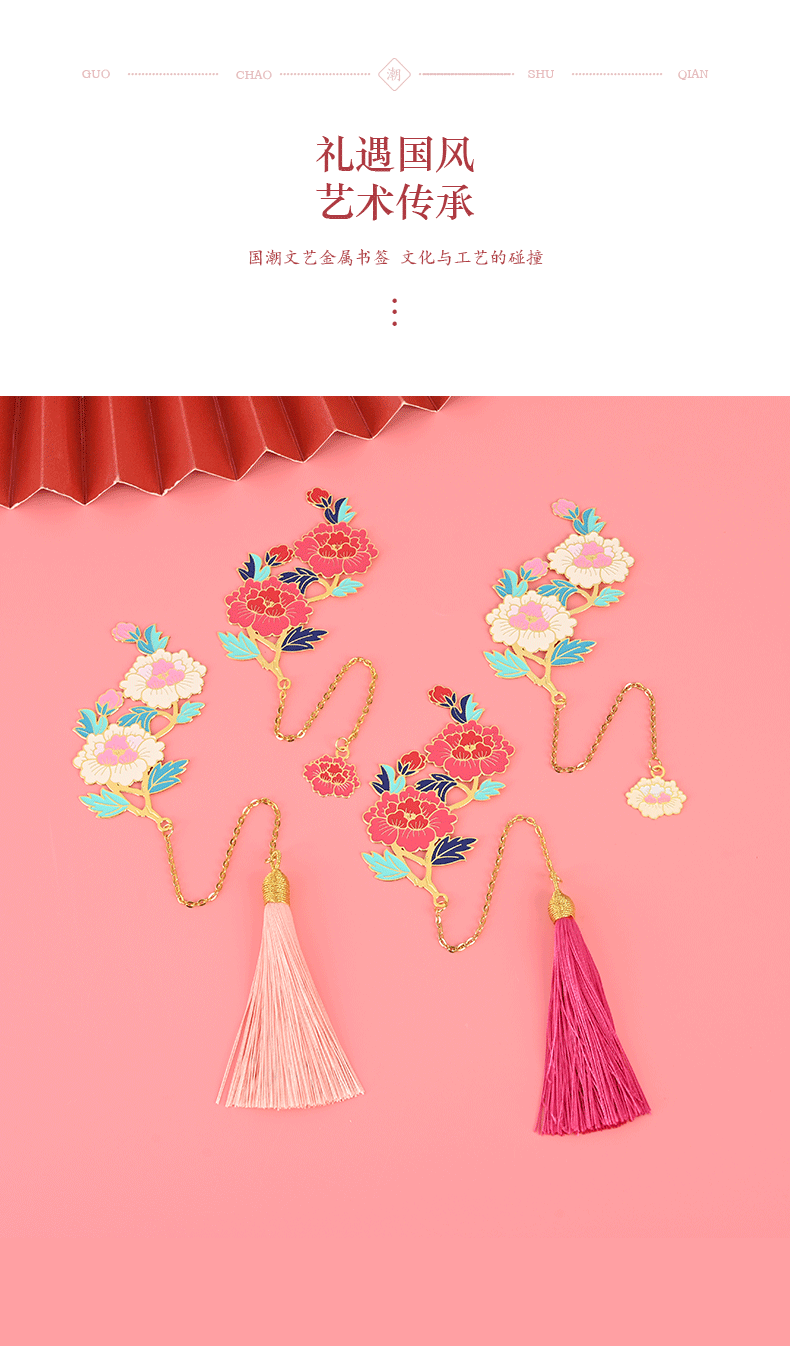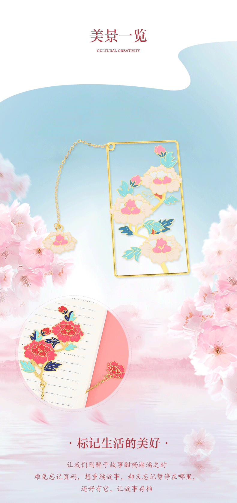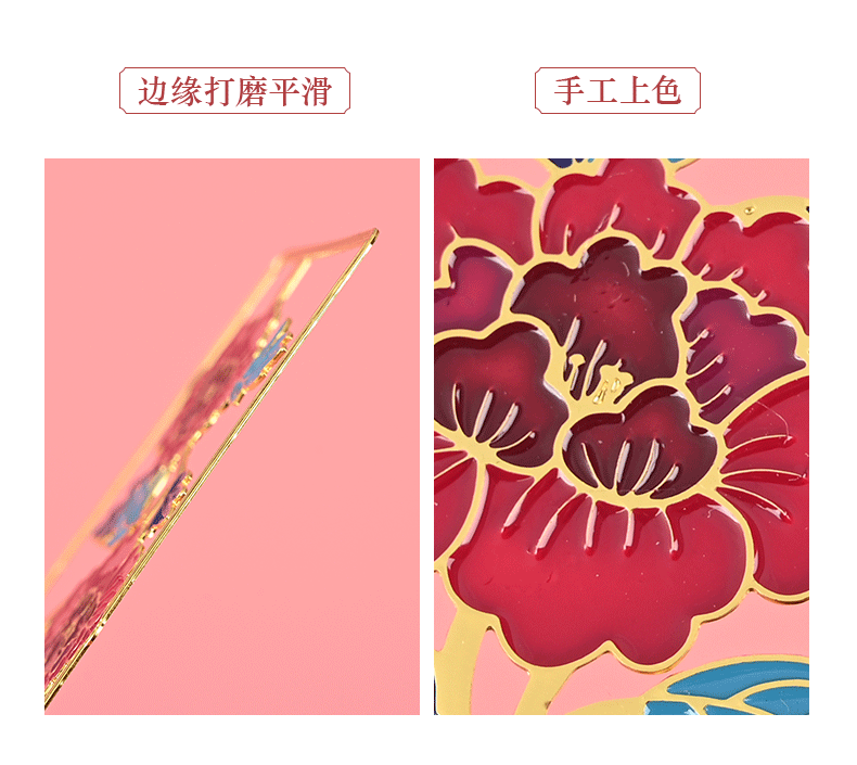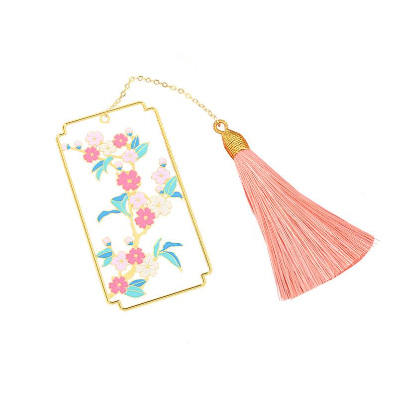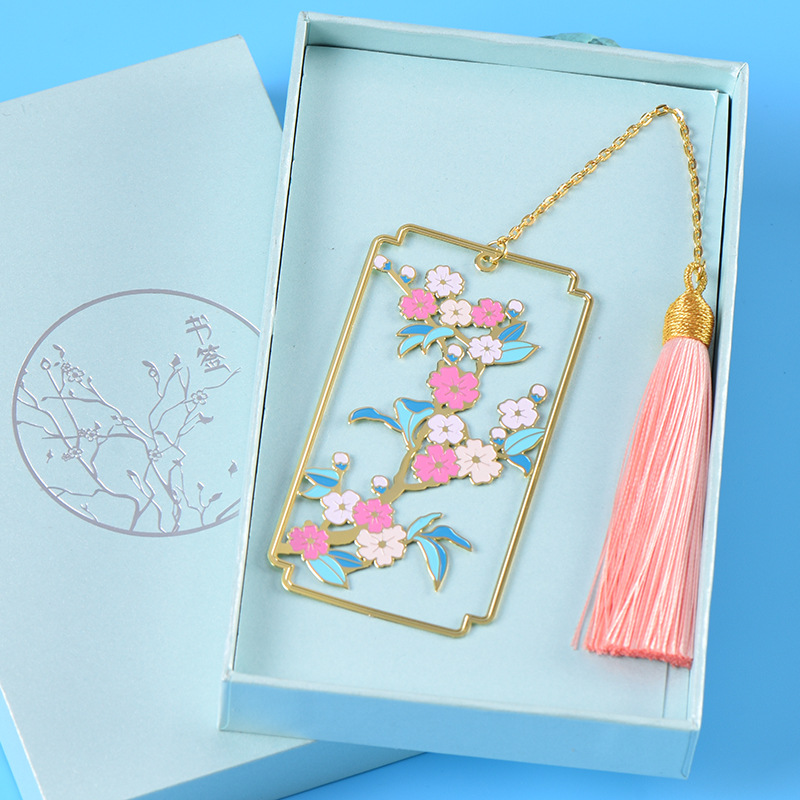 国花牡丹金属书签现货批发镂空烤漆樱花玫瑰书签文创盲盒小礼品