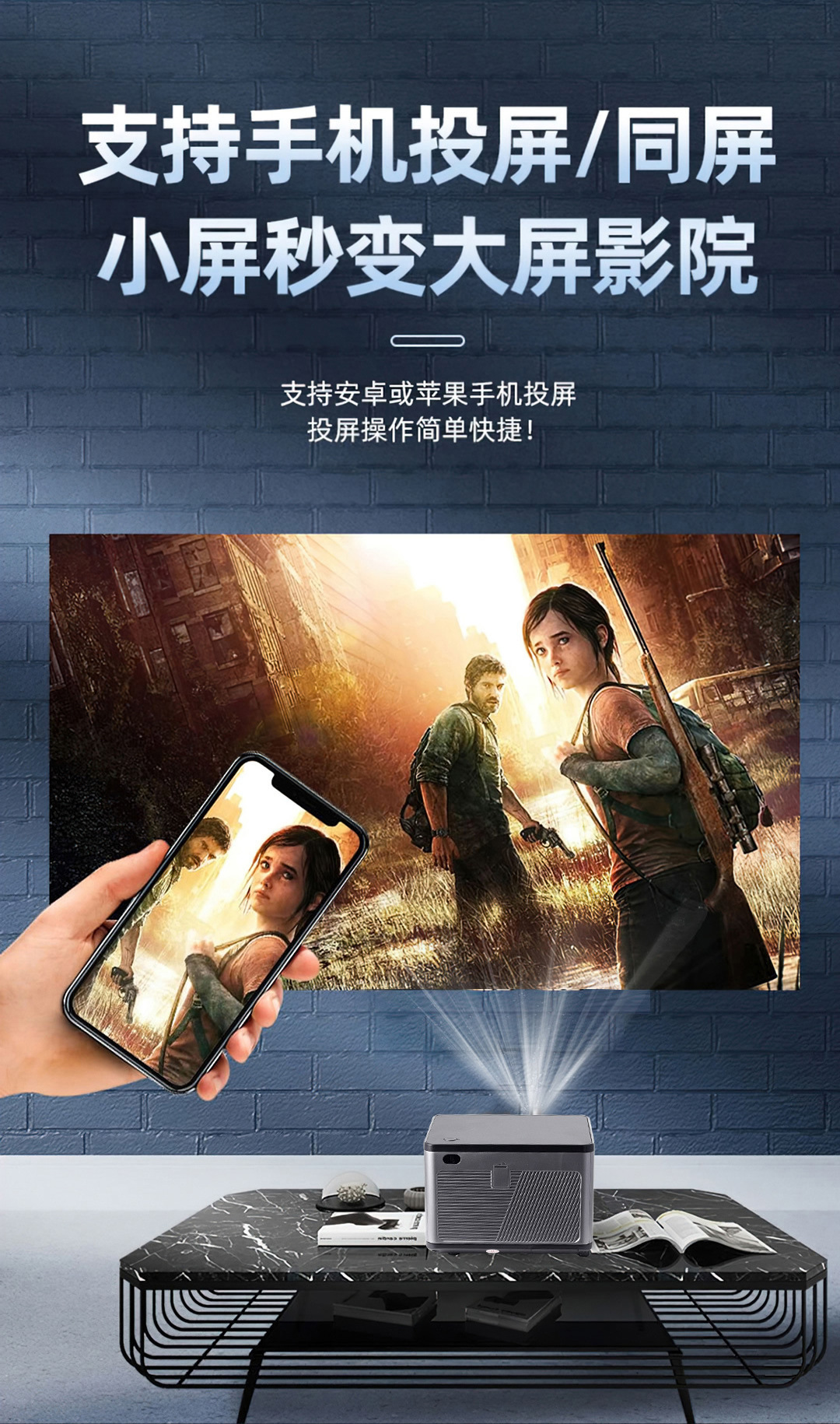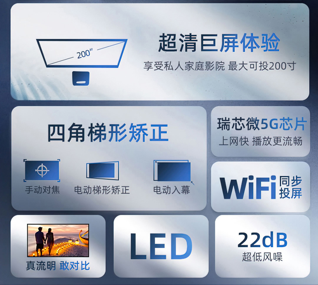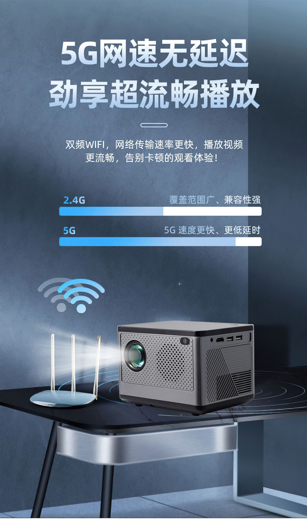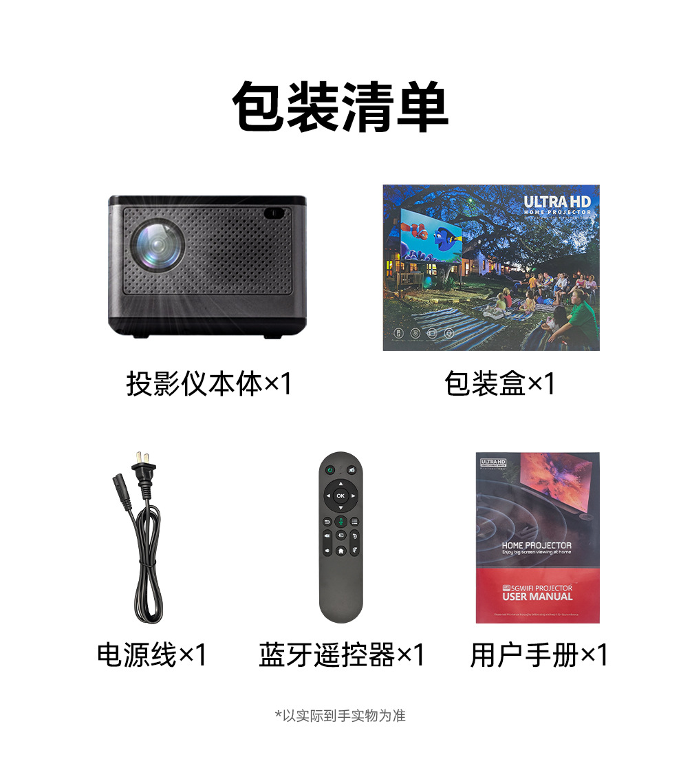 跨境专供x5双频WiFi高清便携式家用投影机室内手机同屏智能投影仪