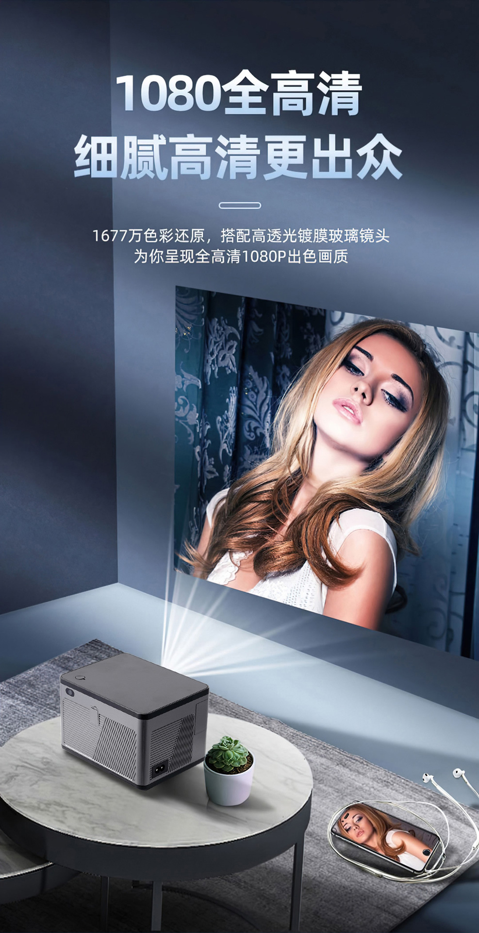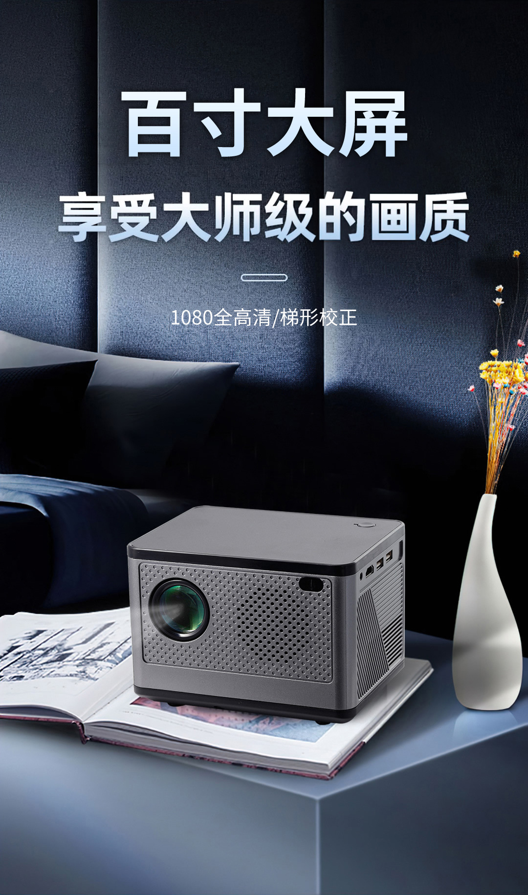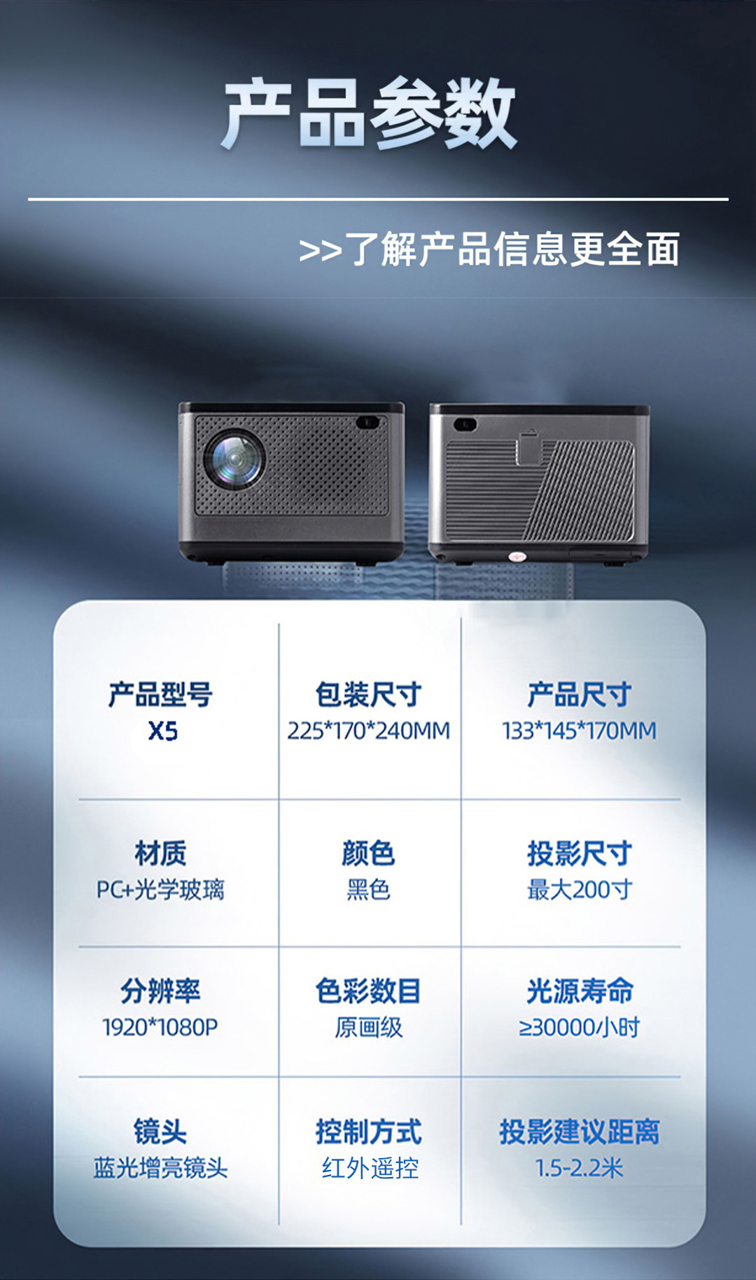 跨境专供x5双频WiFi高清便携式家用投影机室内手机同屏智能投影仪