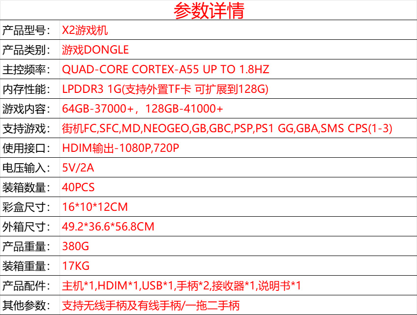 跨境热卖X2家用游戏机电视HDIM高清游戏盒子GD10双人无线游戏街机