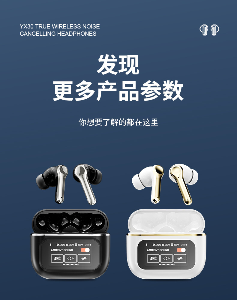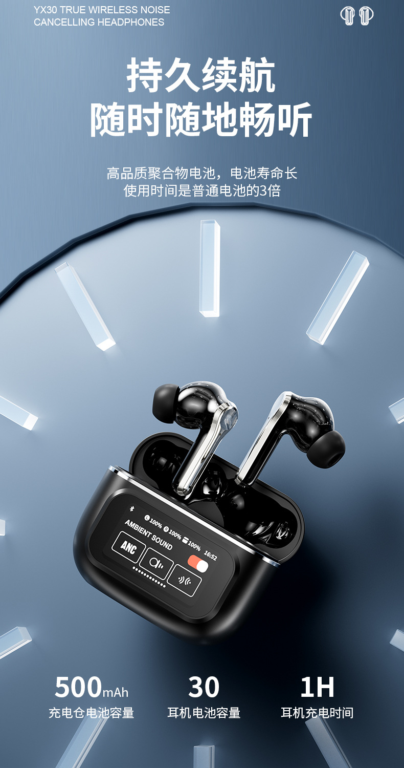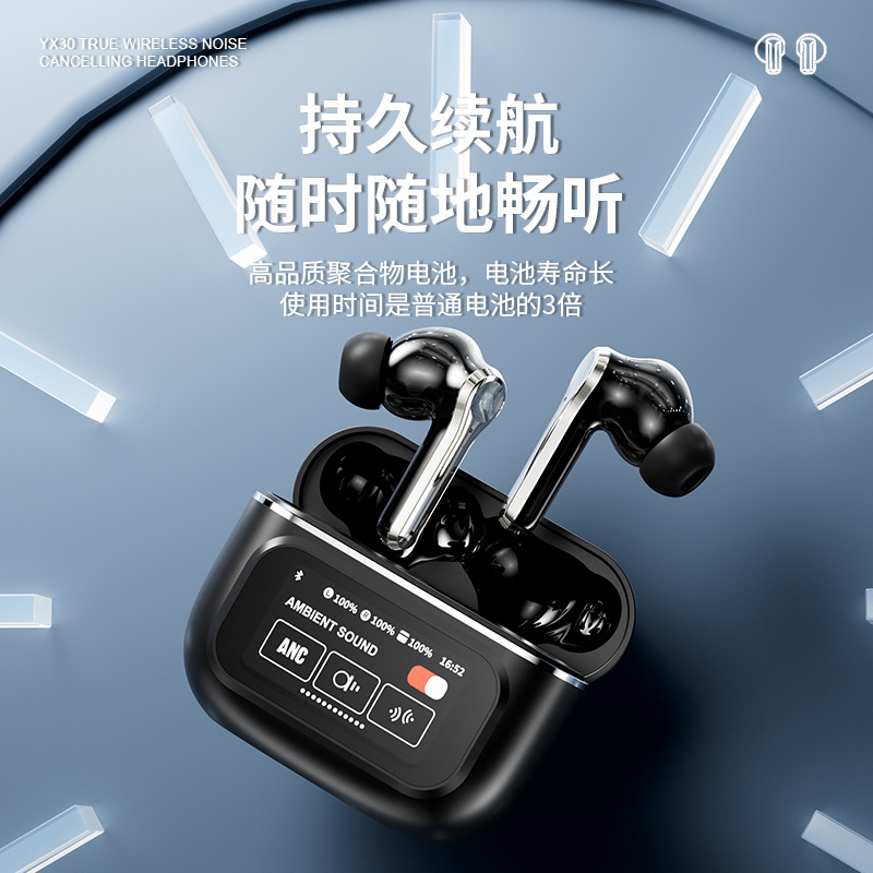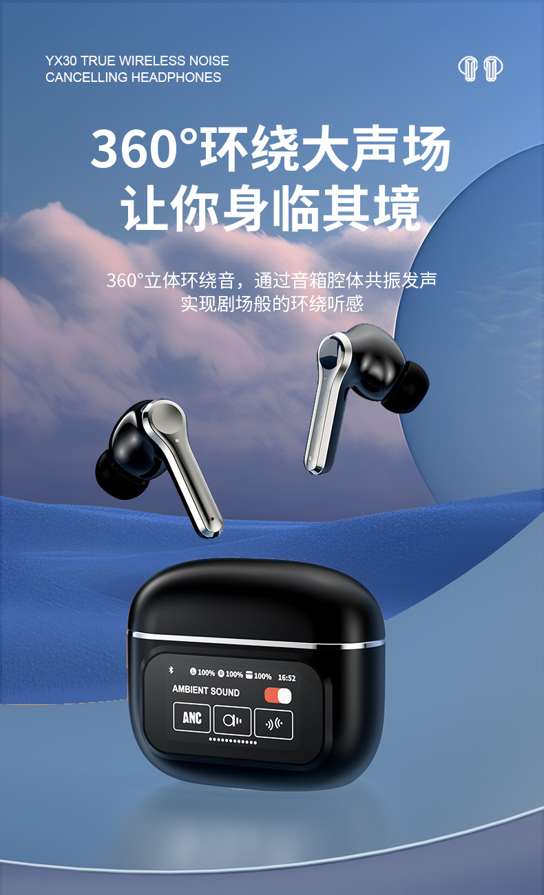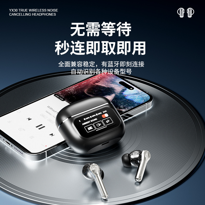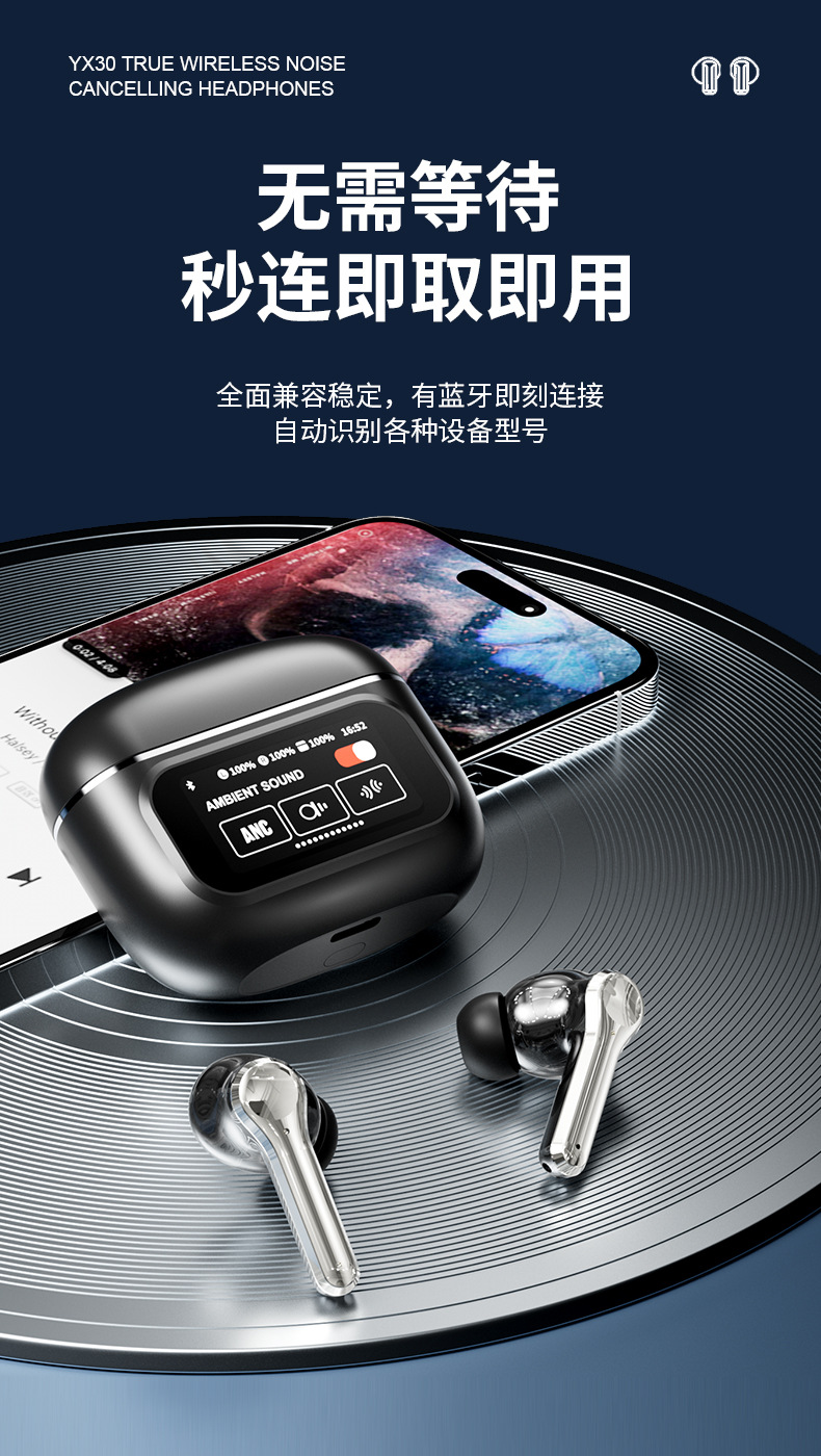 新款YX30彩屏LED触屏蓝牙耳机 anc降噪大电量长续航tws蓝牙耳机