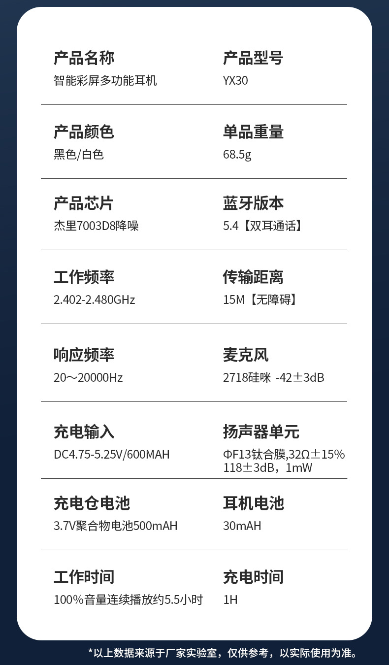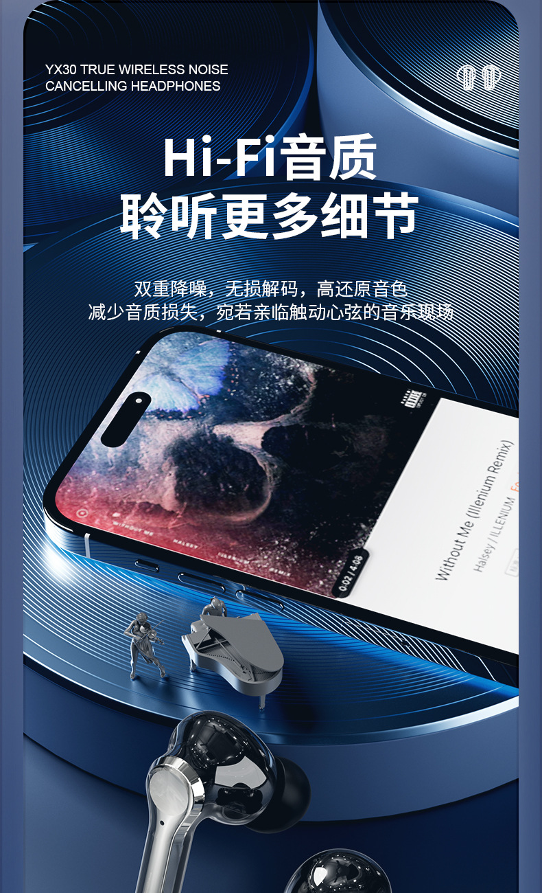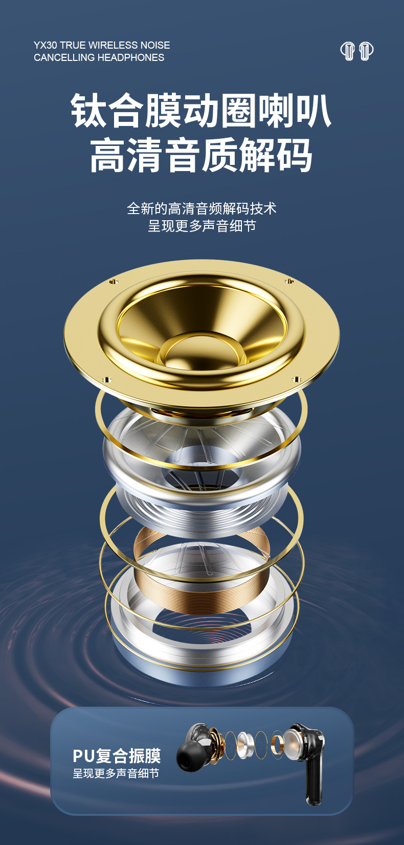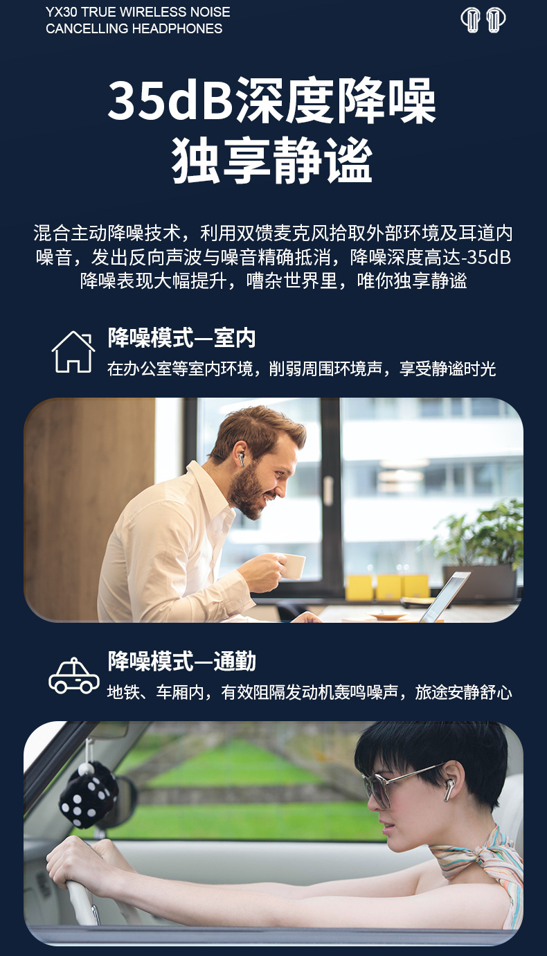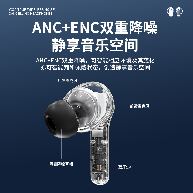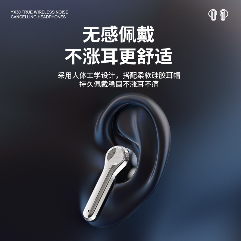 新款YX30彩屏LED触屏蓝牙耳机 anc降噪大电量长续航tws蓝牙耳机