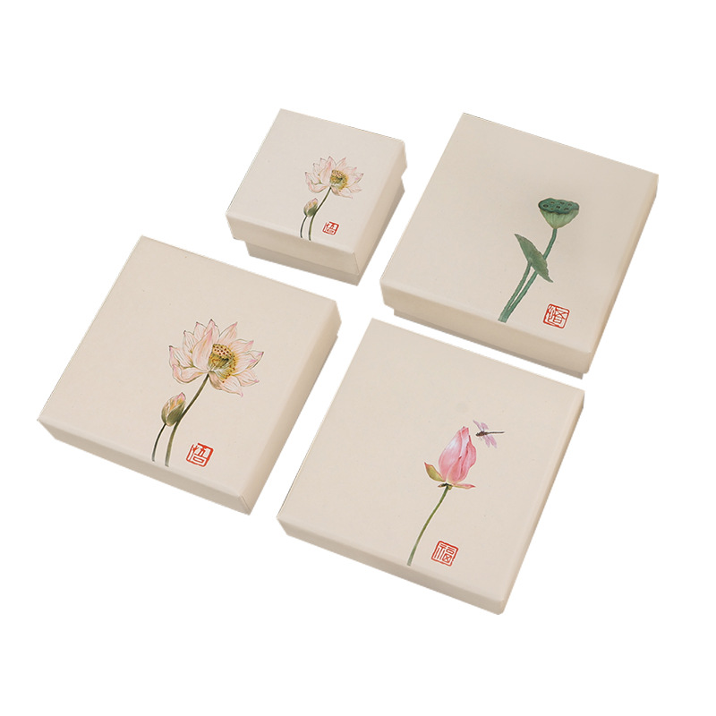 网红复古中国风饰品盒荷花首饰包装盒天地盖发簪盒戒指盒现货批发