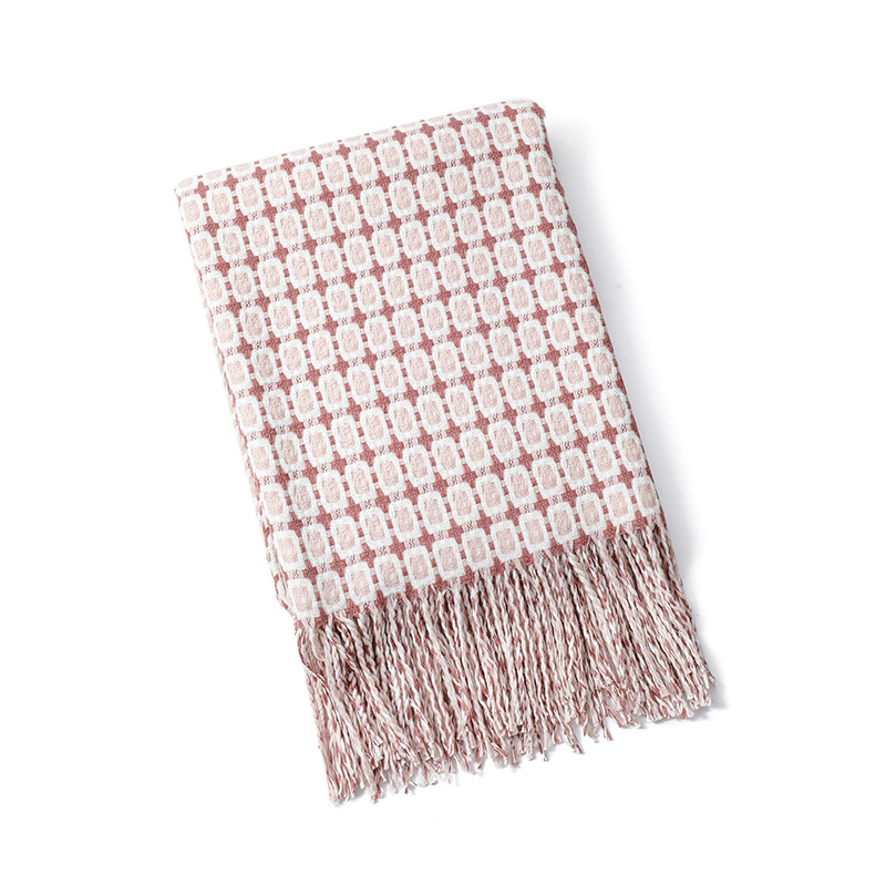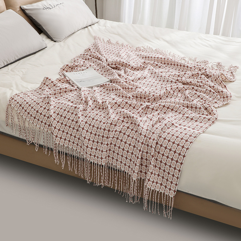 沙发毯针织毯千鸟格流苏毛线毯子小毛毯 夏季梭织毯美式线毯批发