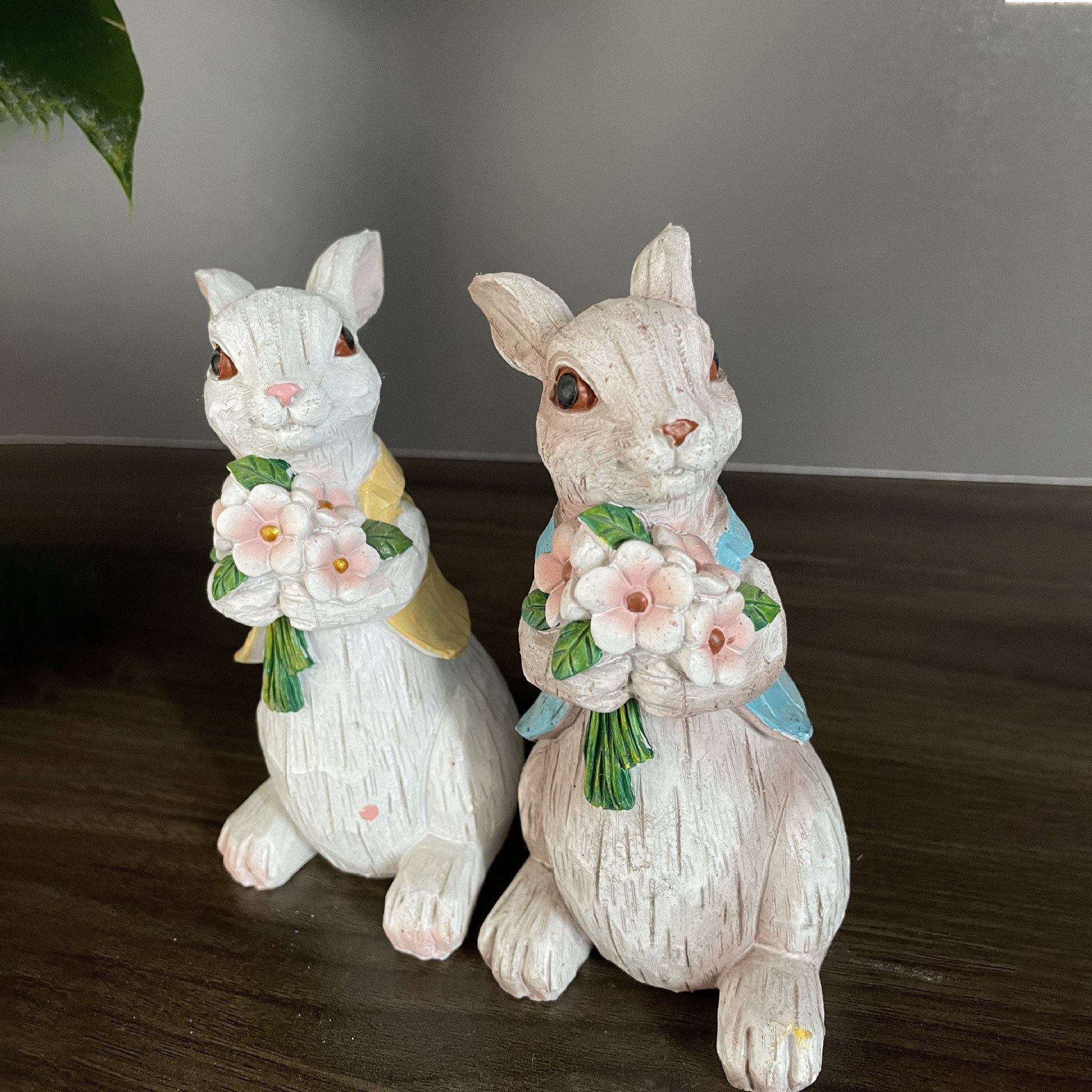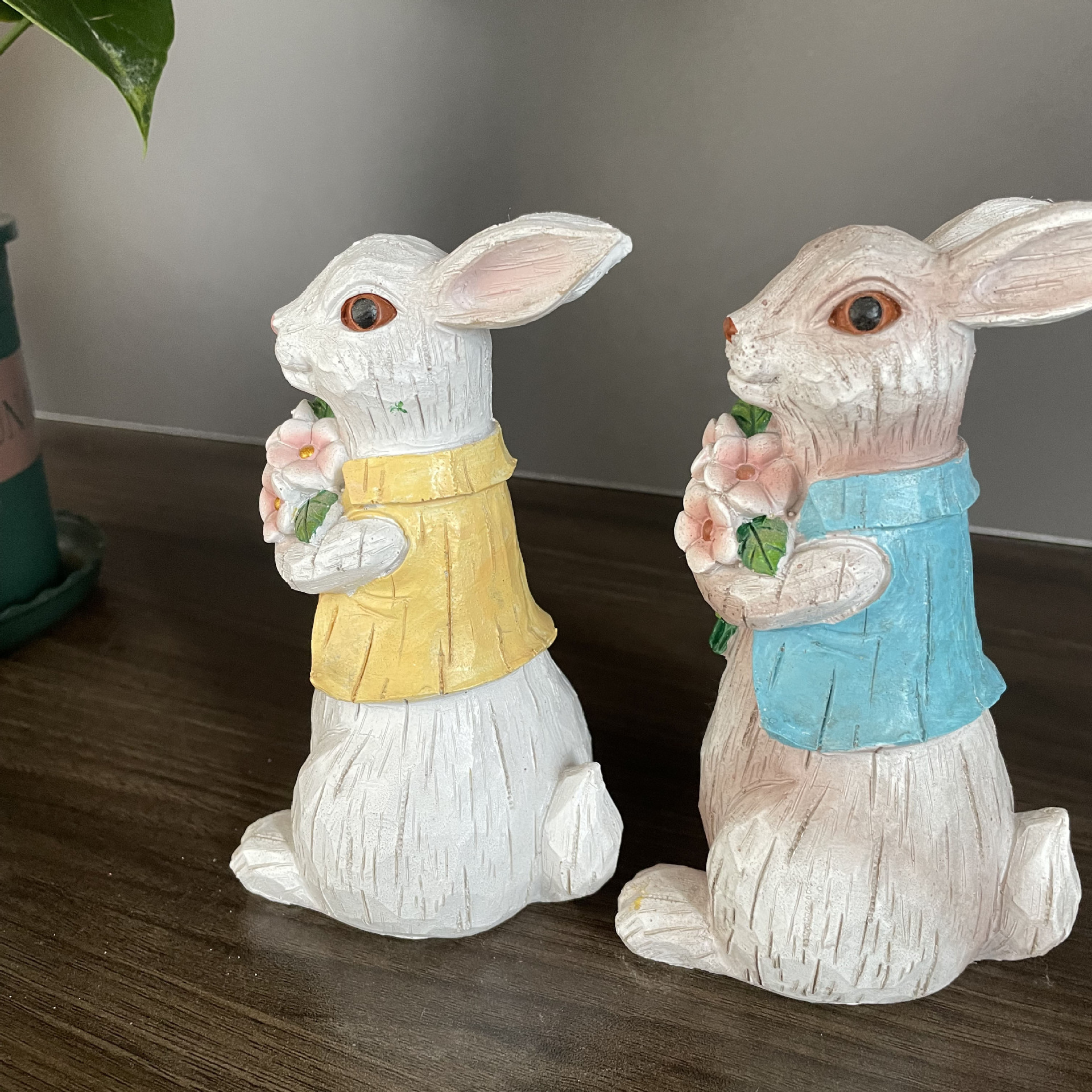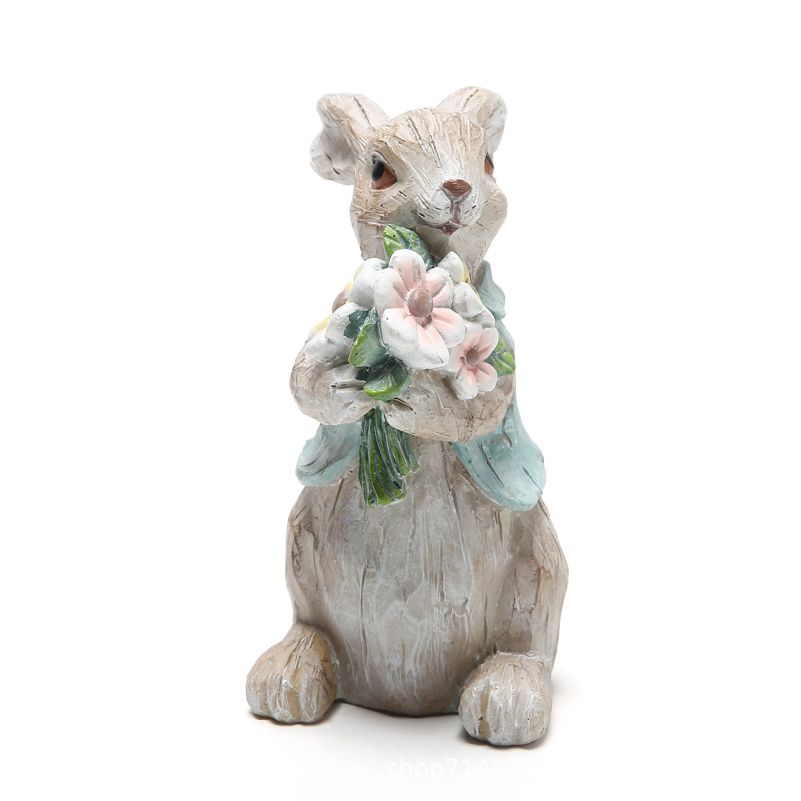 跨境爆款 复活节捧花兔子树脂工艺品 家居书房摆件花园园林装饰品