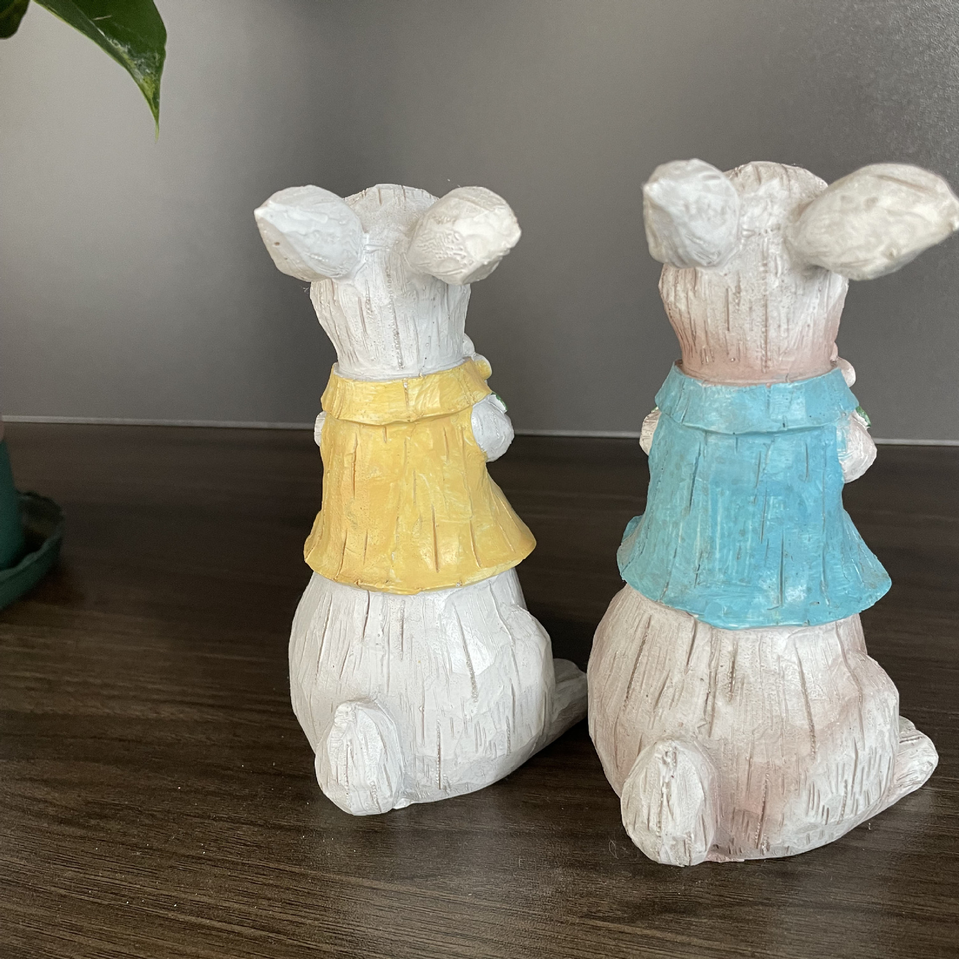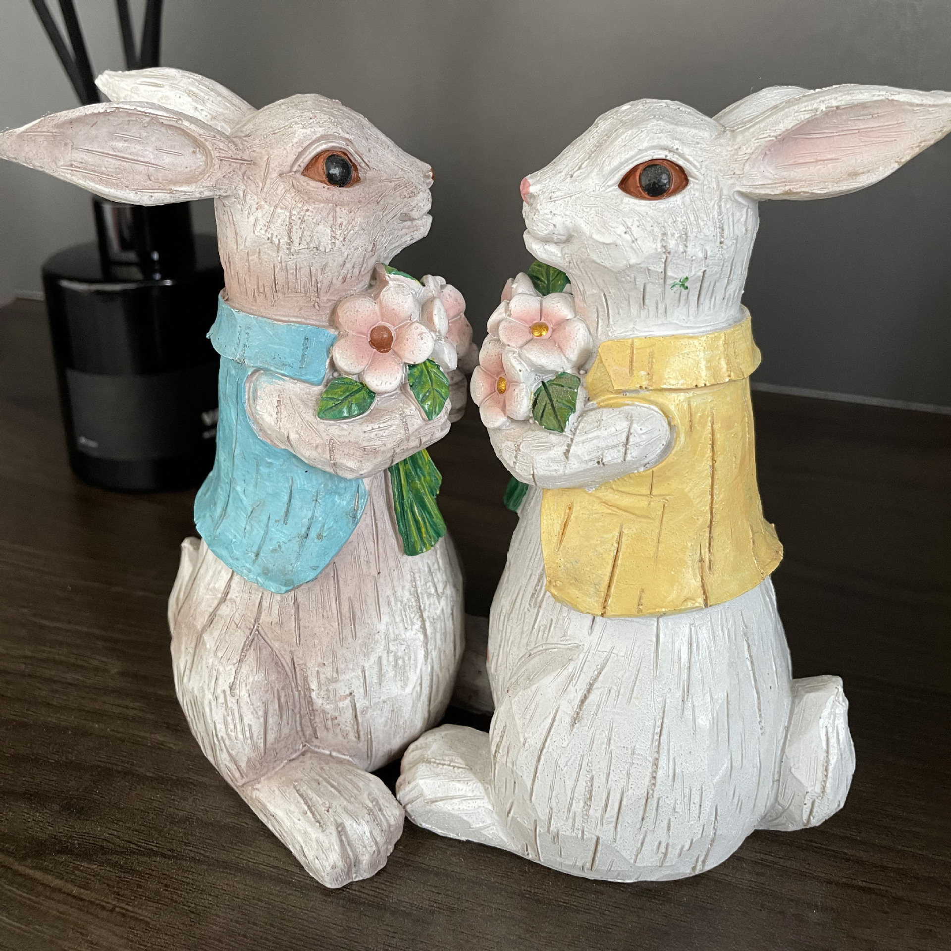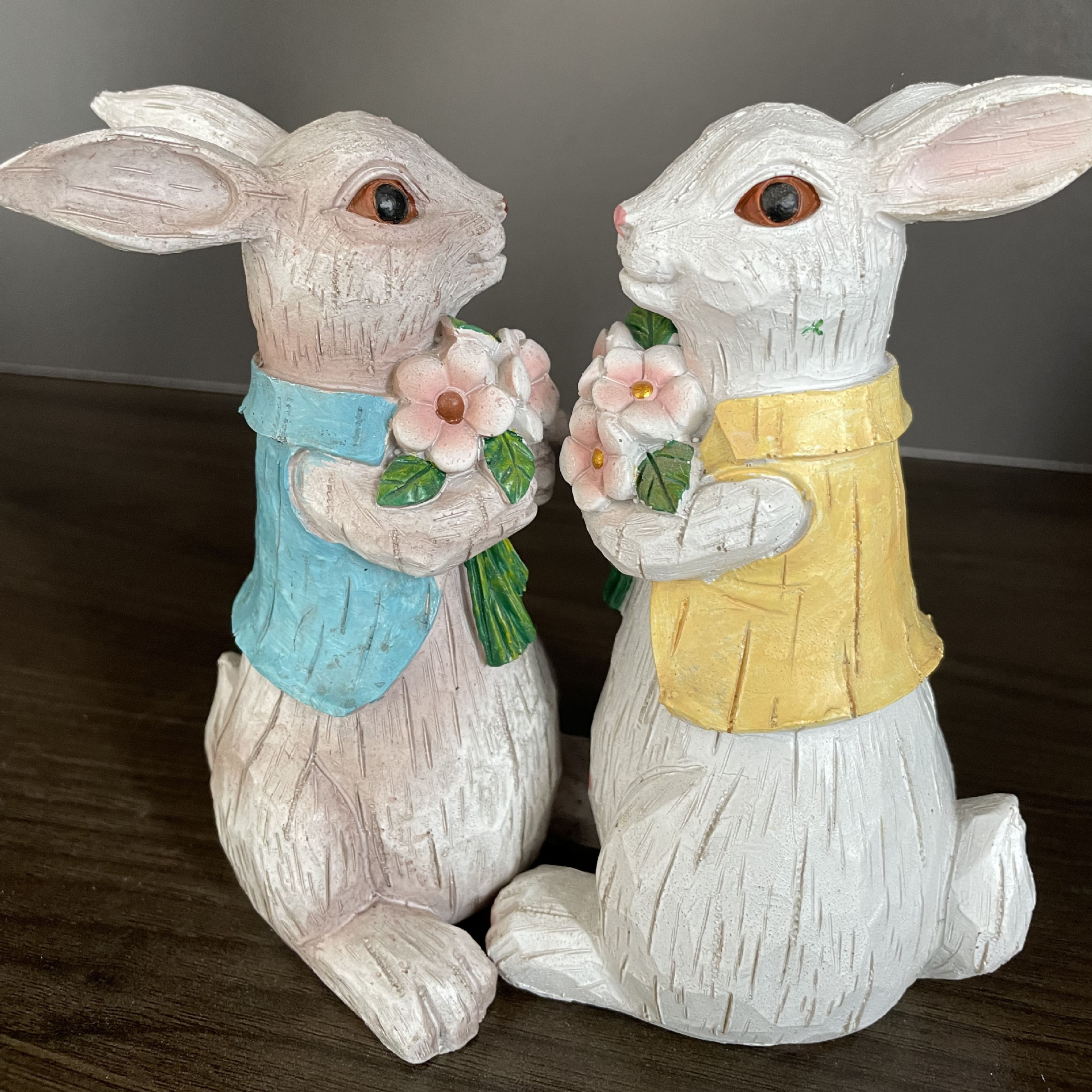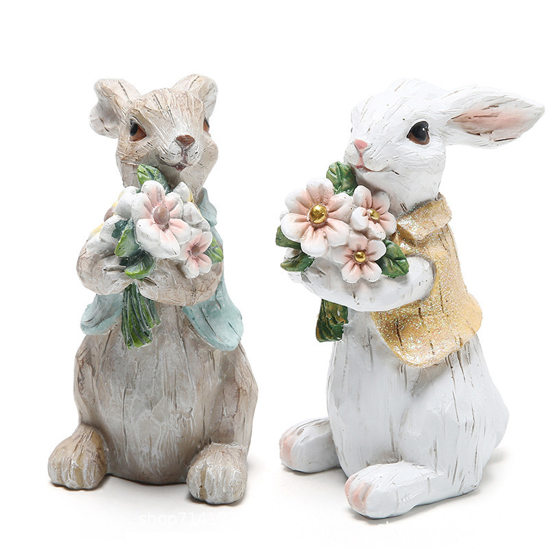 跨境爆款 复活节捧花兔子树脂工艺品 家居书房摆件花园园林装饰品