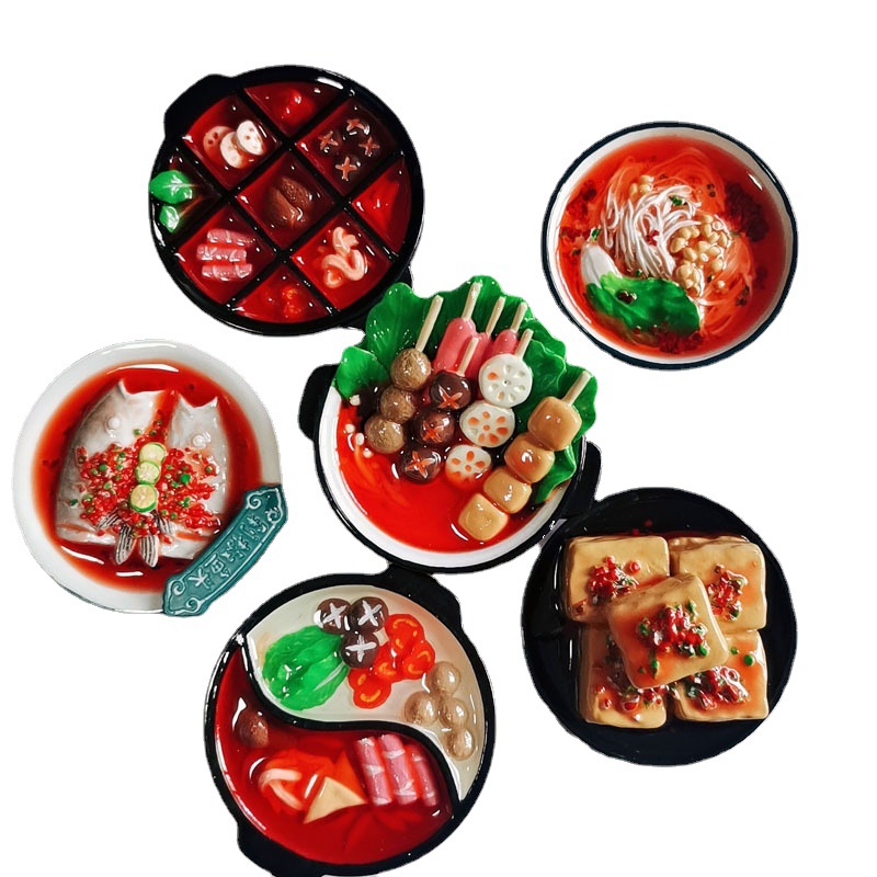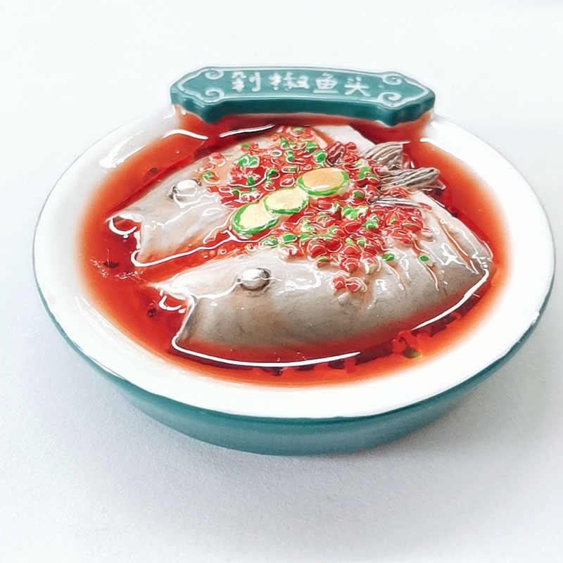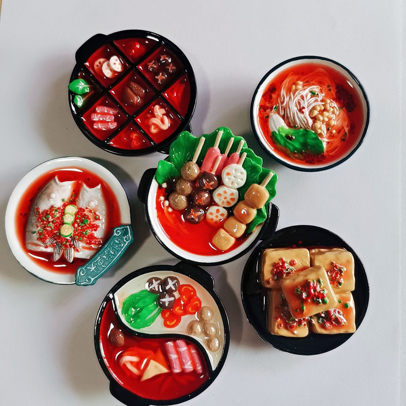仿真食物树脂冰箱贴 抖音爆款火锅麻辣烫剁椒鱼头食玩磁力贴立体