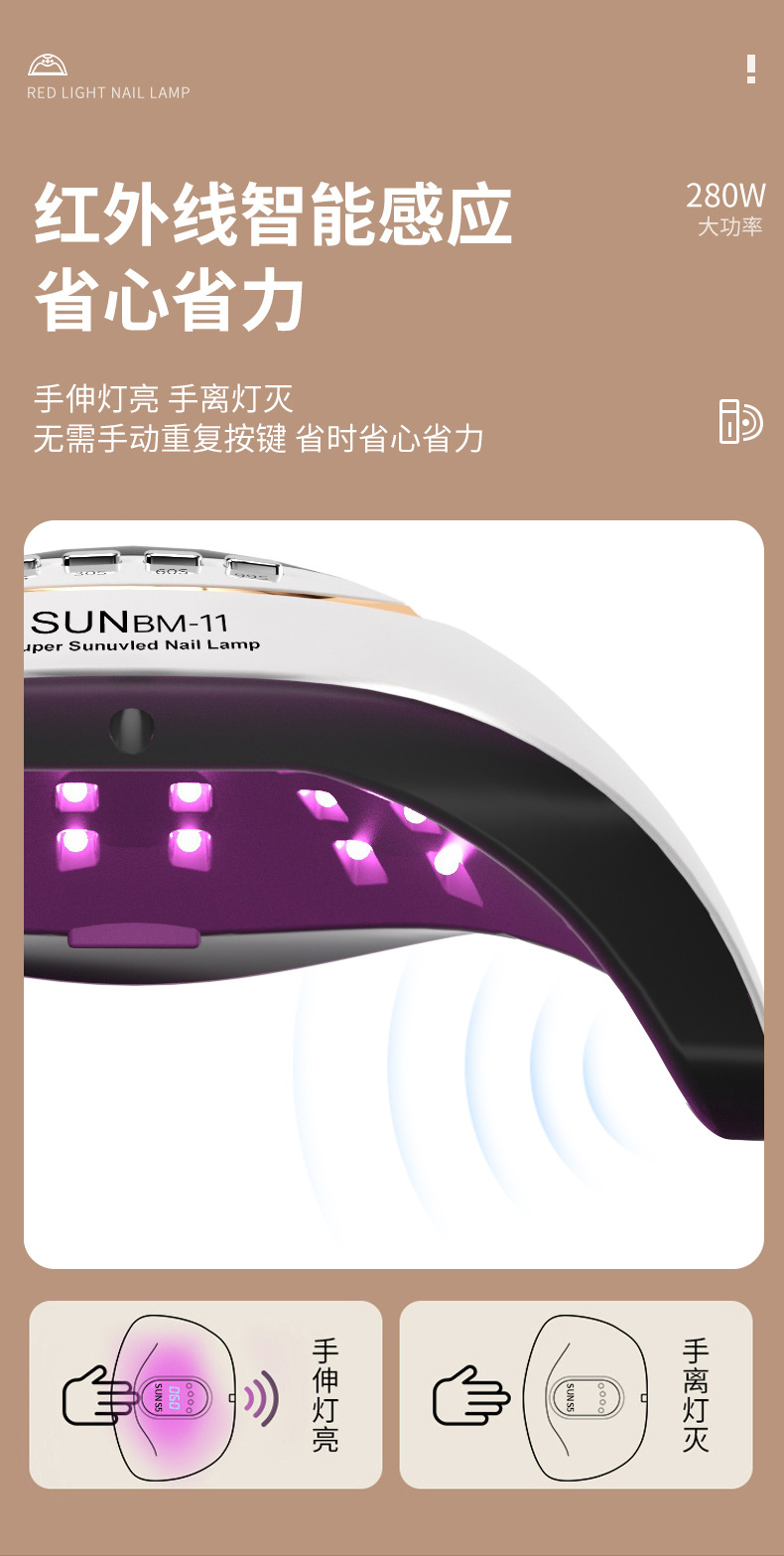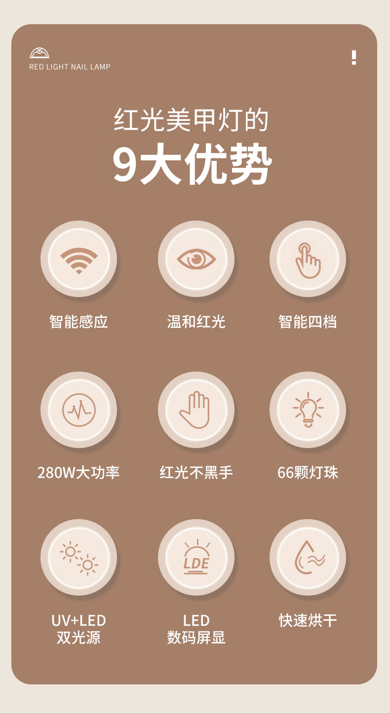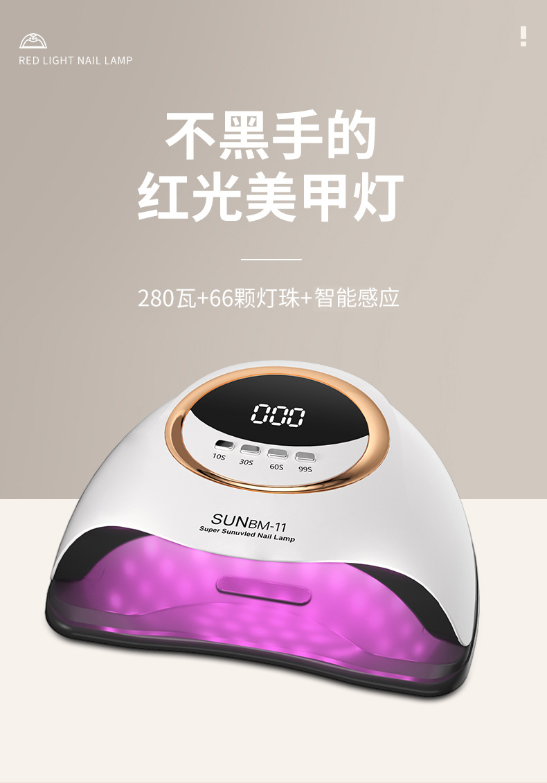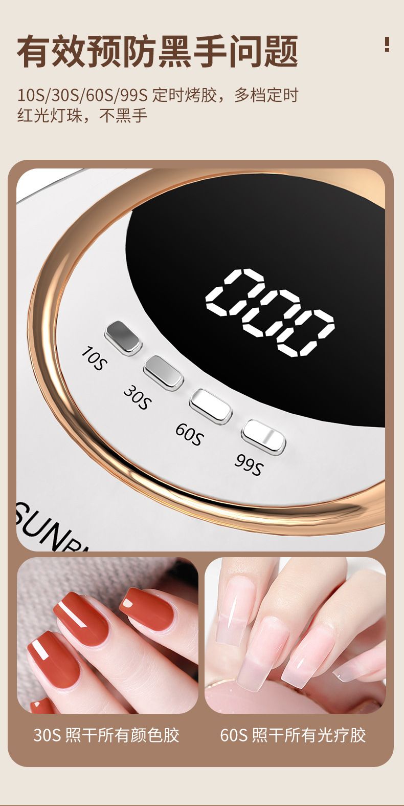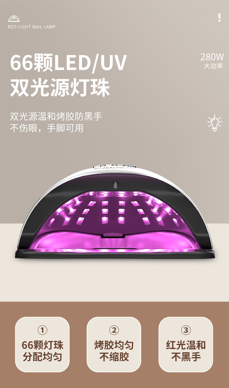 美甲灯光疗灯速干照灯66灯珠大功率指甲油胶UV固化灯红光美甲烤灯