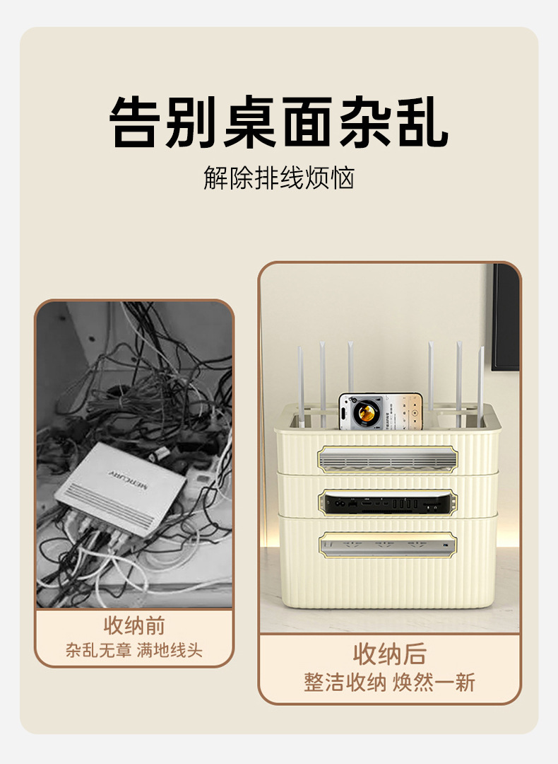 路由器收纳盒放置架无线wifi机顶盒电视柜置物架插座电线整理