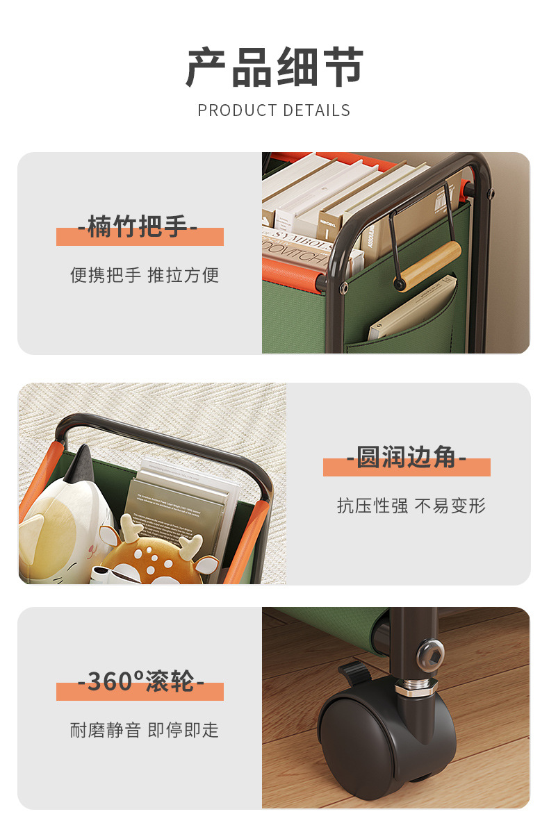 整理零食收纳箱落地架客厅筐储物小推车书包家用玩具置物架子移动