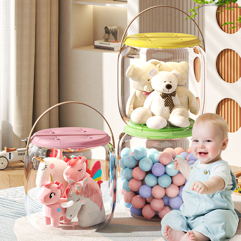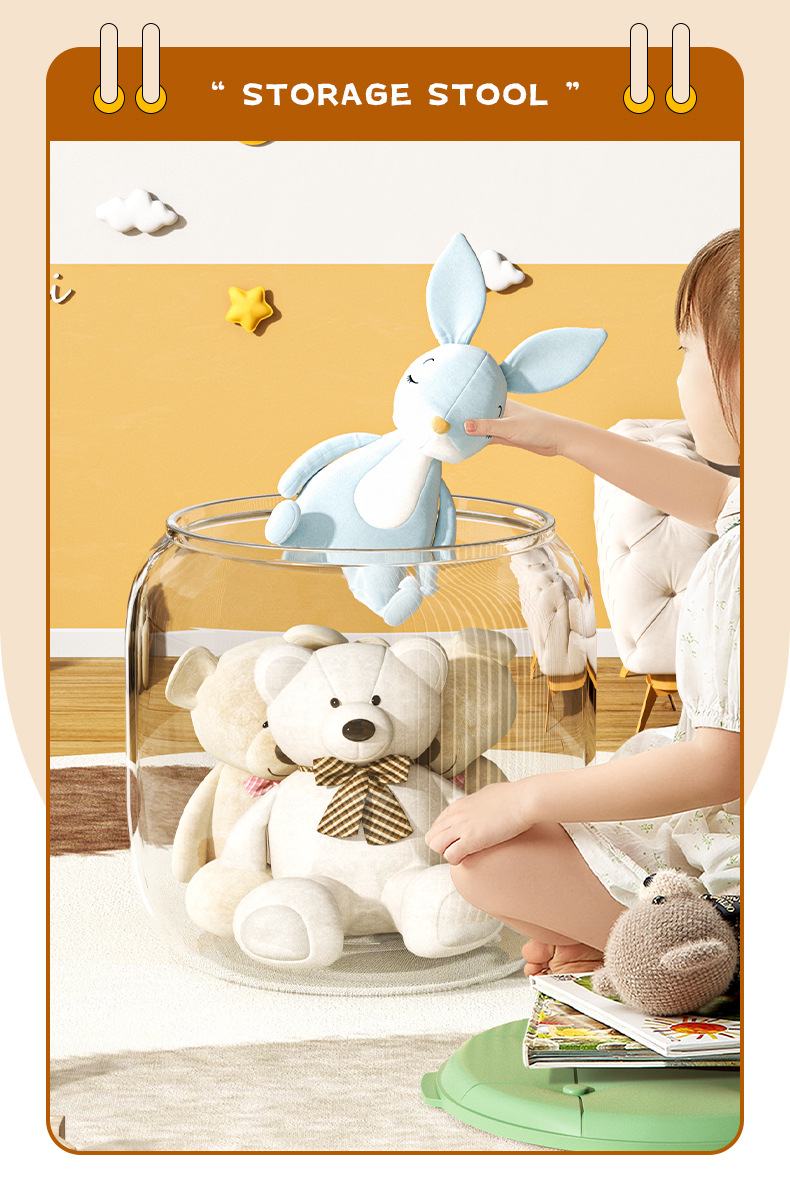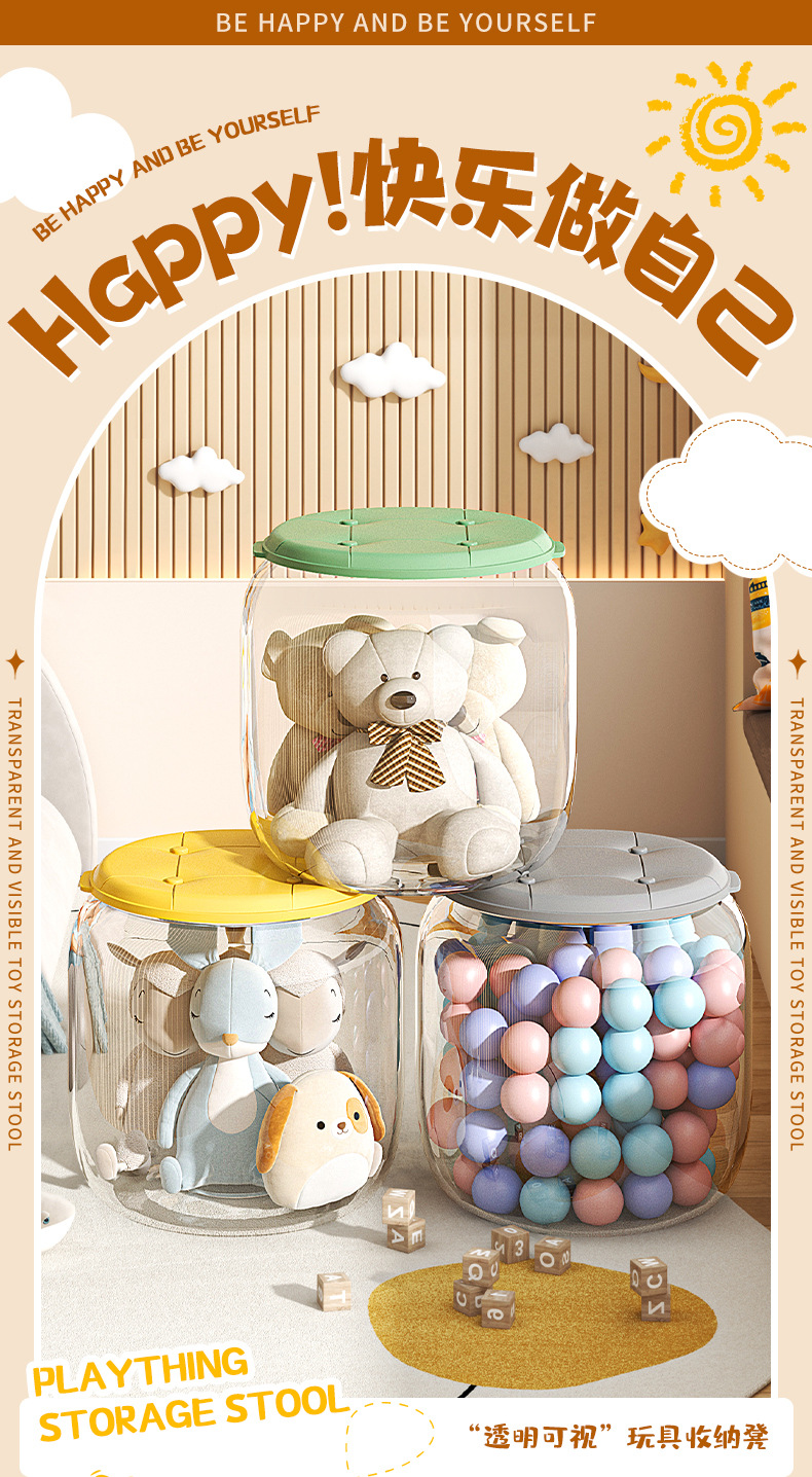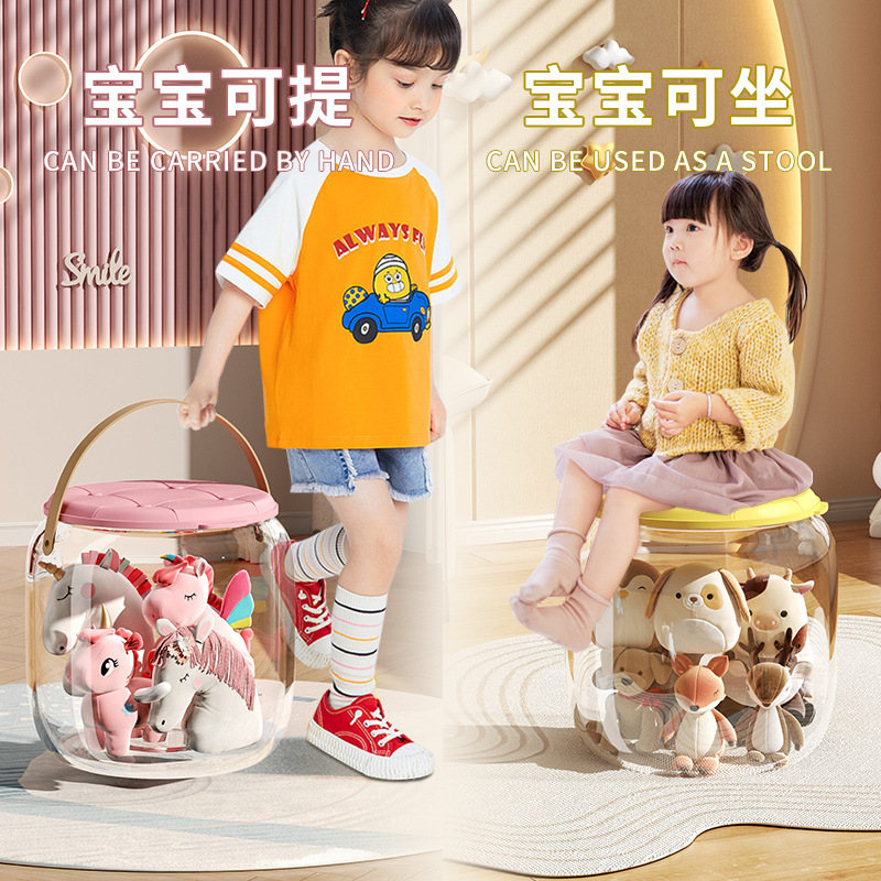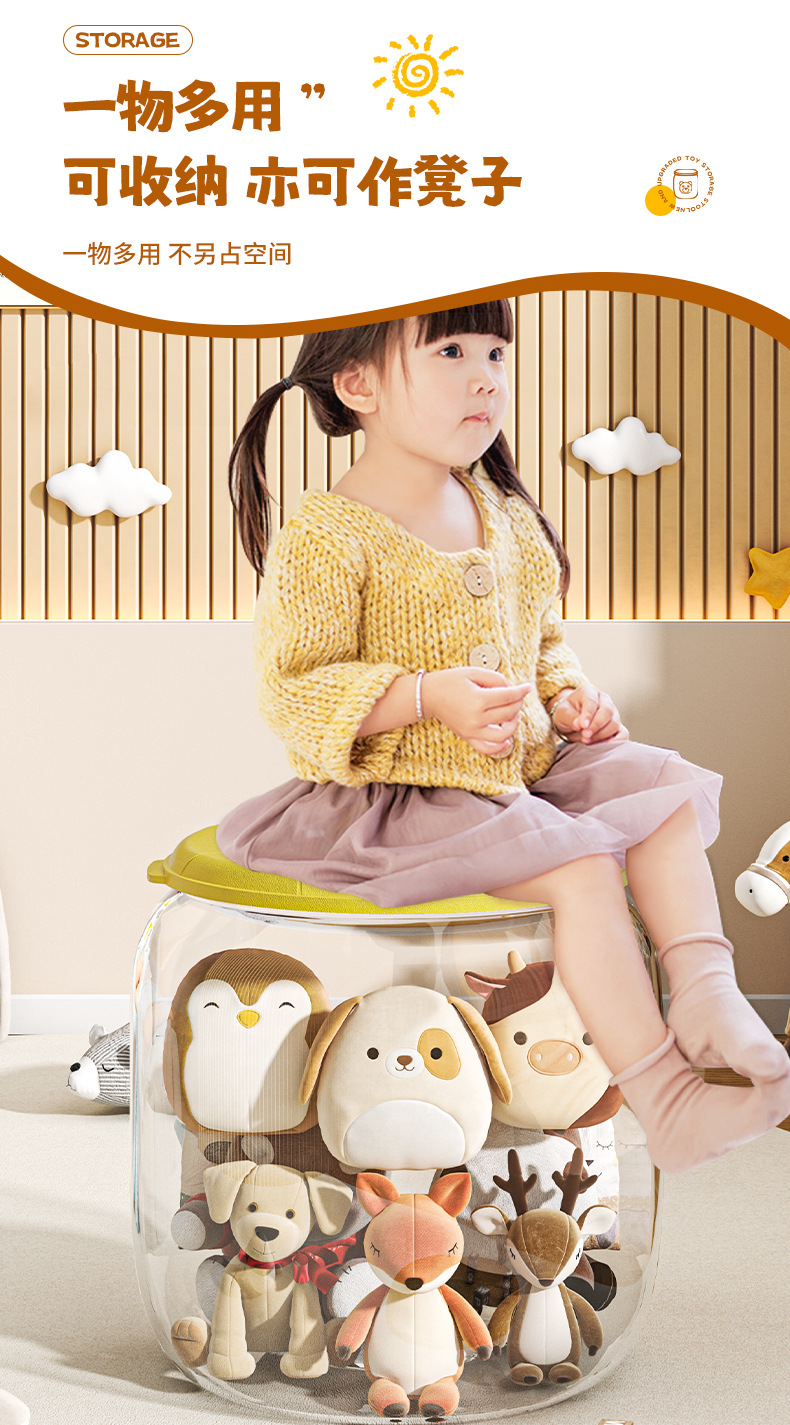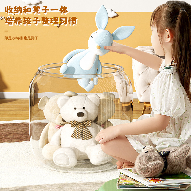升级毛绒娃娃收纳桶玩偶收纳凳公仔儿童透明玩具储物收纳凳子