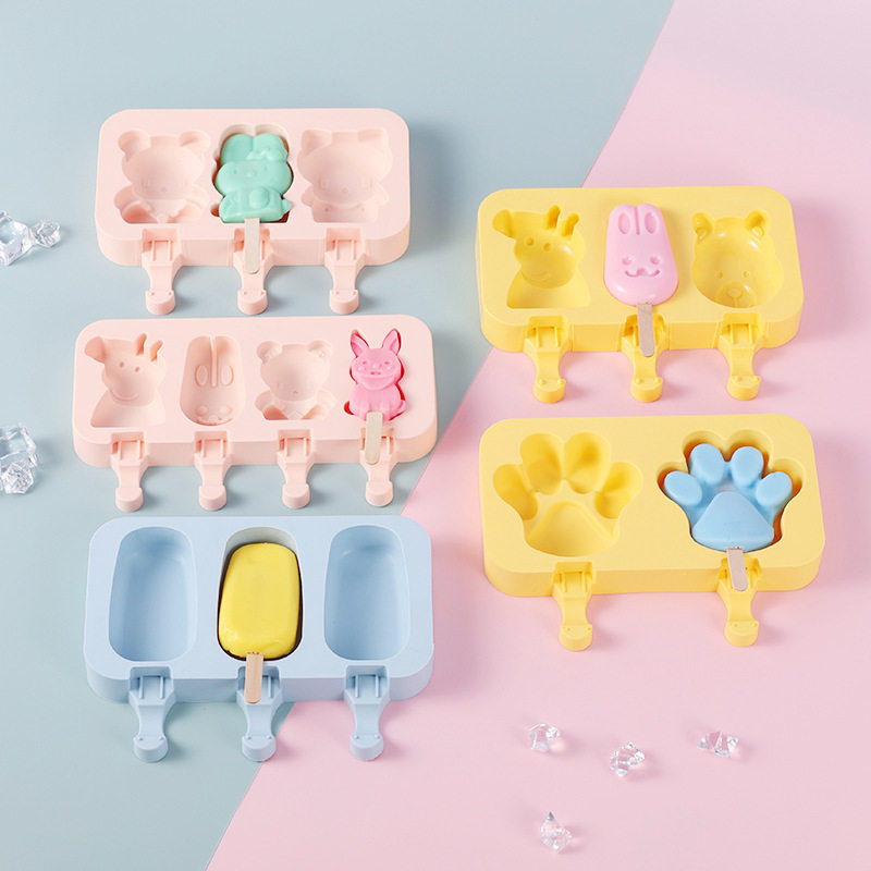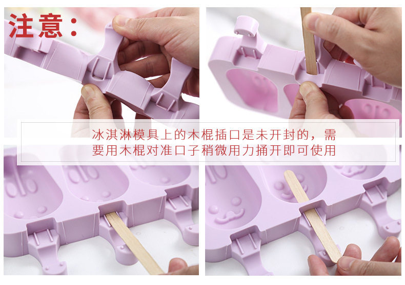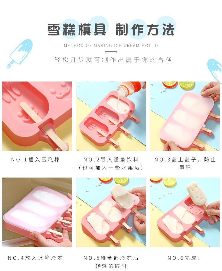 硅胶连体冰激凌模带盖带棍子自制硅胶冰淇淋棒冰模具DIY雪糕模具