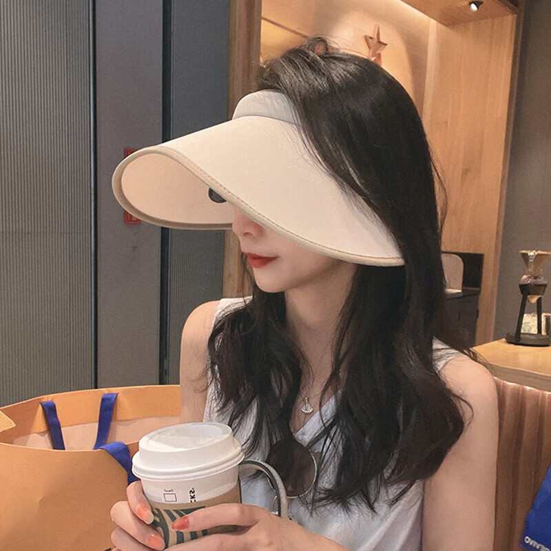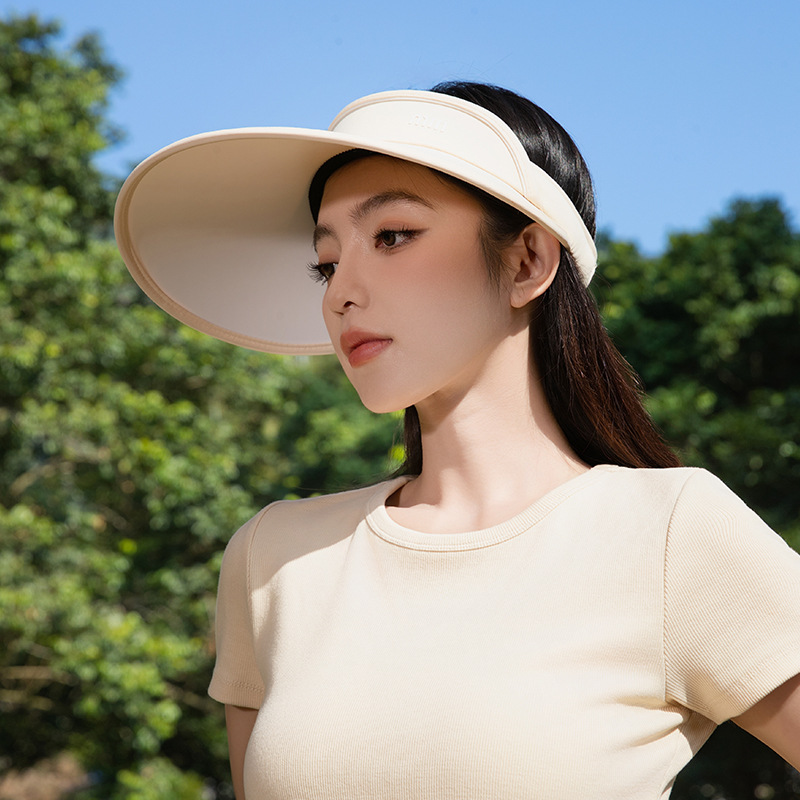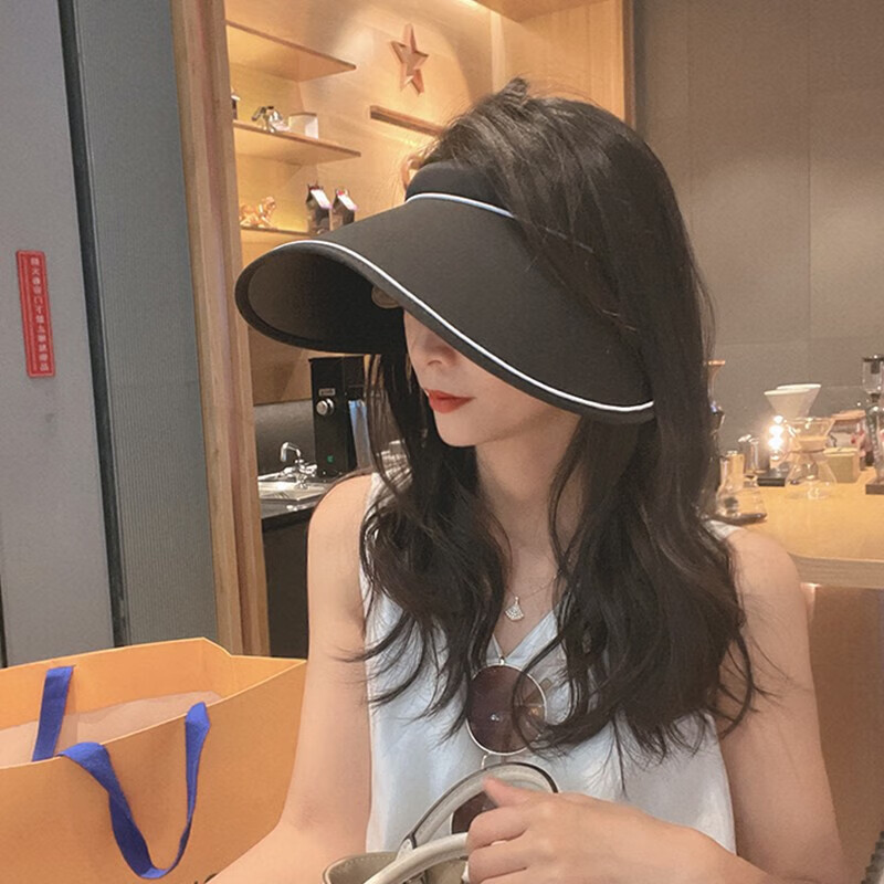 防晒帽女夏季薄款空顶无痕一体式遮阳可折叠遮脸大帽檐鸭舌太阳帽