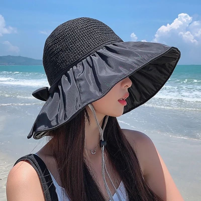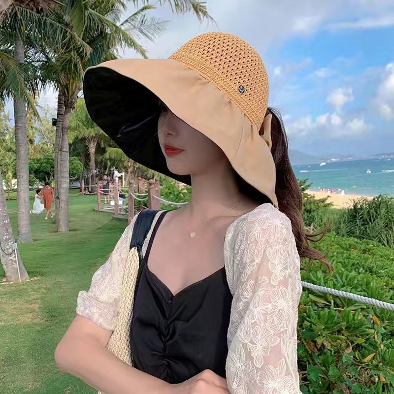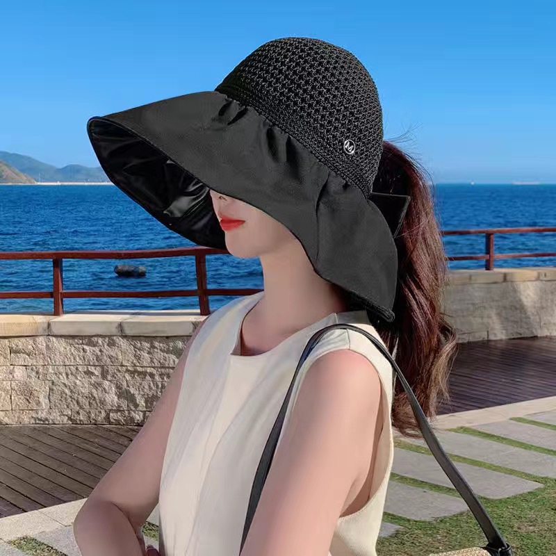 帽子女夏季遮阳防晒紫外线渔夫帽遮脸黑胶太阳帽大帽檐新款