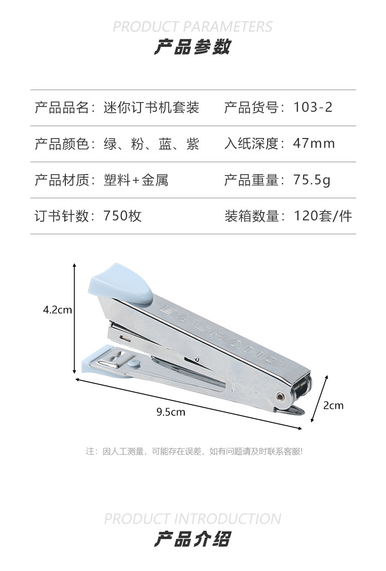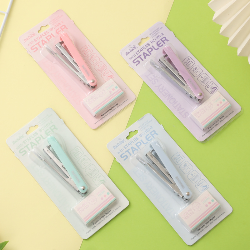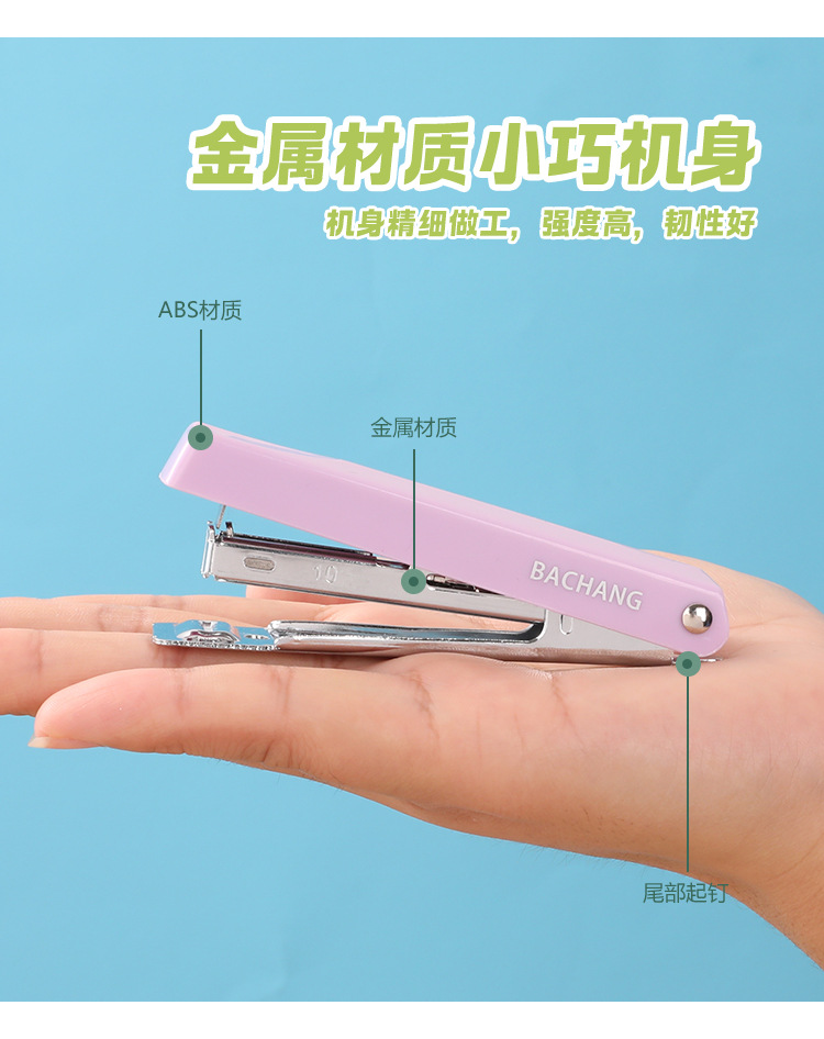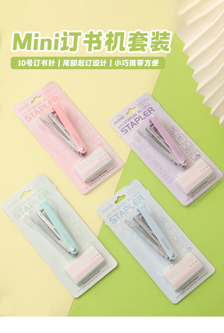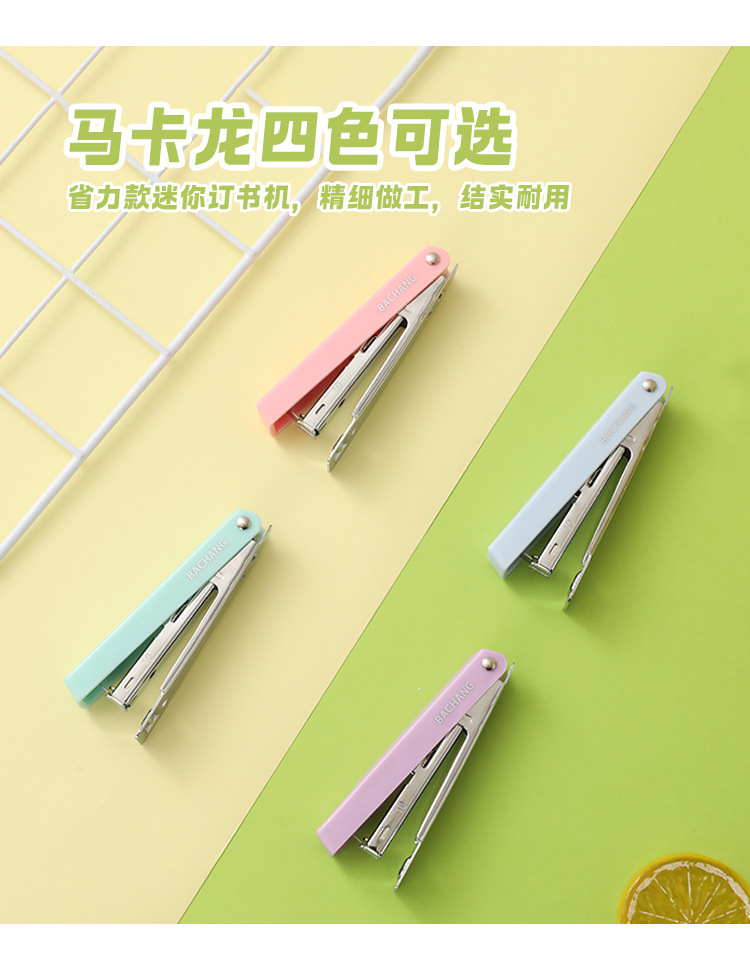 马卡龙色订书机迷你小号学生用订书机办公用装订机省力订书器