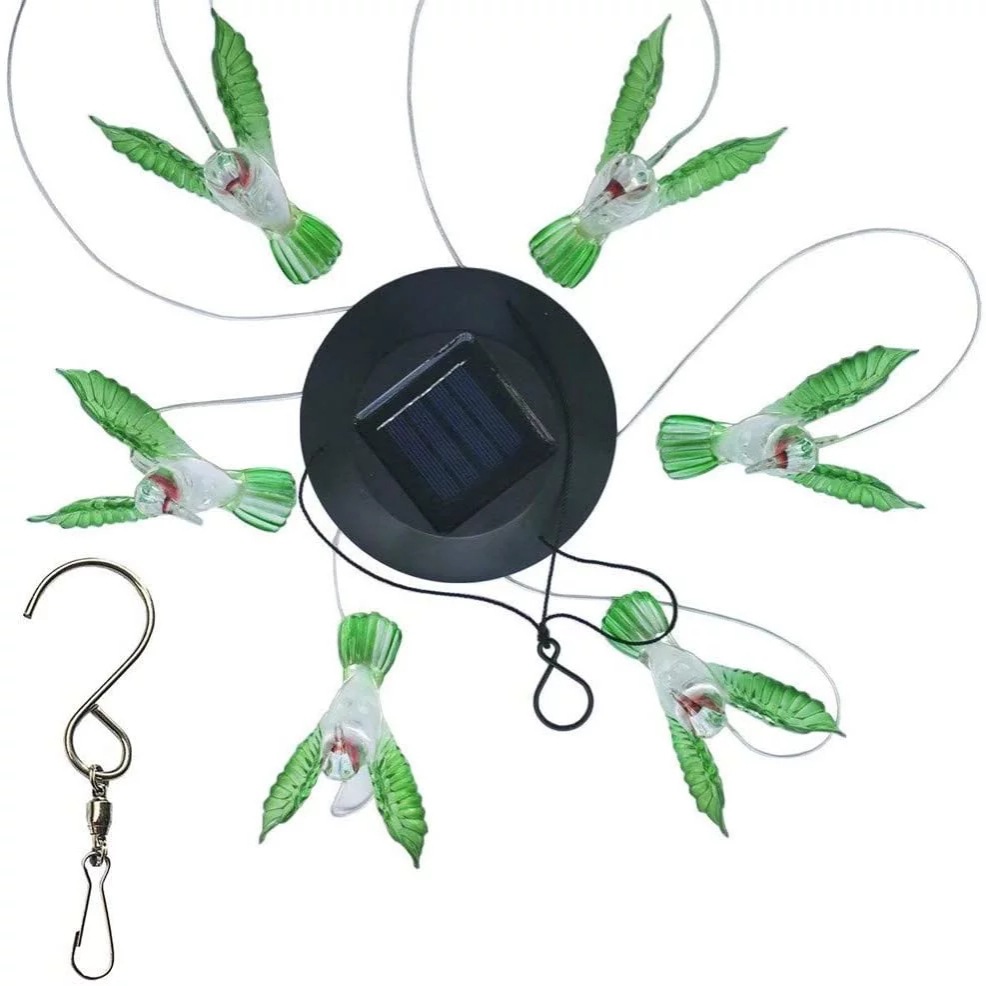 厂家 太阳能风铃灯户外防水LED七彩变色蜂鸟蝴蝶悬挂太阳能庭院灯