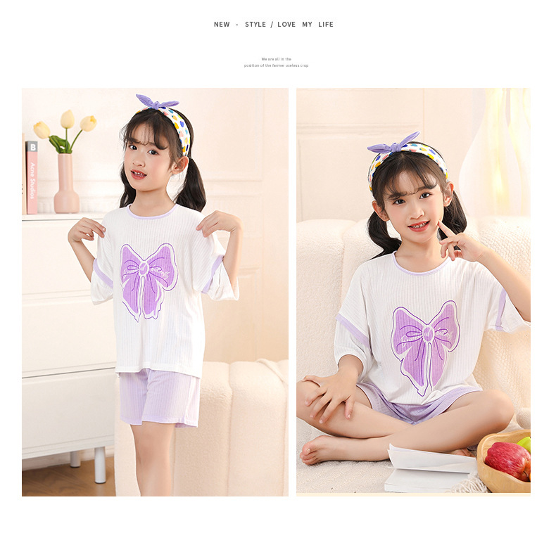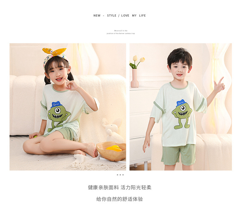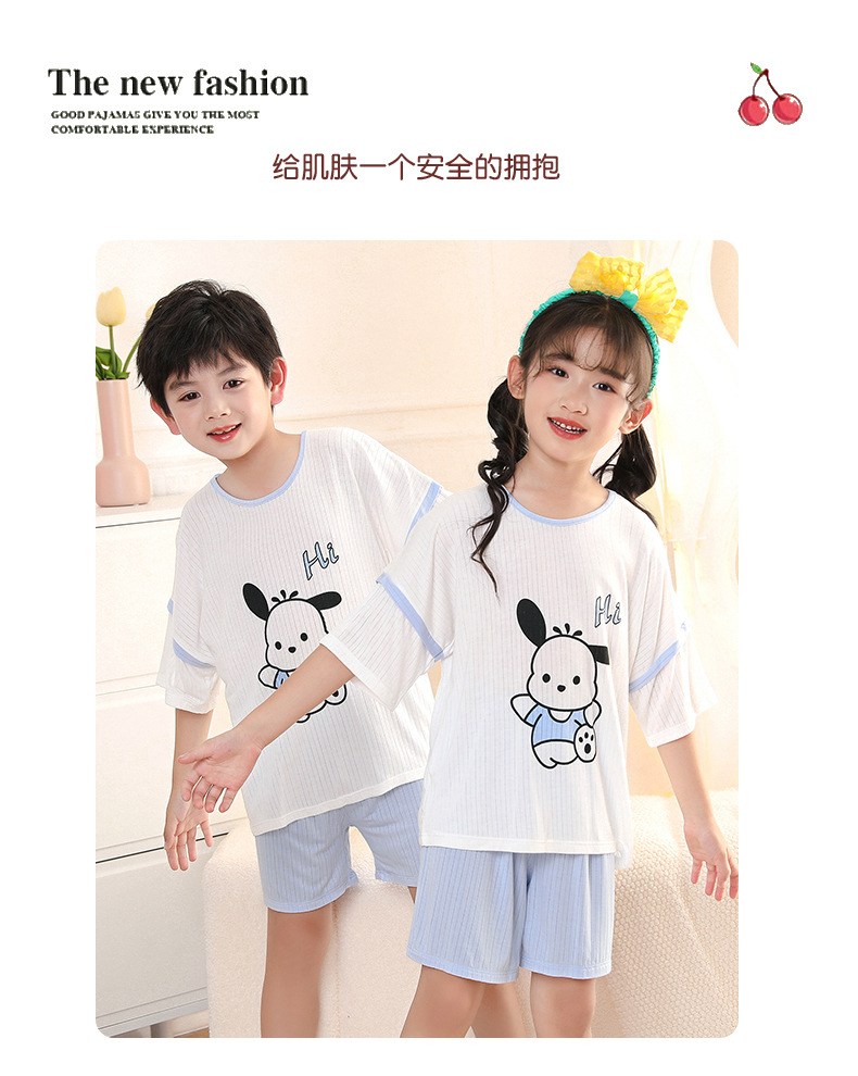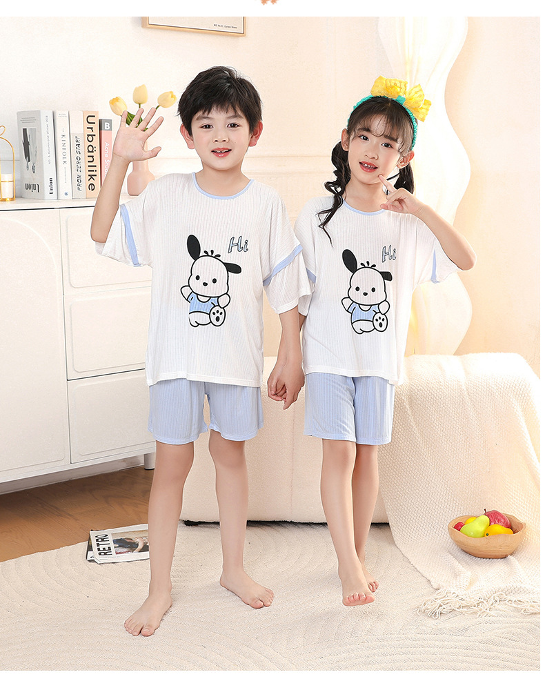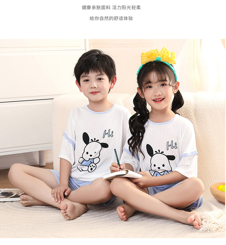 儿童短袖套装宝宝睡衣男女童家居服两件套中小童夏季薄款空调服新