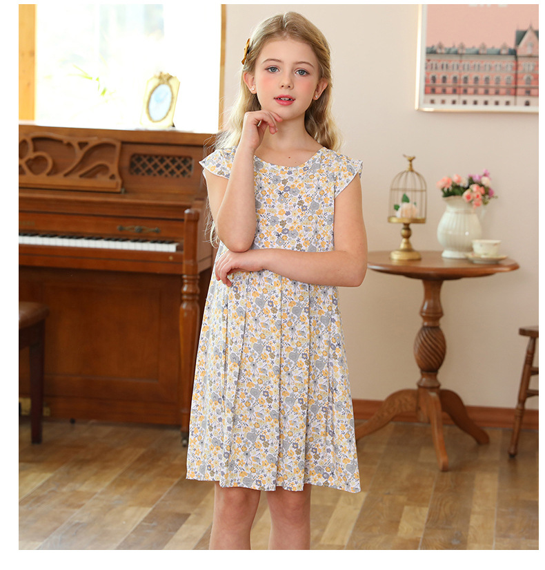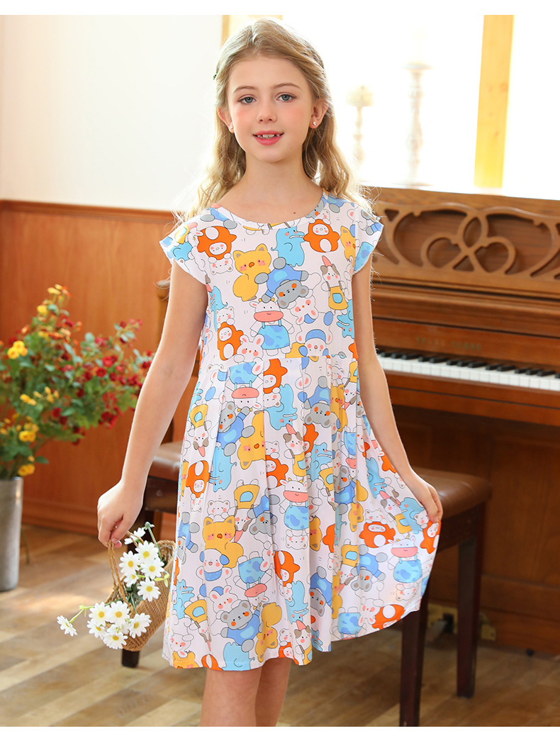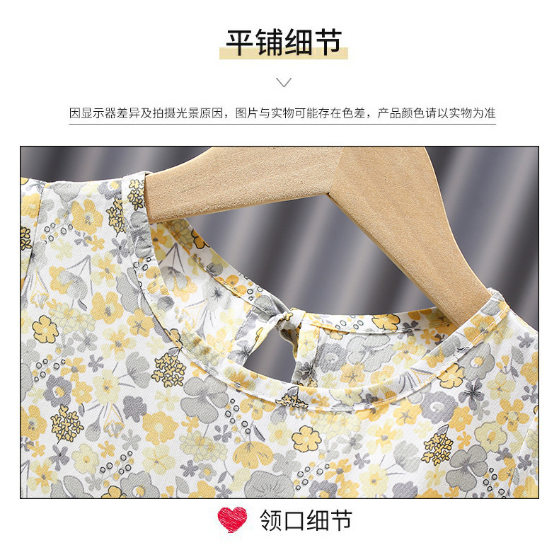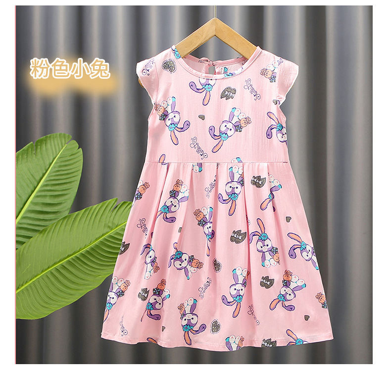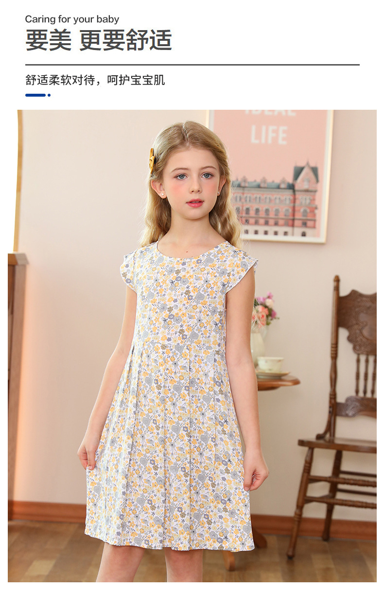 女童夏季薄款绵绸连衣裙小女孩花边飞袖公主裙人造棉宝宝短袖睡裙
