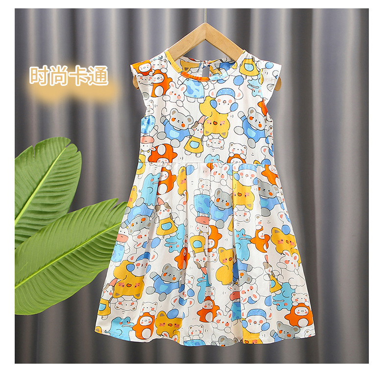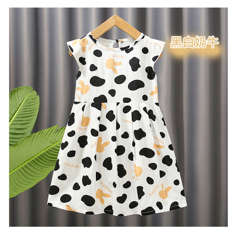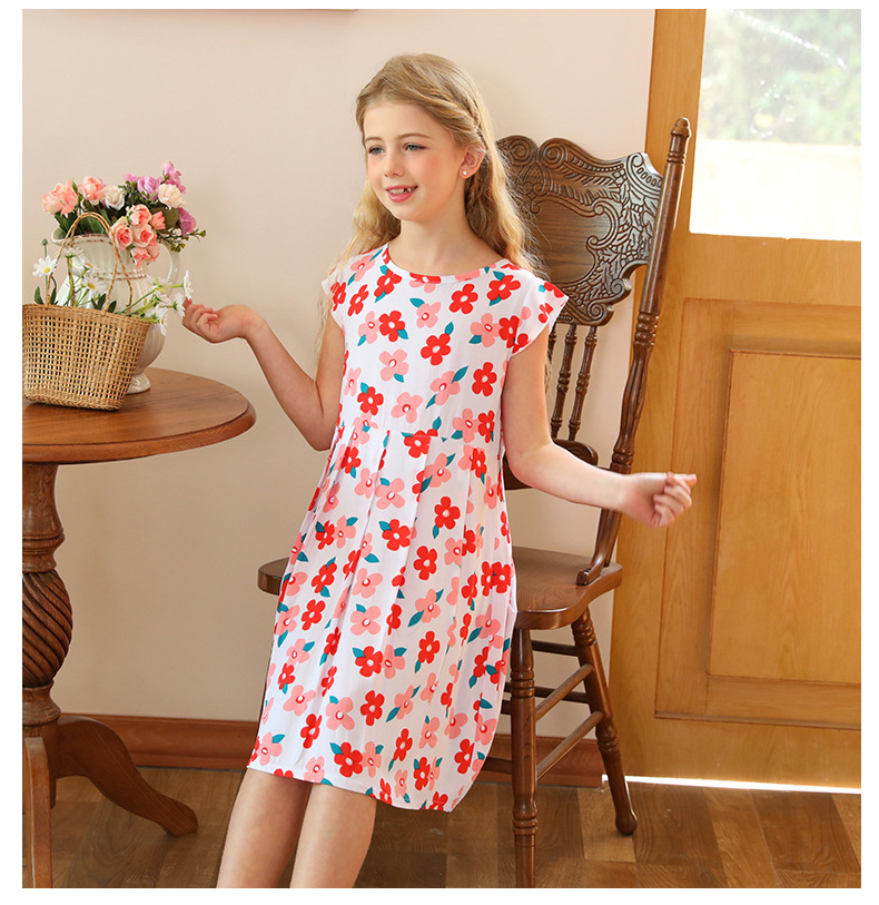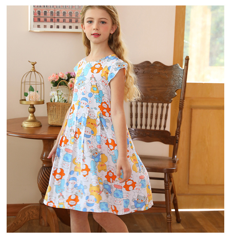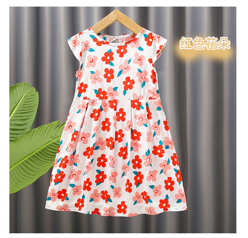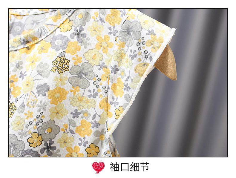 女童夏季薄款绵绸连衣裙小女孩花边飞袖公主裙人造棉宝宝短袖睡裙