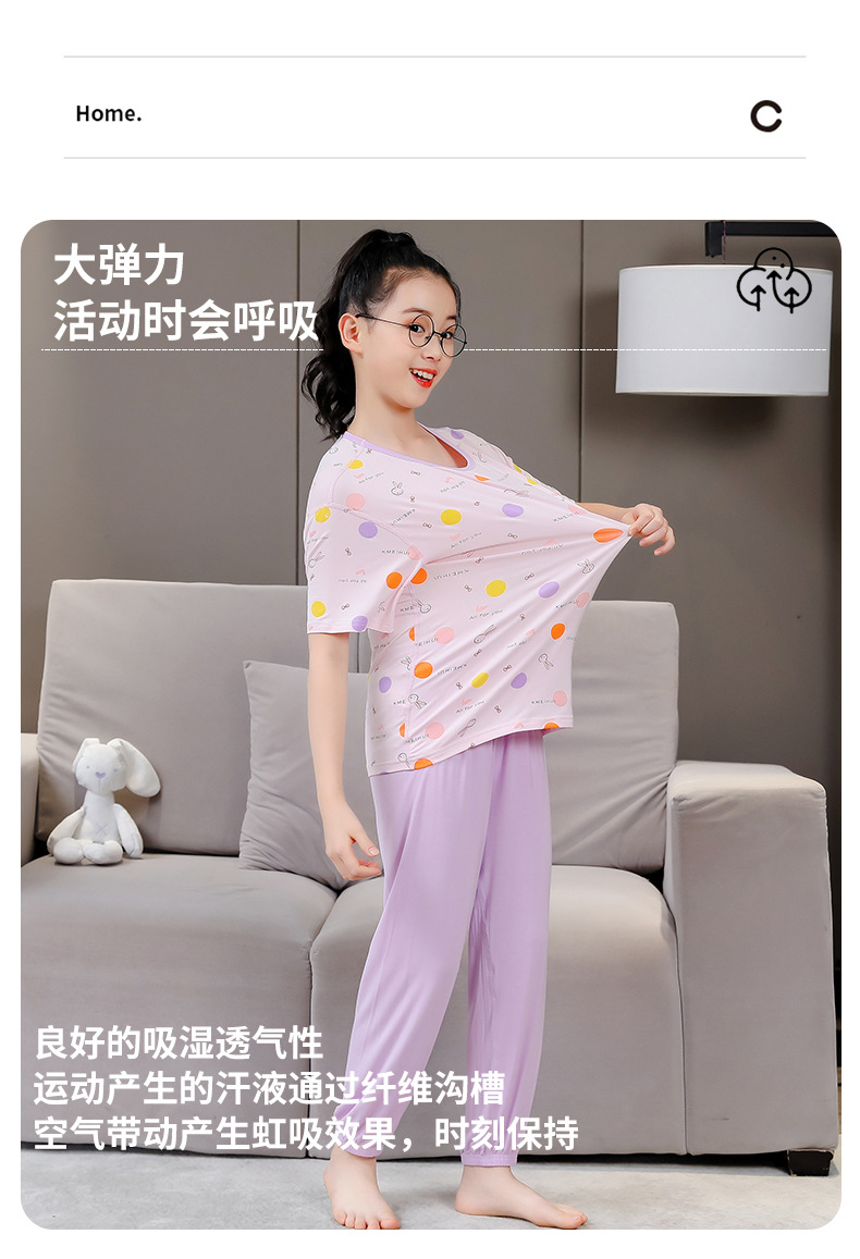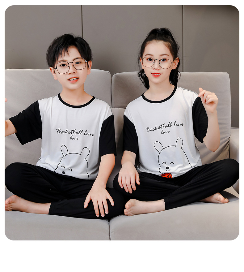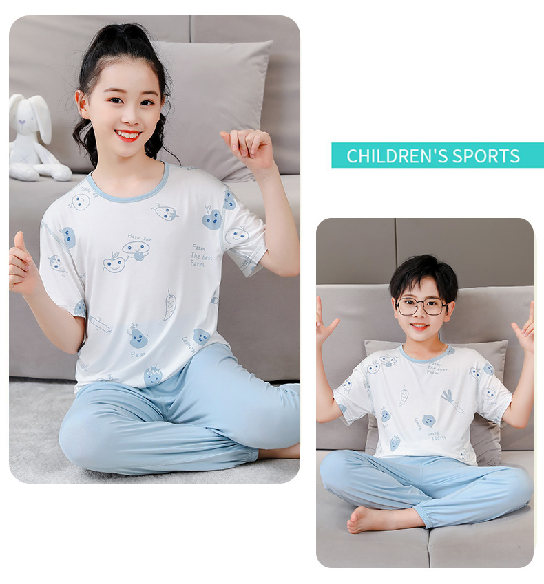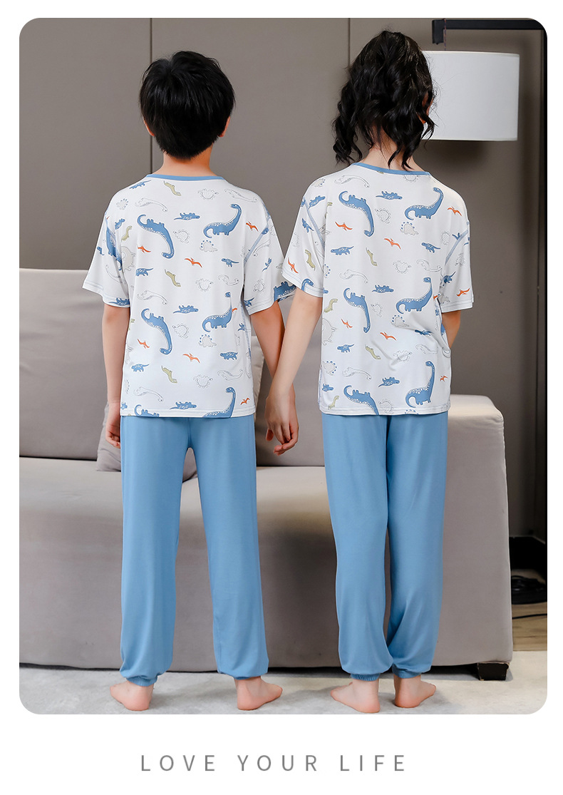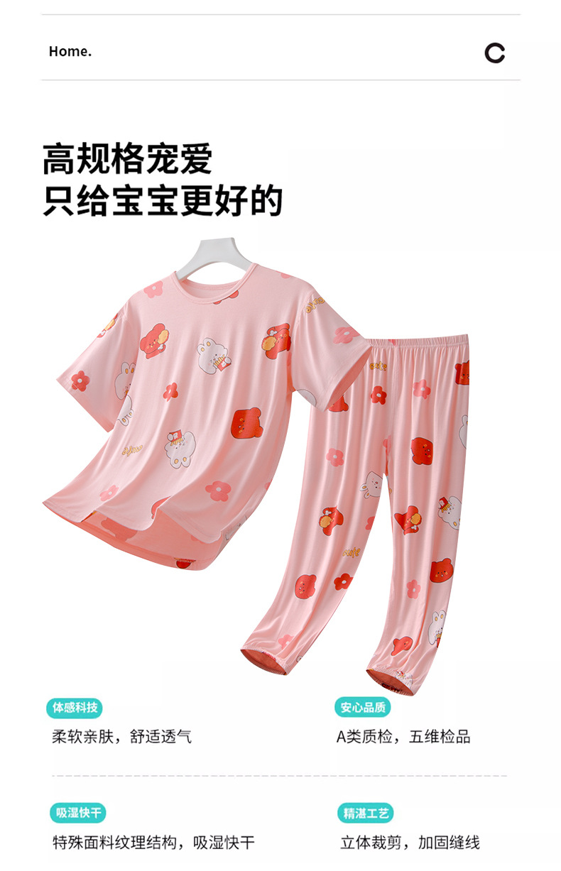 夏季薄款儿童家居服套装男童女童短袖空调服宝宝睡衣睡裤亲子套装