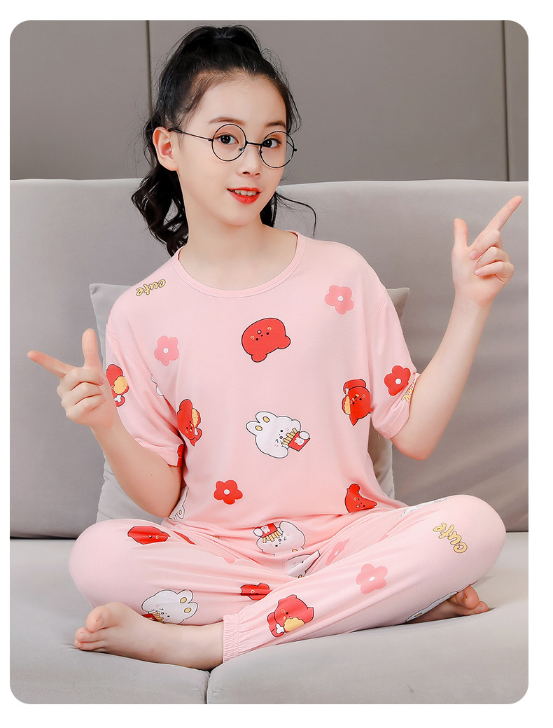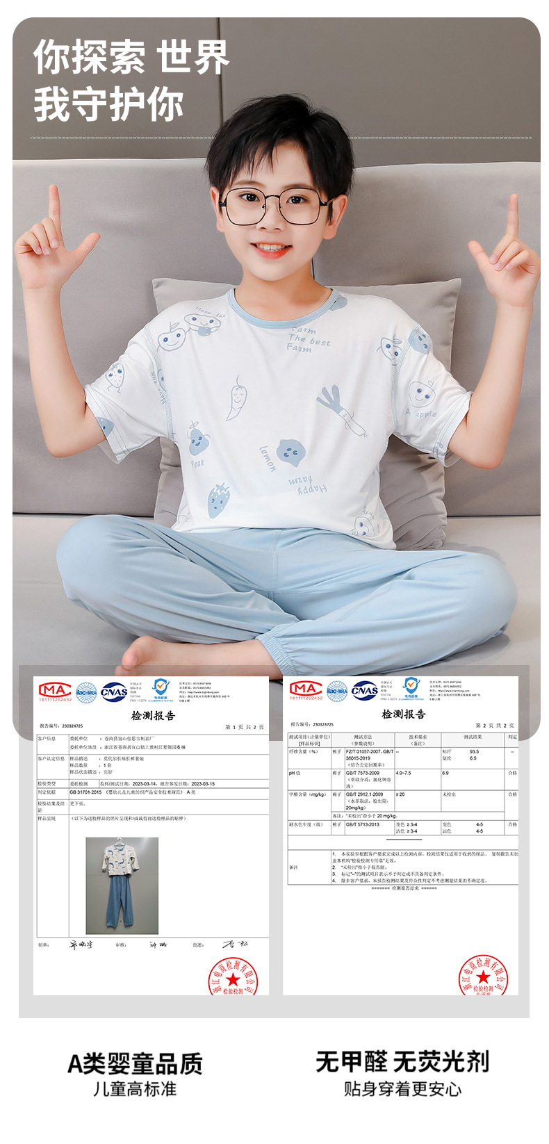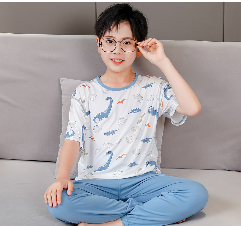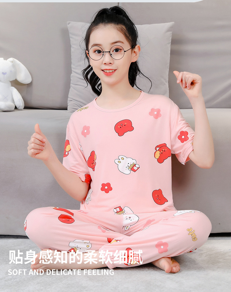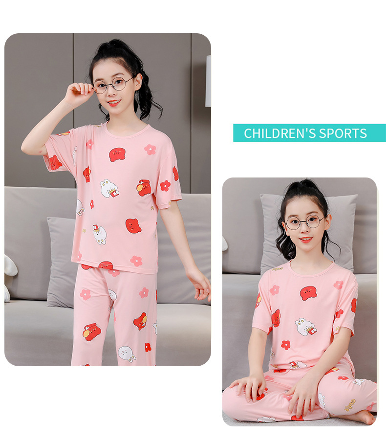 夏季薄款儿童家居服套装男童女童短袖空调服宝宝睡衣睡裤亲子套装