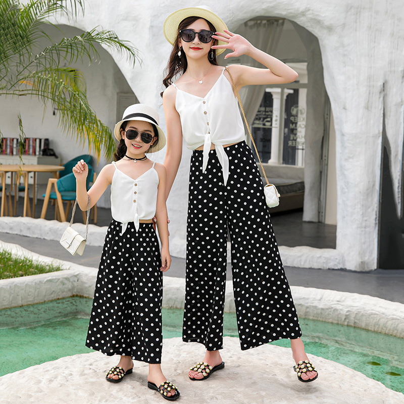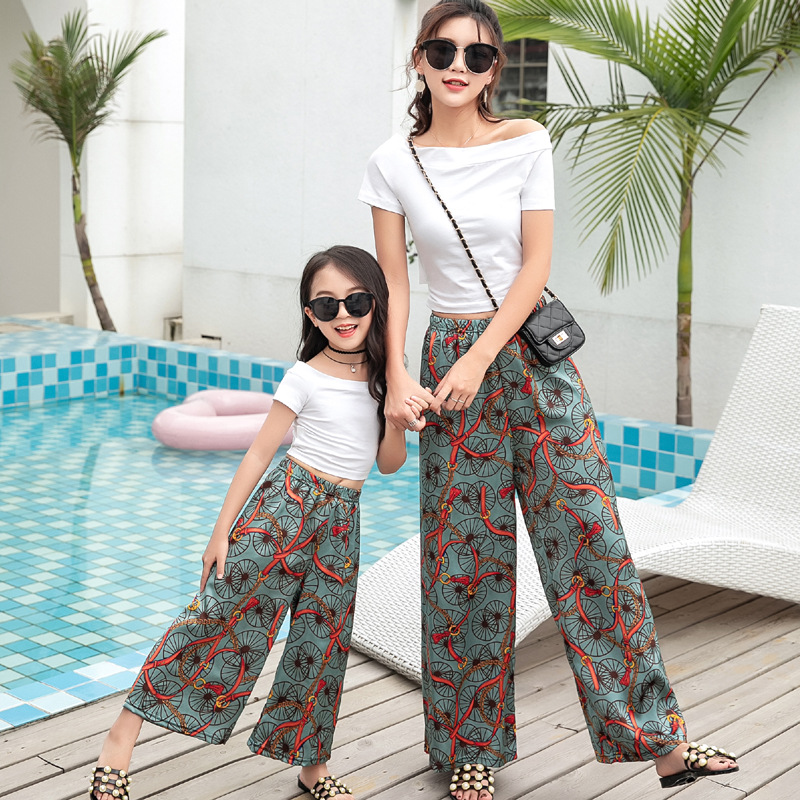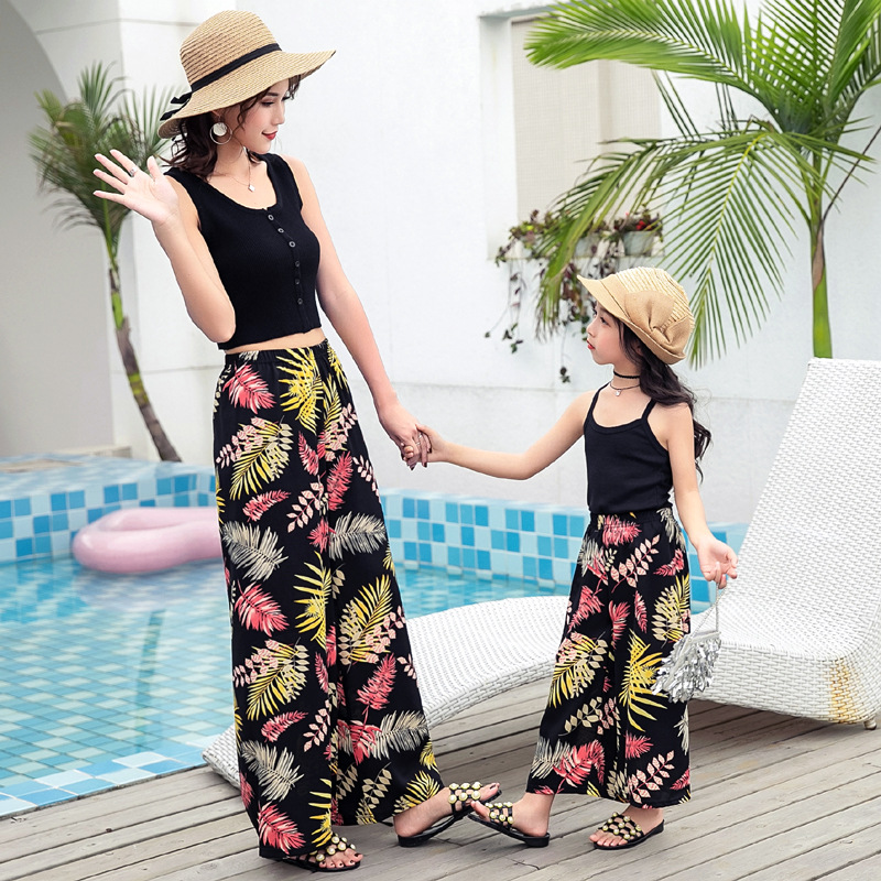 2021夏款新款母女亲子装九分阔腿裤女童薄款波西米亚宽松休闲裤厂