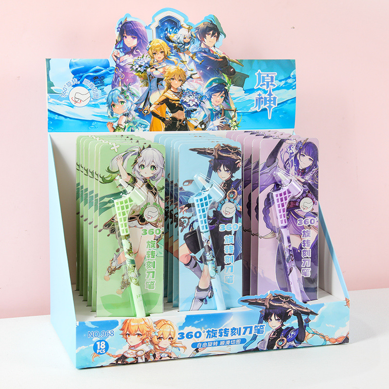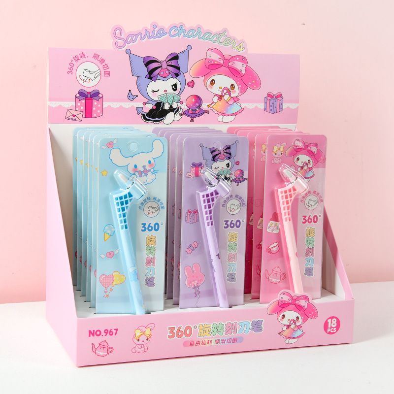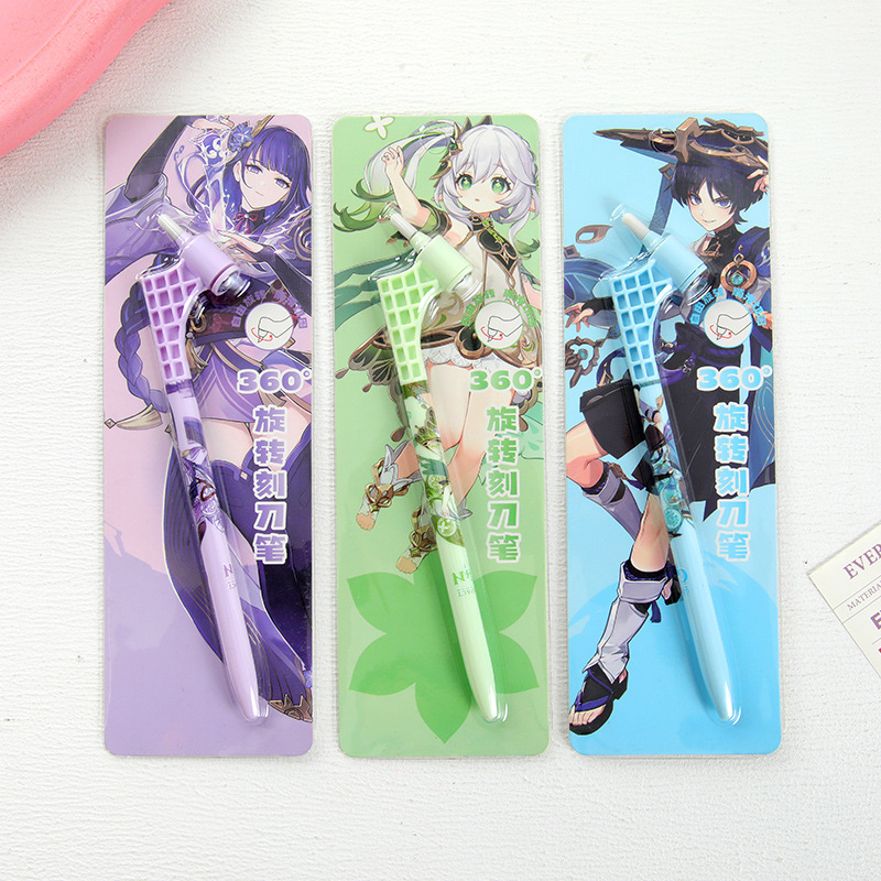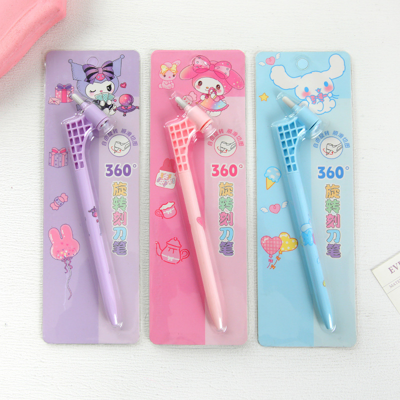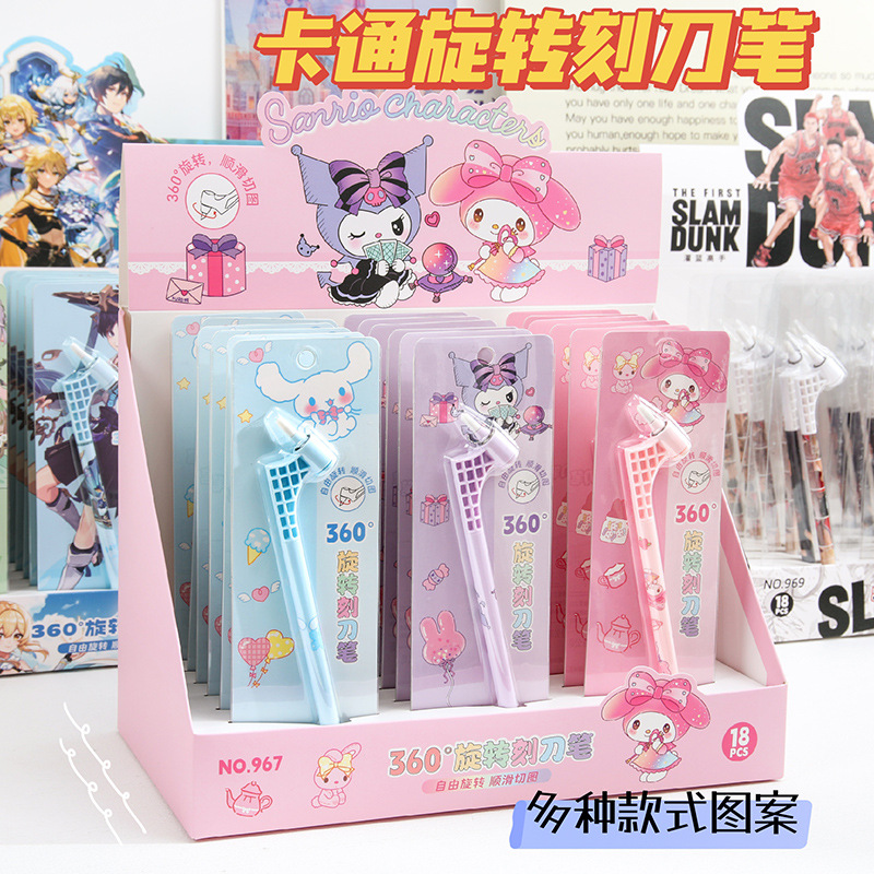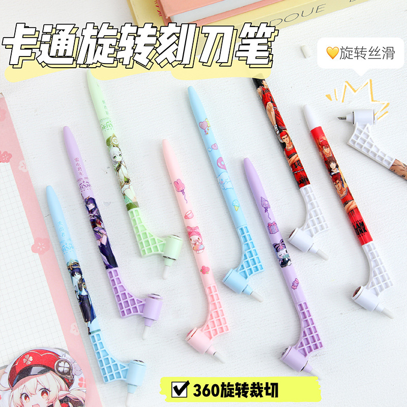 新款旋转刻刀裁纸刀美工刀三丽鸥原神款手帐刀礼盒装独立包装灌篮