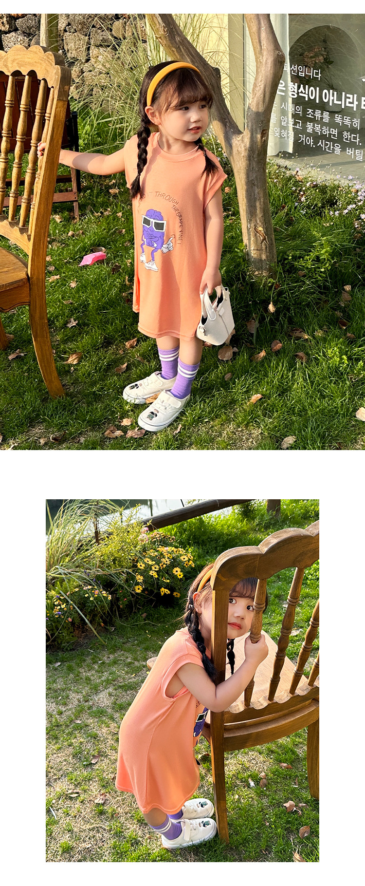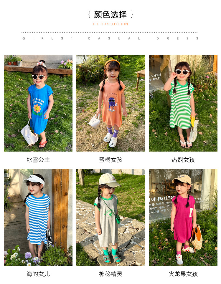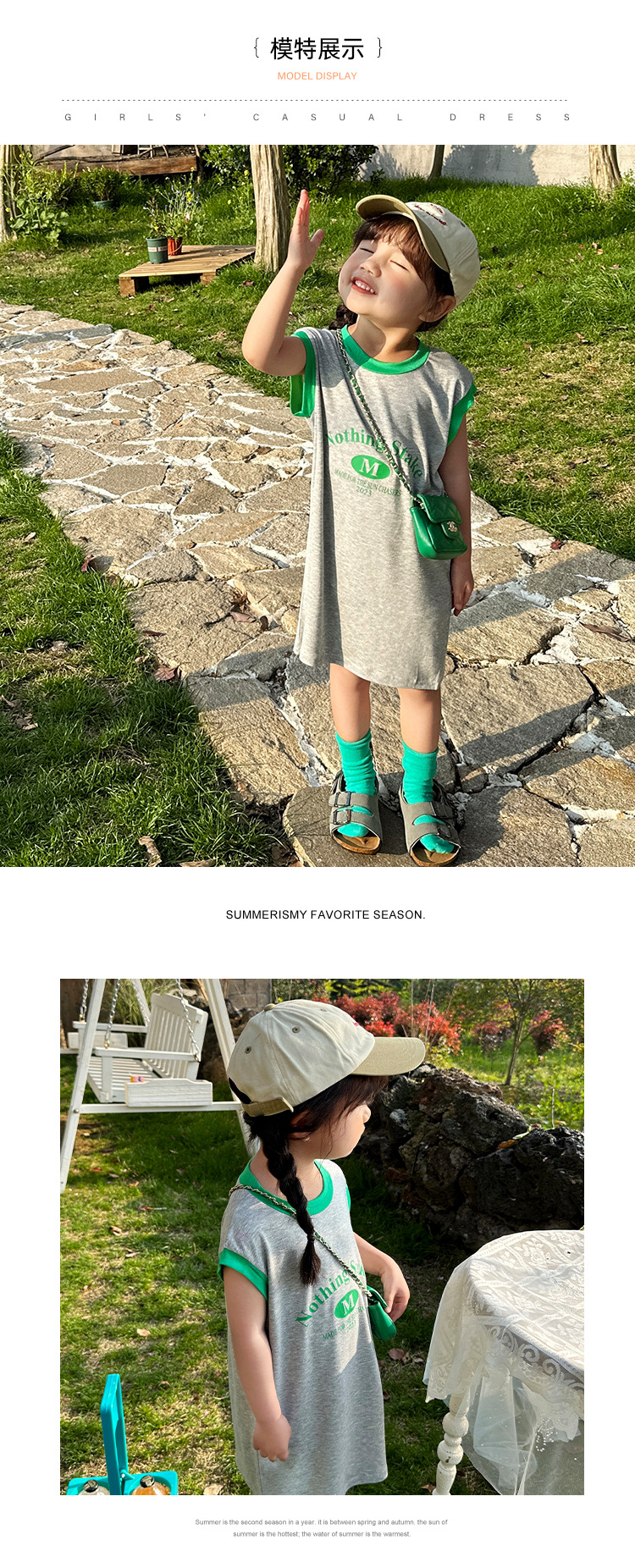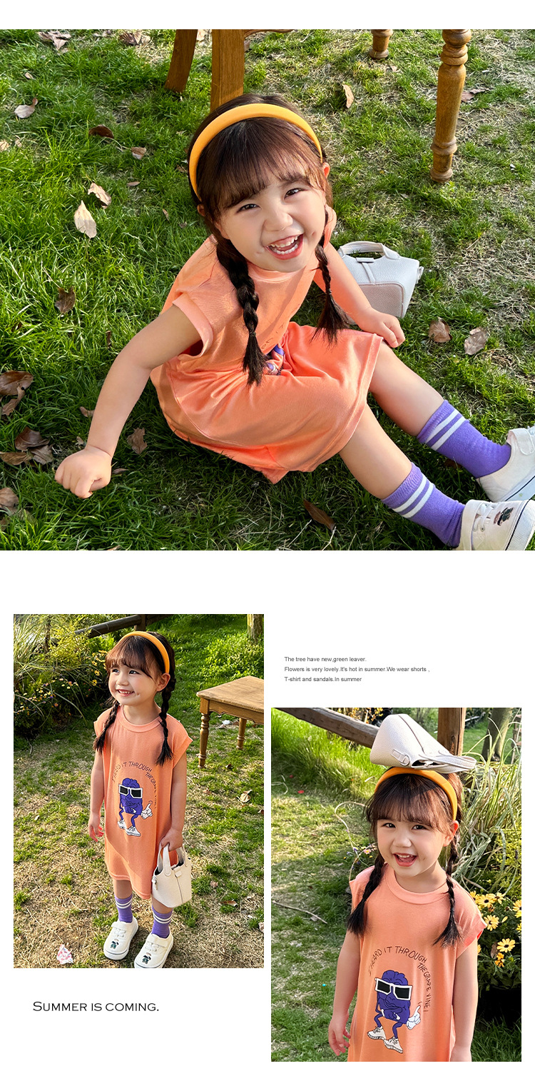 春夏新款儿童卡通印花无袖连衣裙中小童女童休闲时尚短袖外穿长裙