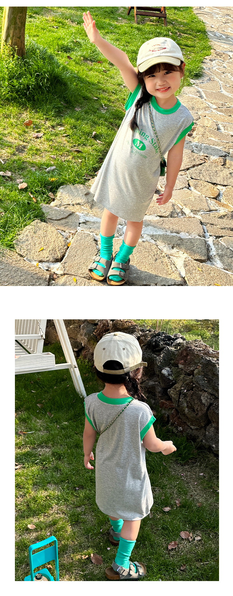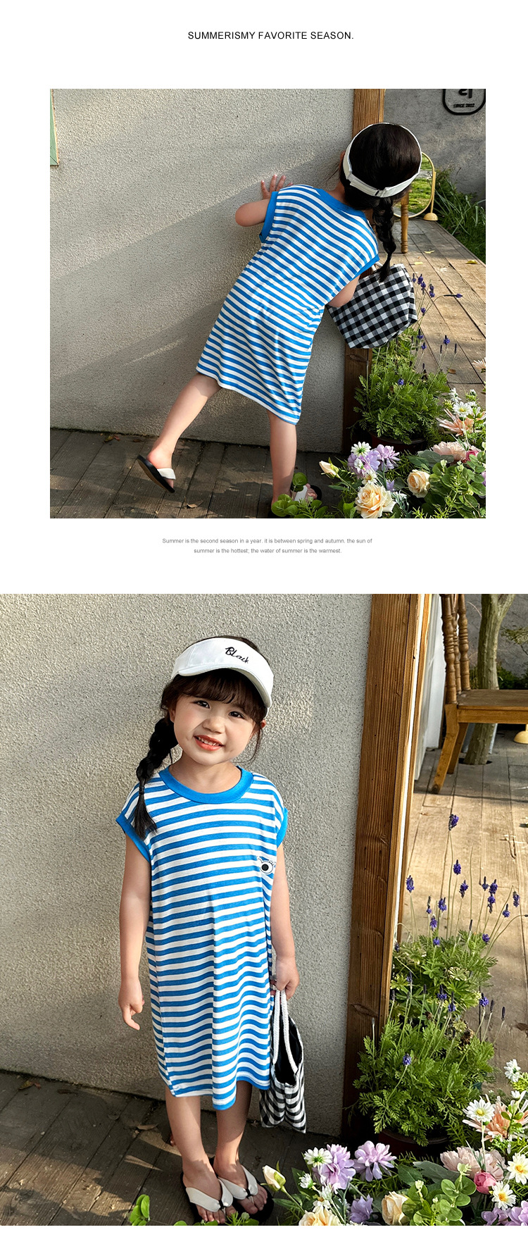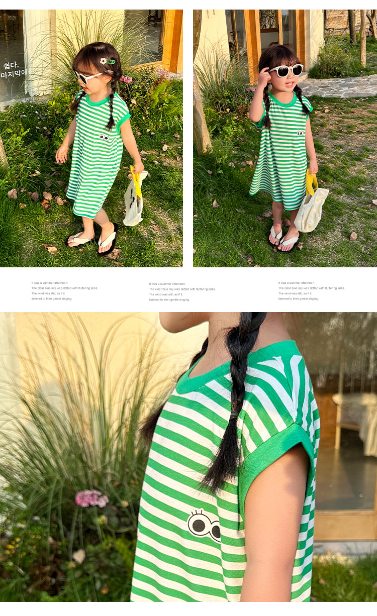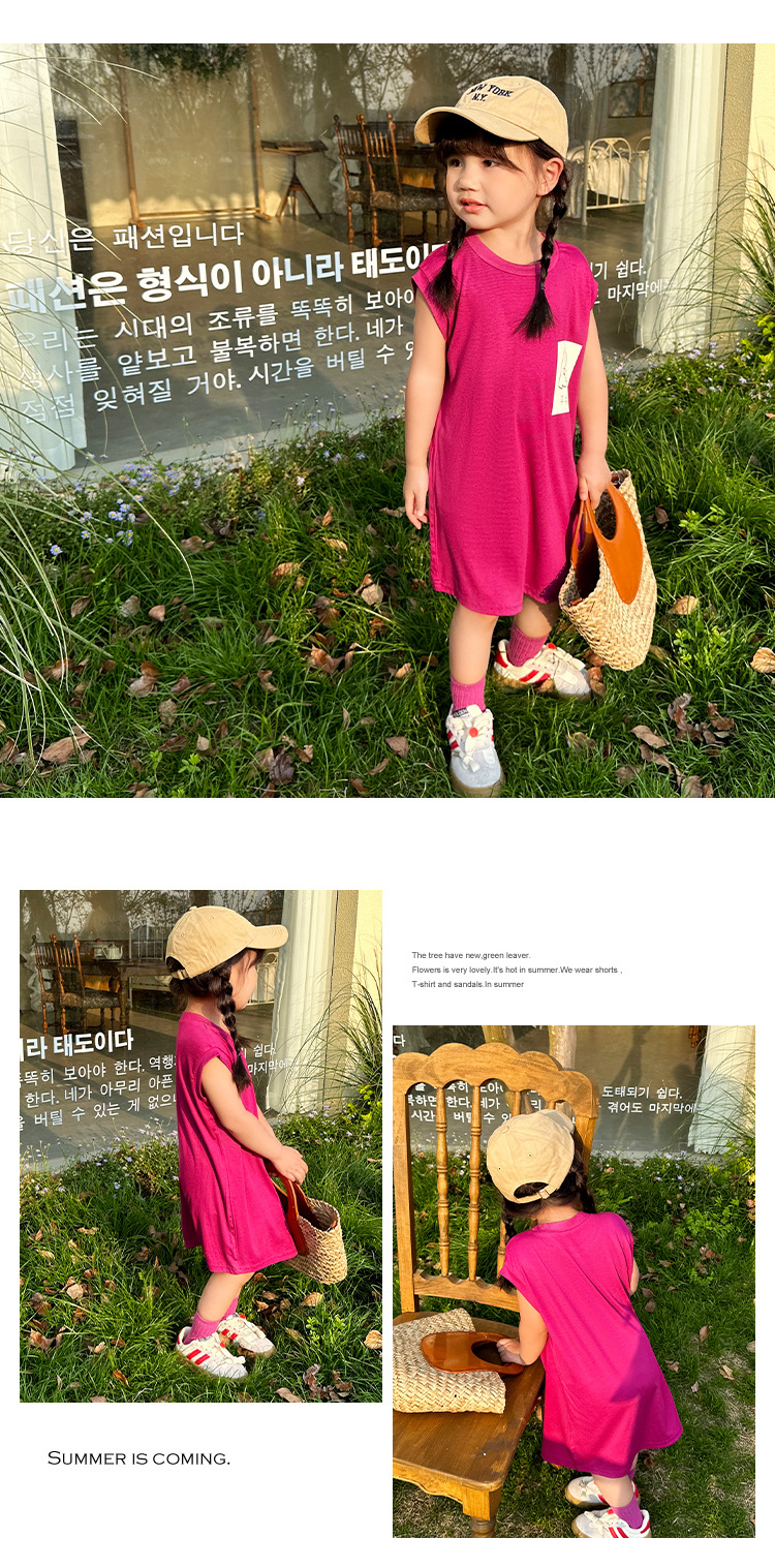 春夏新款儿童卡通印花无袖连衣裙中小童女童休闲时尚短袖外穿长裙