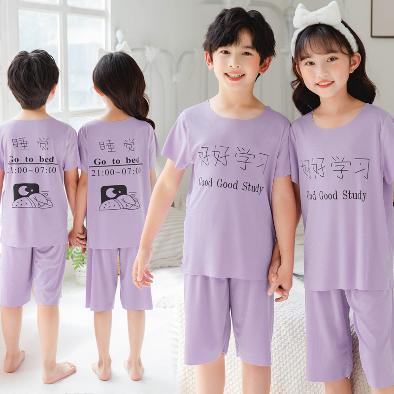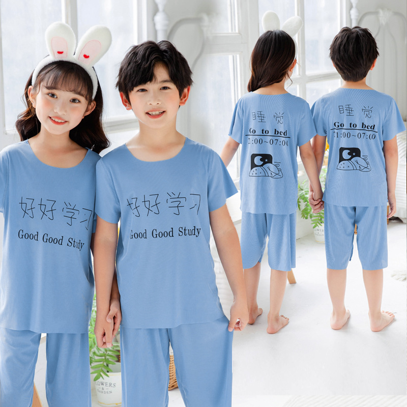 男童家居服套装2022年新款儿童糖果色睡衣睡裤女宝宝透气空调服