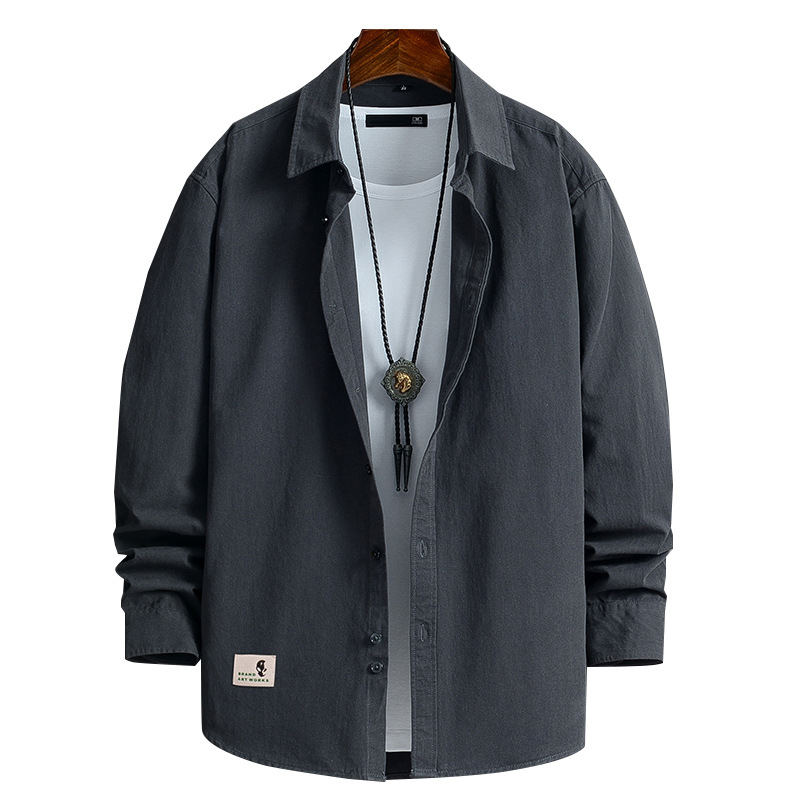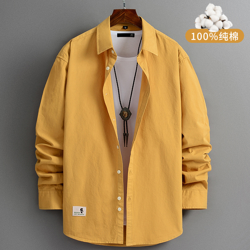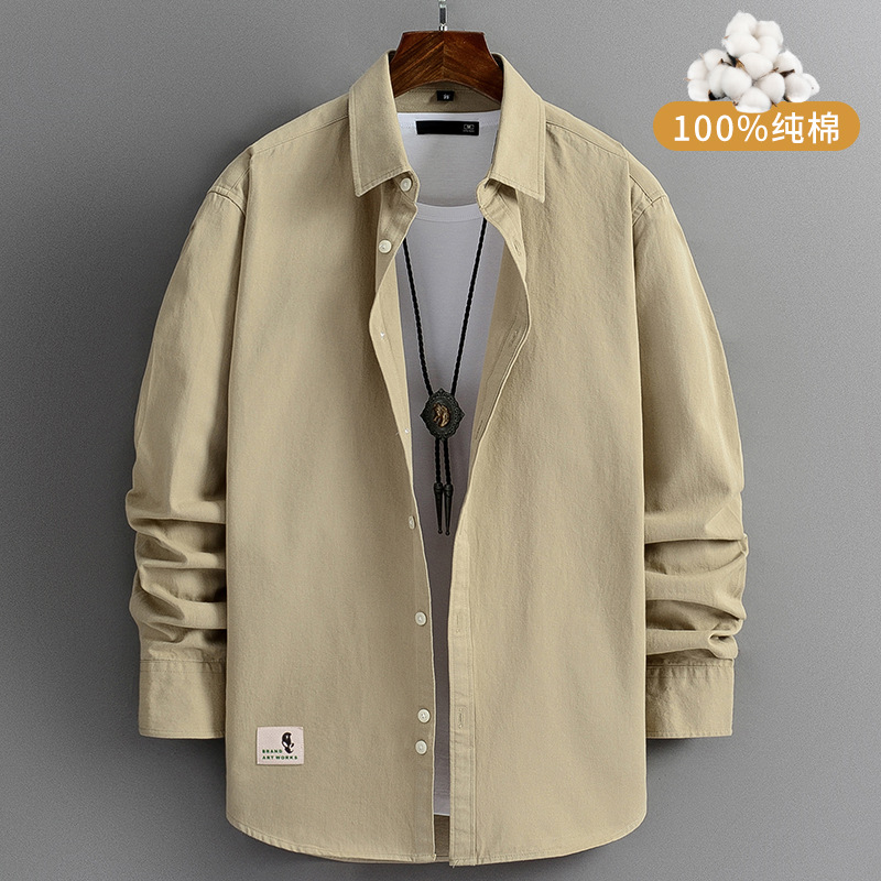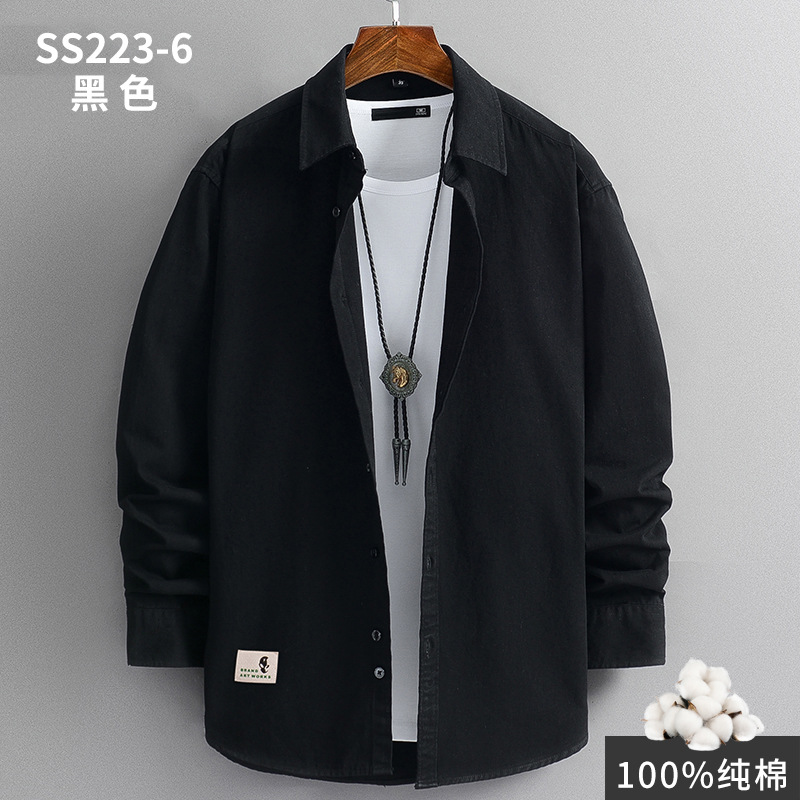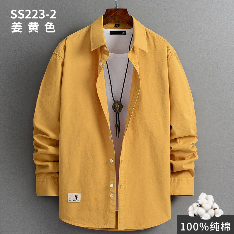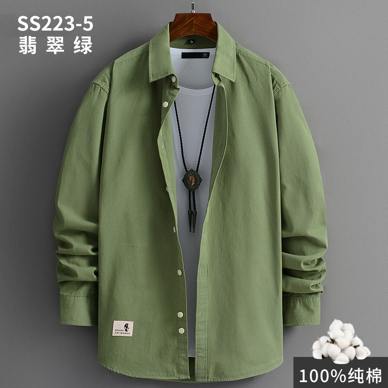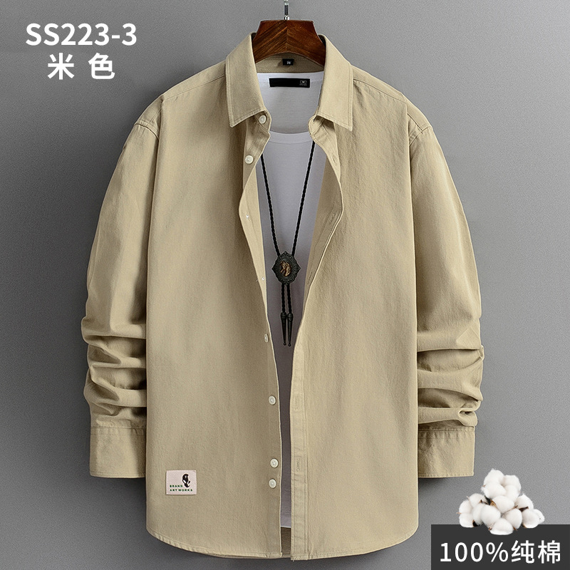 春季新款纯棉工装外套衬衫男韩版时尚长袖男休闲寸衫潮流工装外套