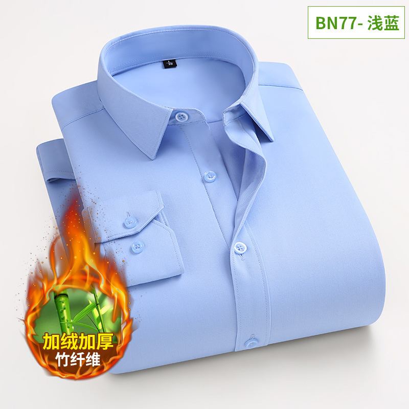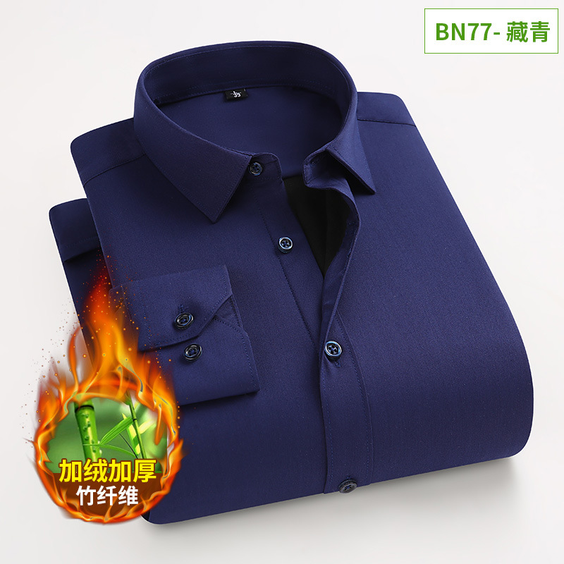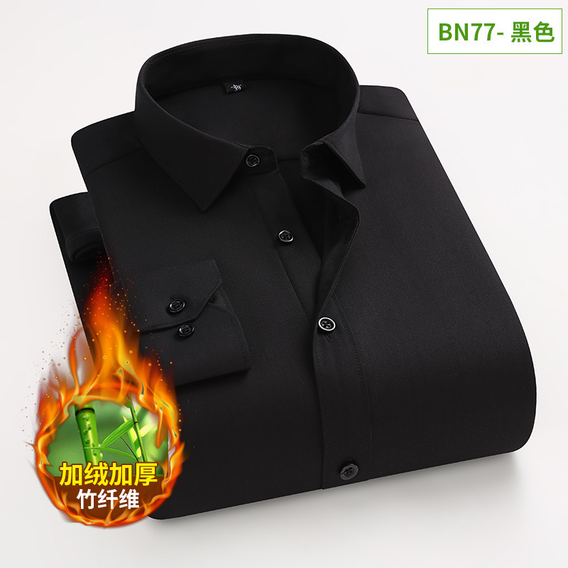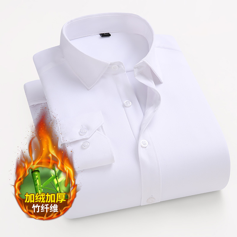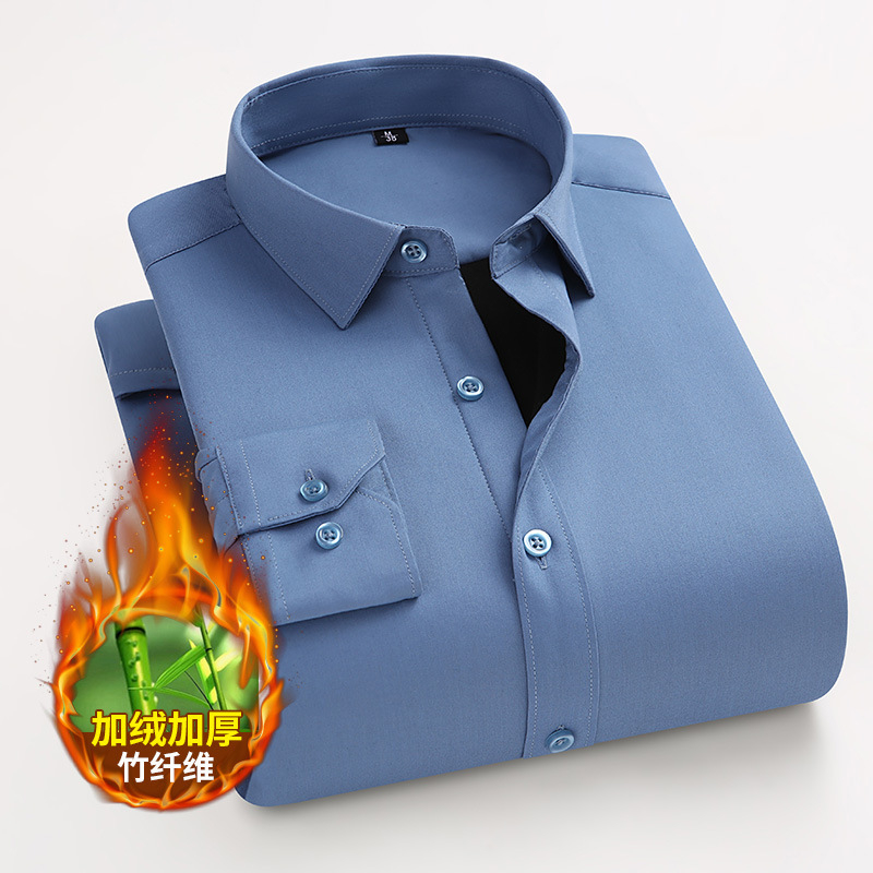 秋冬季竹纤维纯色男衬衫男士加绒薄款长袖中年商务正装休闲