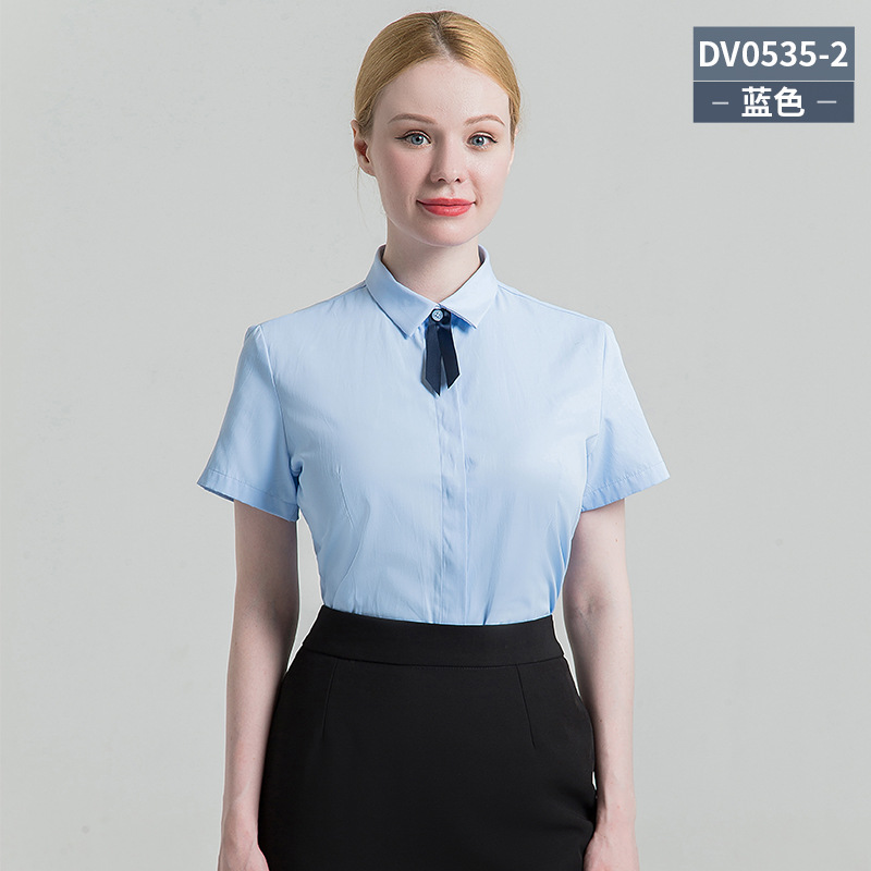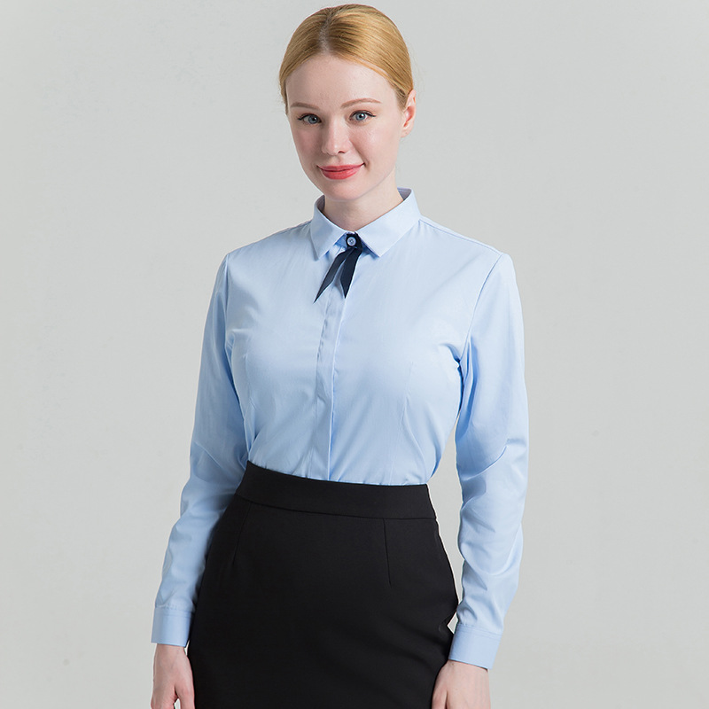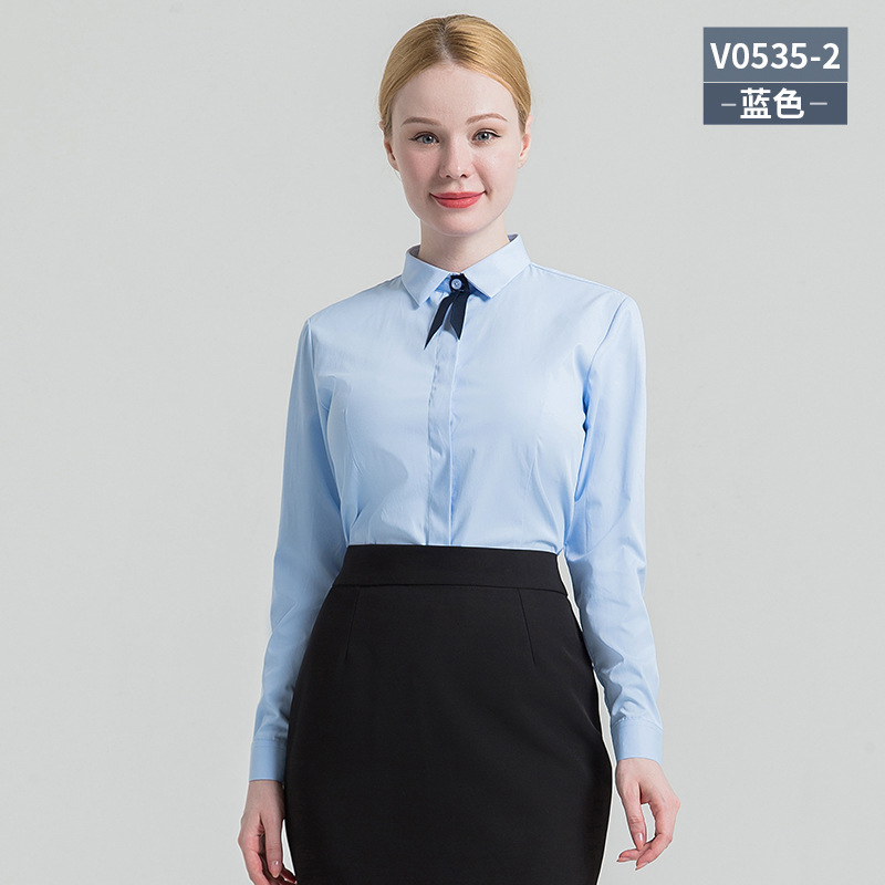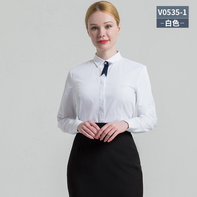 义深海2025春秋女士长袖方领白衬衫纯色商务职业装女式衬衫批发
