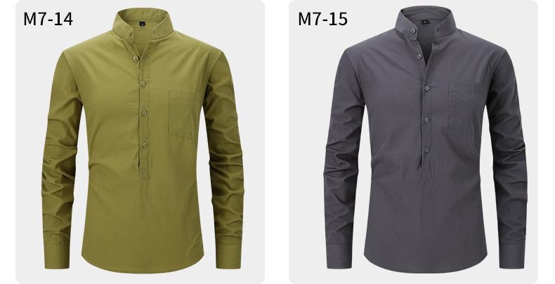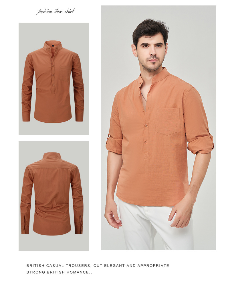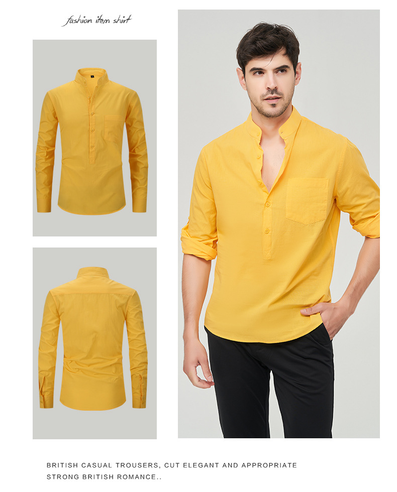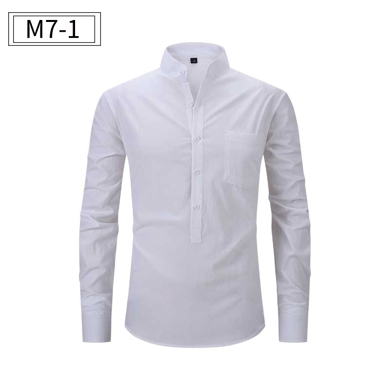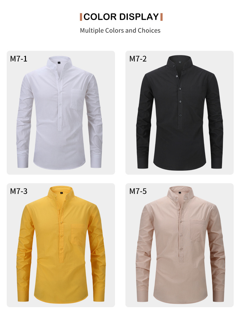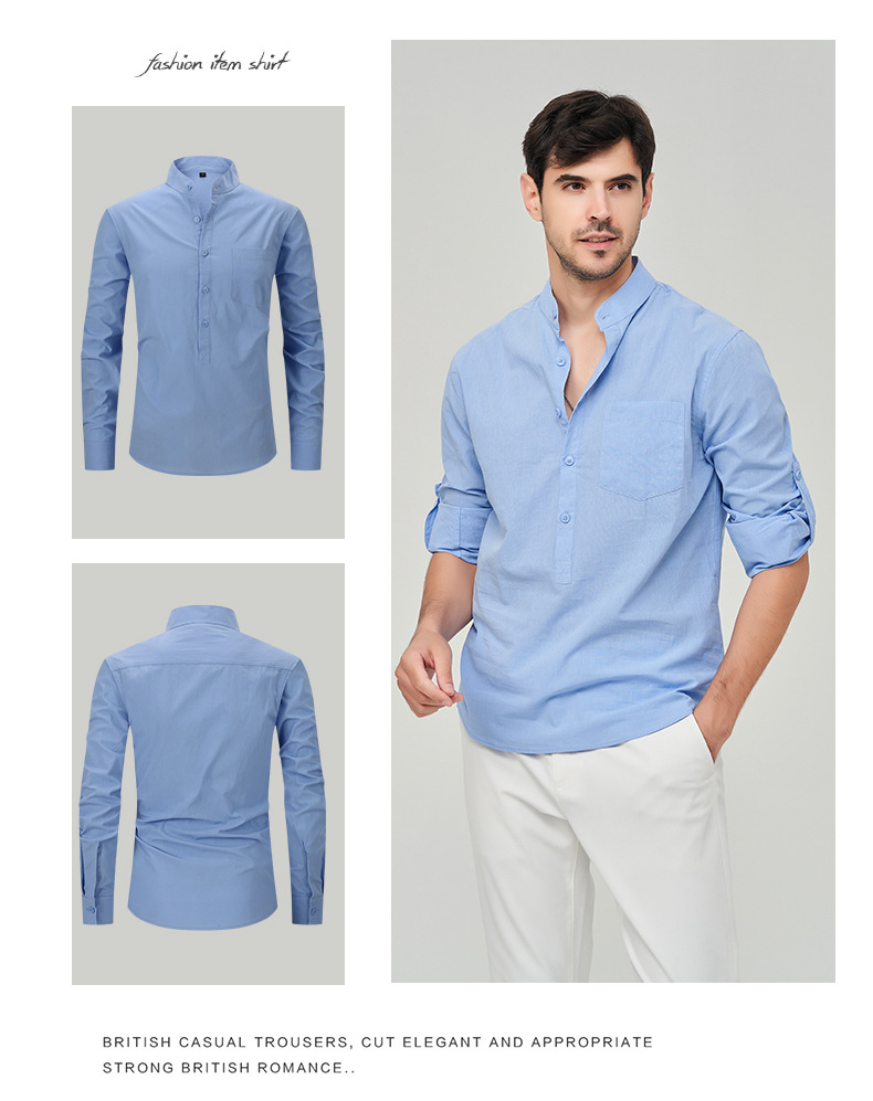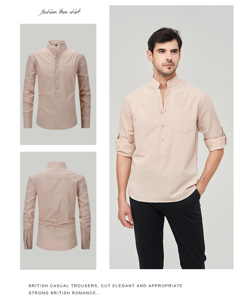 跨境外贸春季男装纯棉亨利衫白衬衣长袖男全棉免烫衬衫痞帅男批发