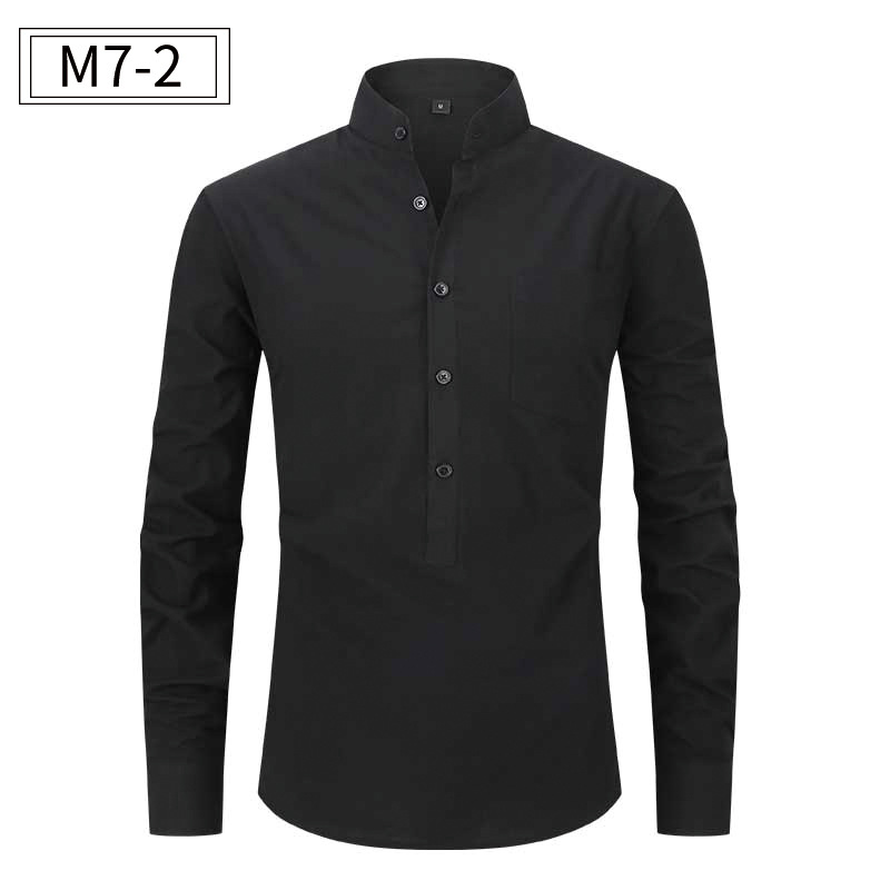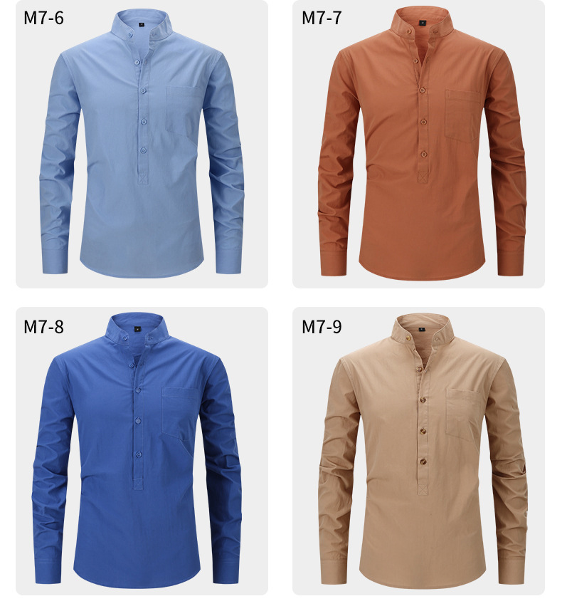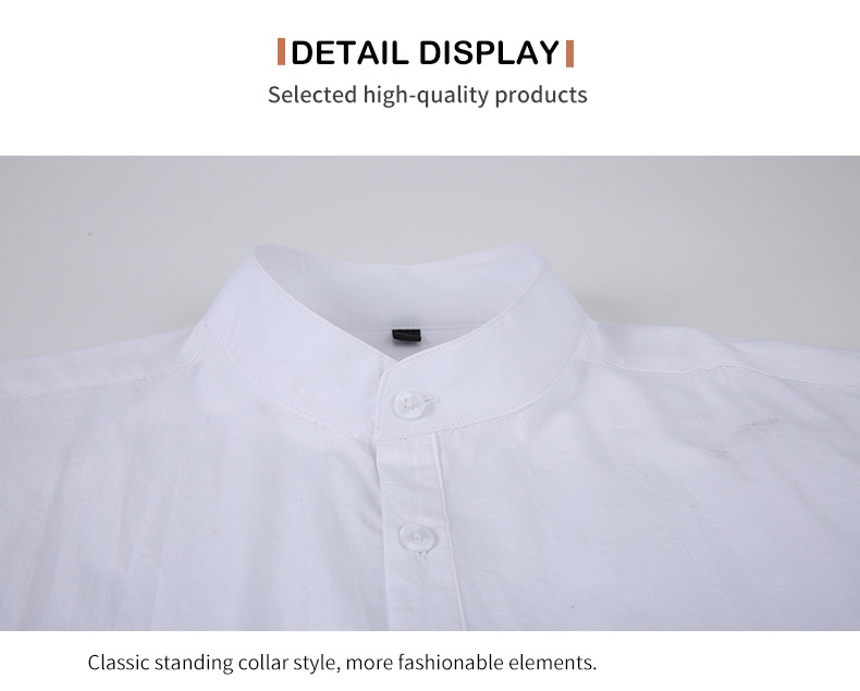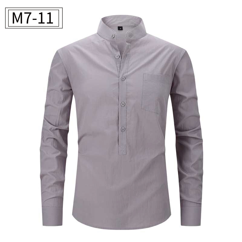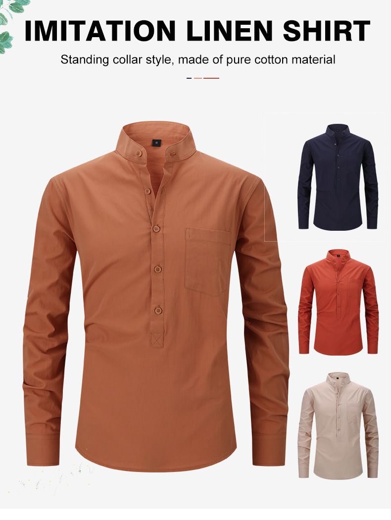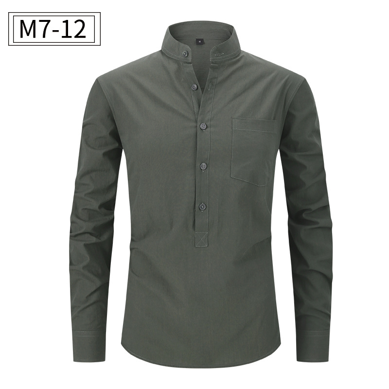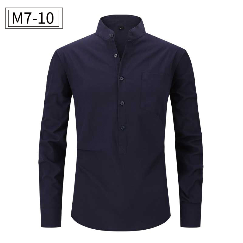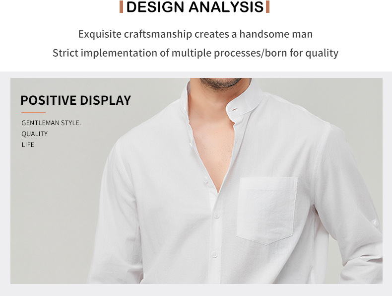 跨境外贸春季男装纯棉亨利衫白衬衣长袖男全棉免烫衬衫痞帅男批发