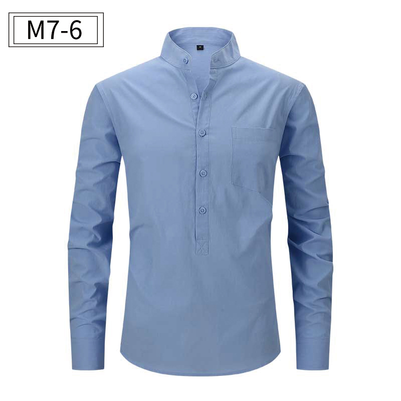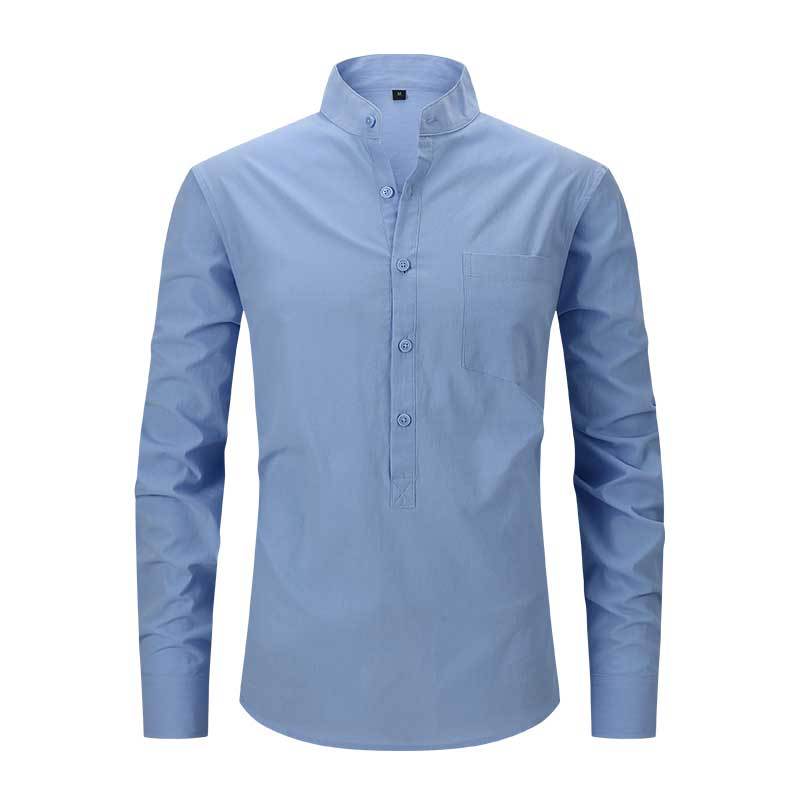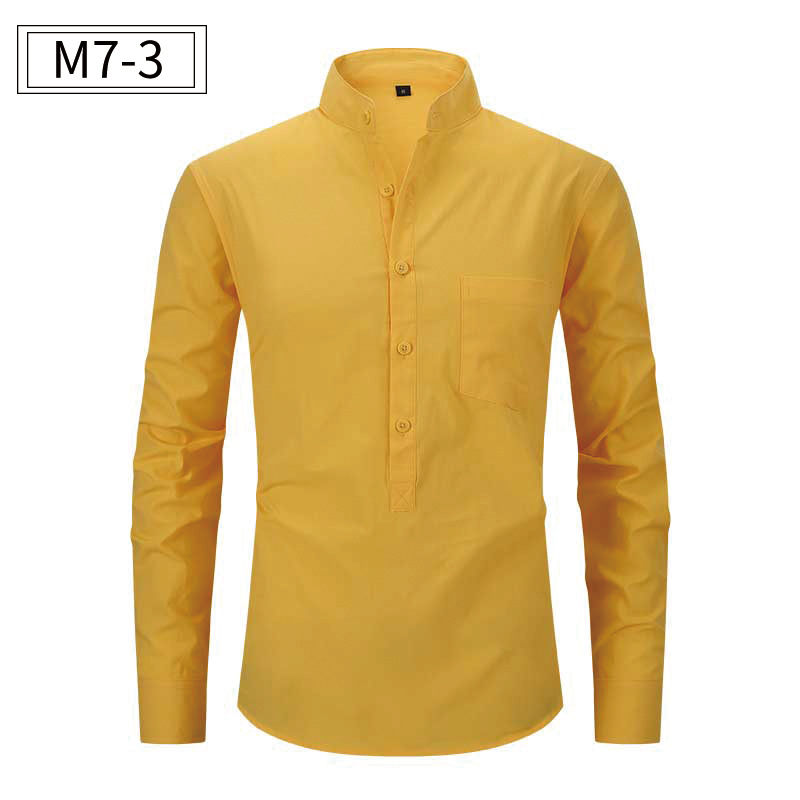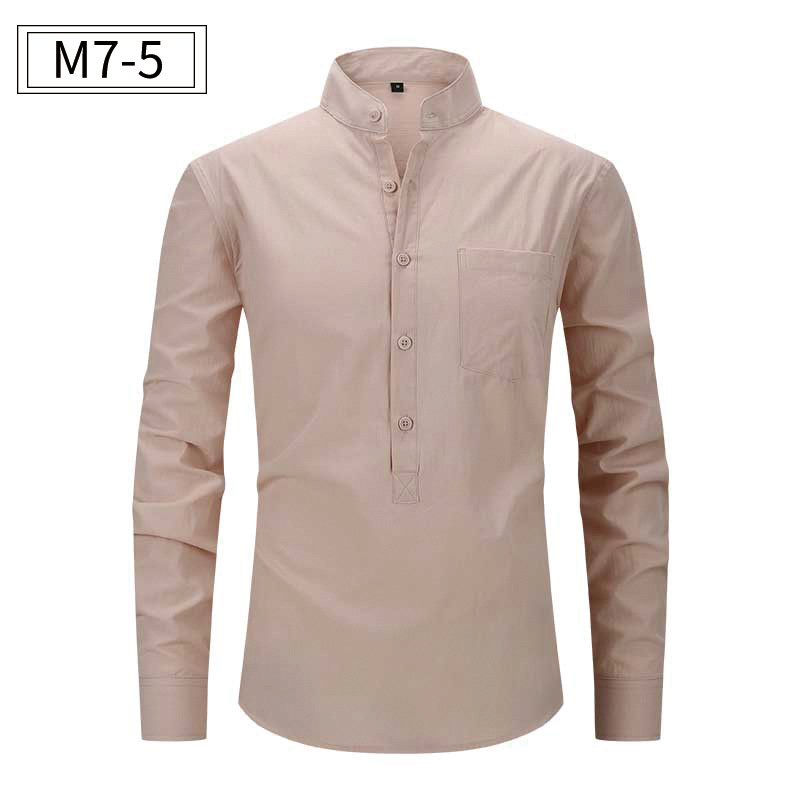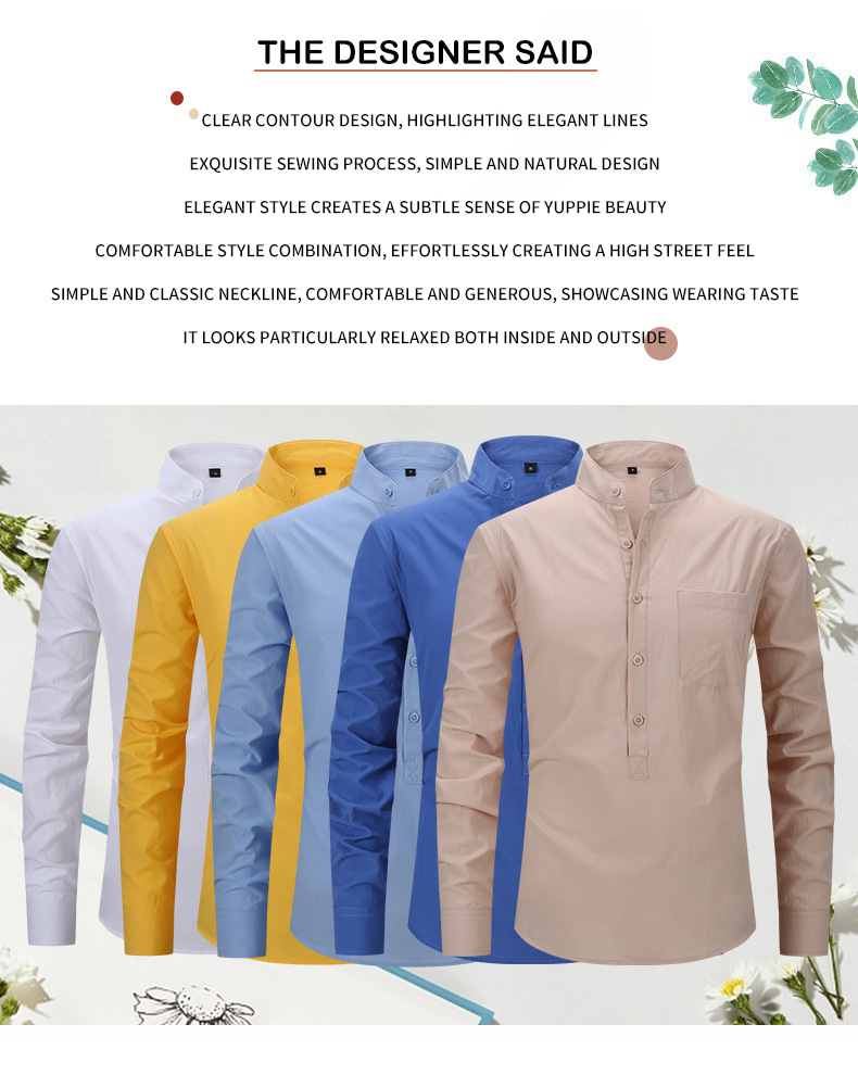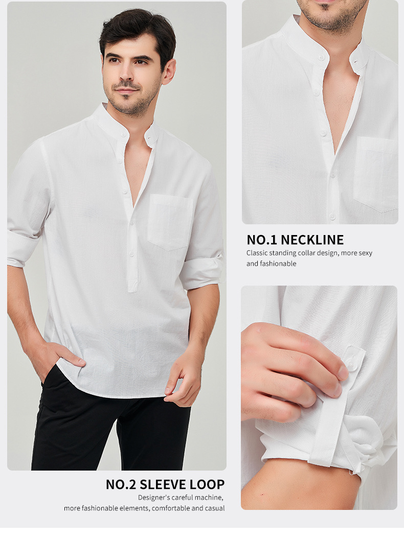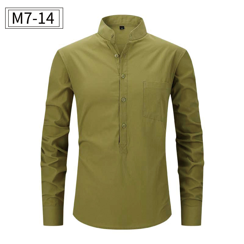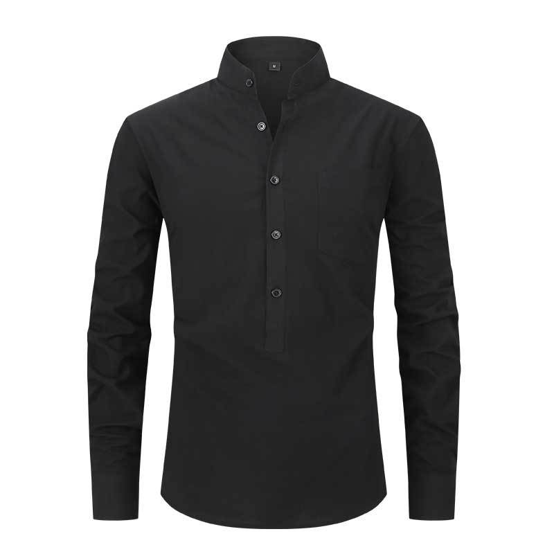 跨境外贸春季男装纯棉亨利衫白衬衣长袖男全棉免烫衬衫痞帅男批发