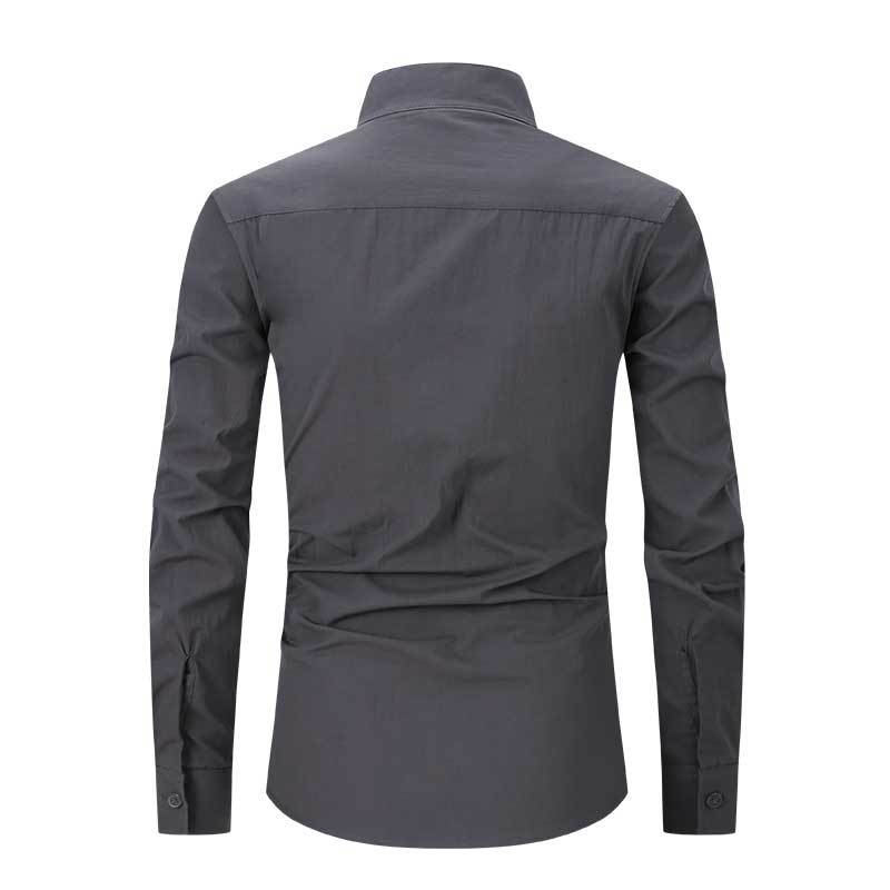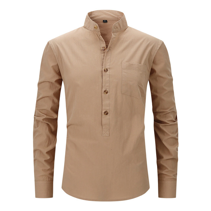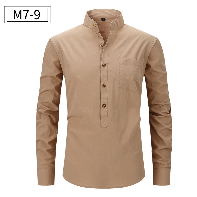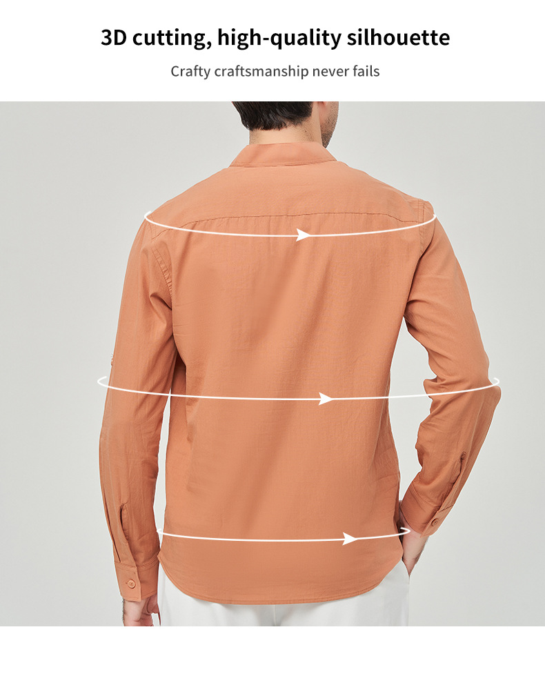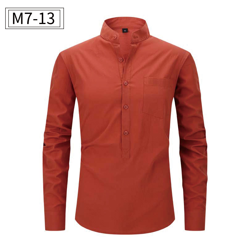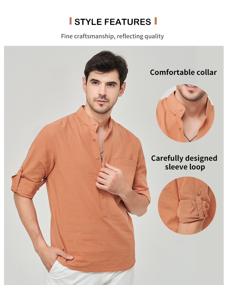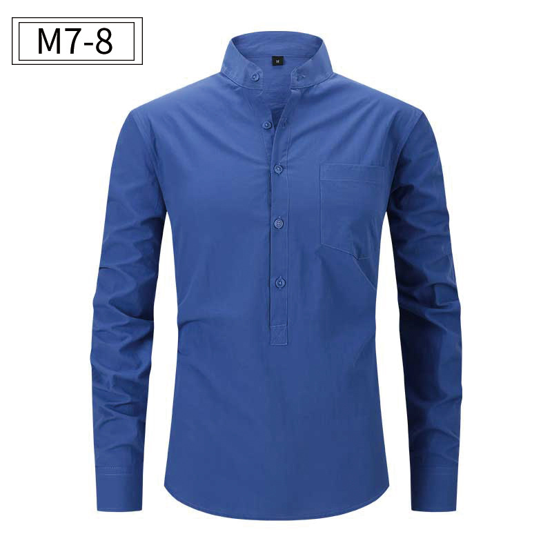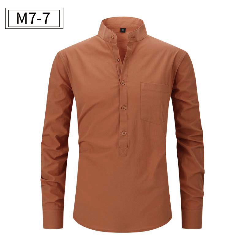 跨境外贸春季男装纯棉亨利衫白衬衣长袖男全棉免烫衬衫痞帅男批发