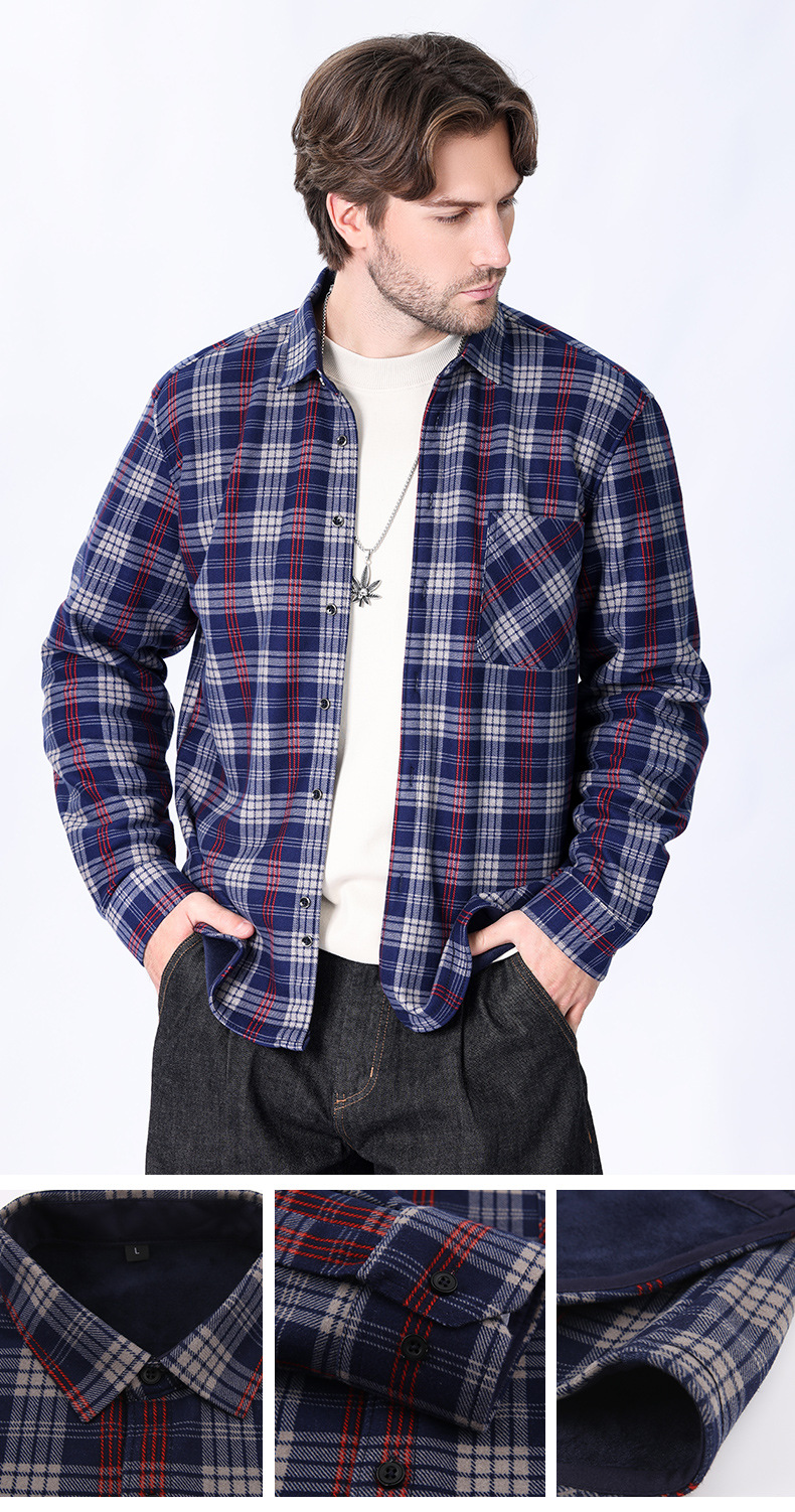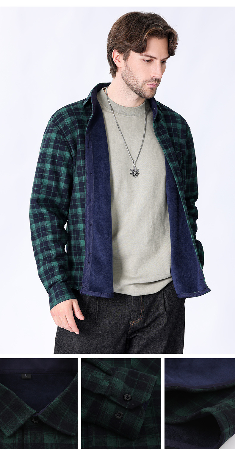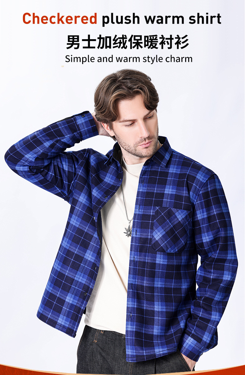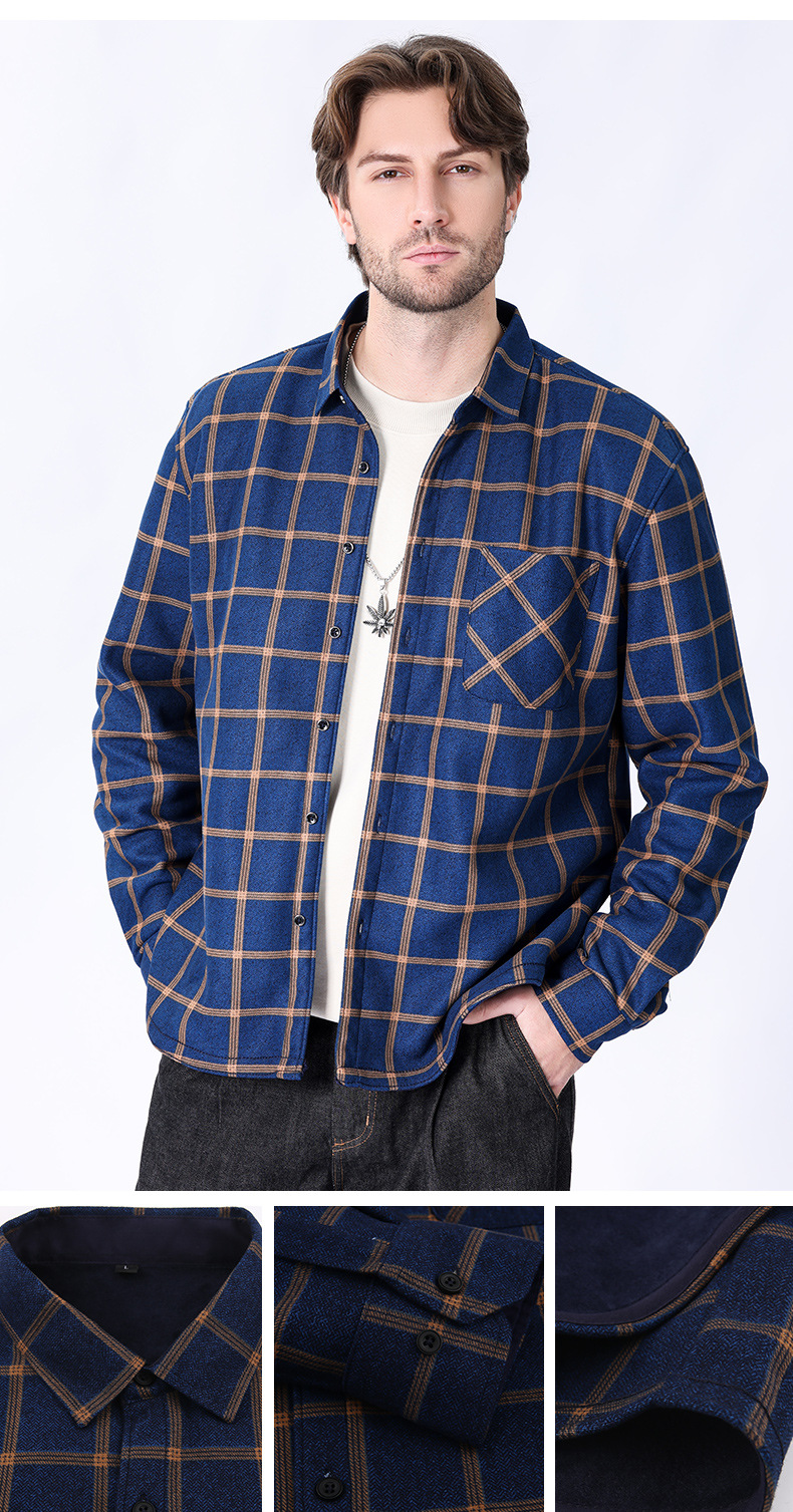 跨境款简约潮流高级感加绒加厚保暖衬衣美式复古男士法兰绒衬衫