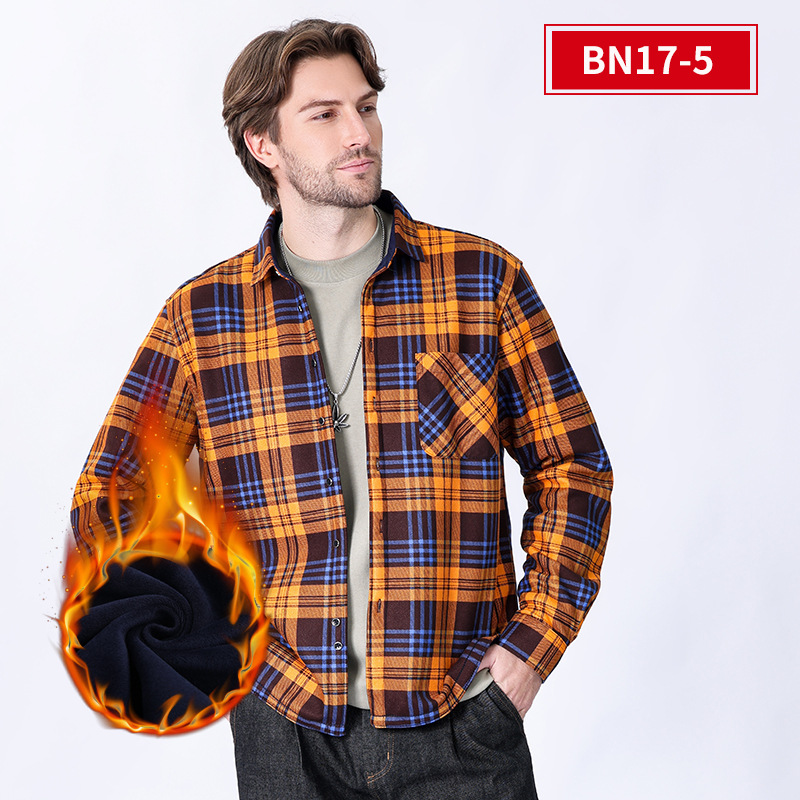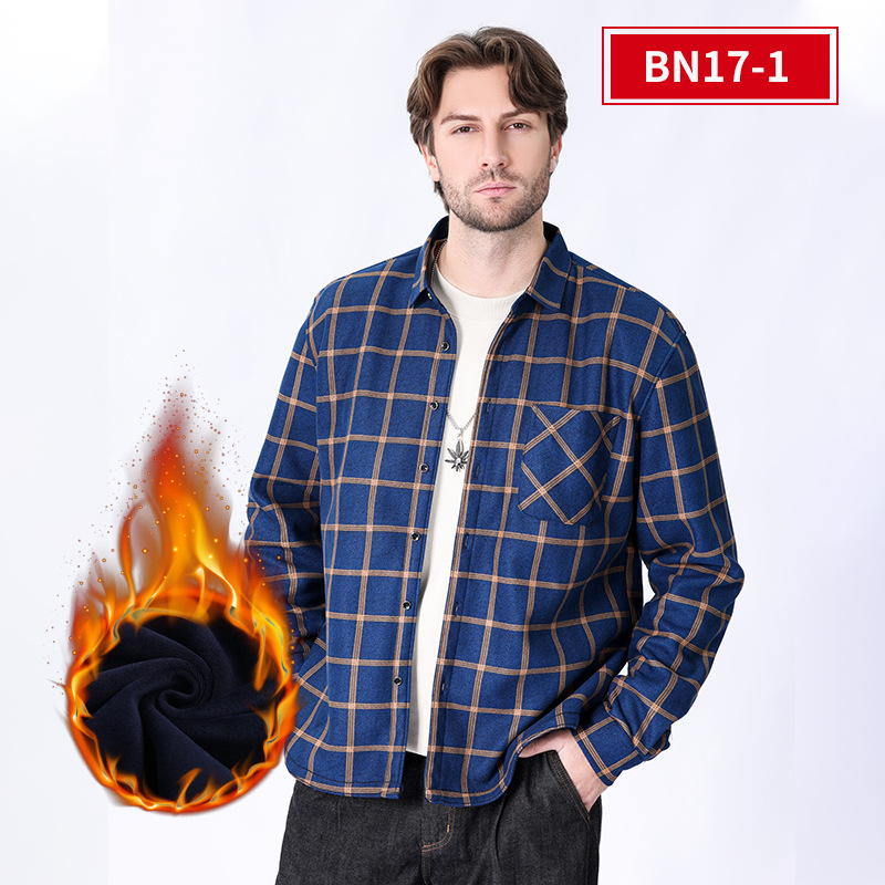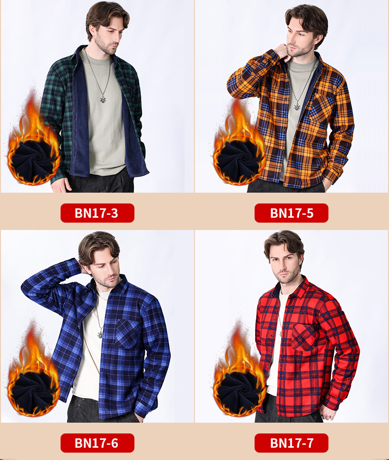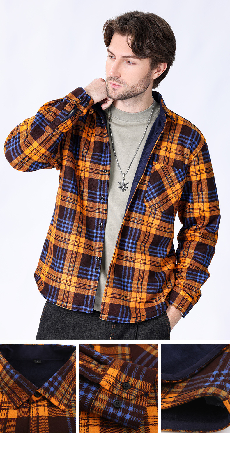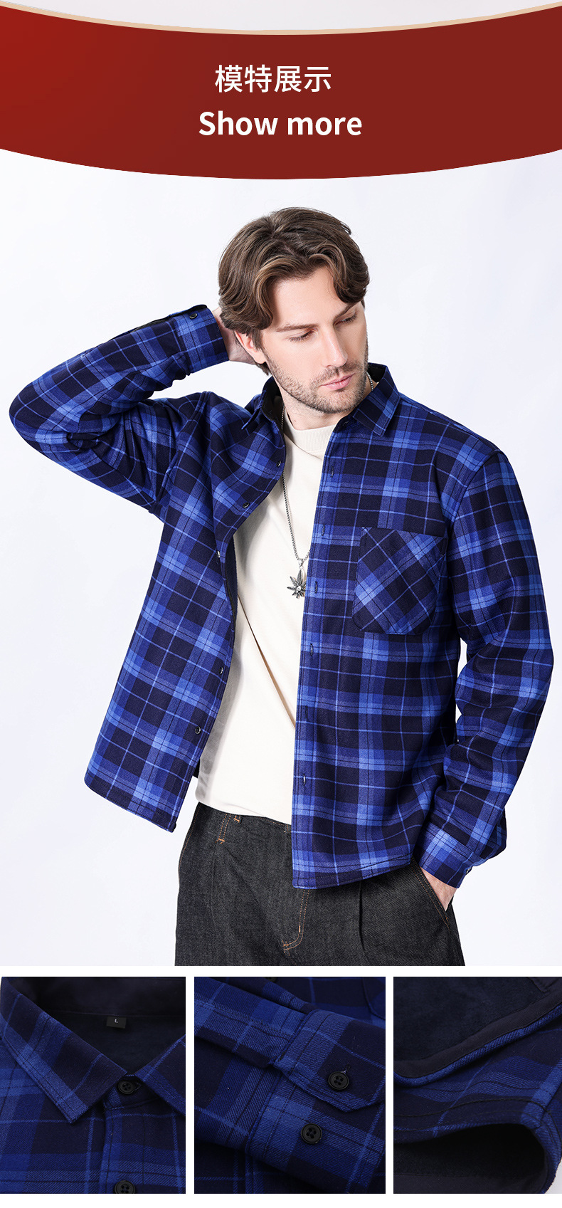 跨境款简约潮流高级感加绒加厚保暖衬衣美式复古男士法兰绒衬衫