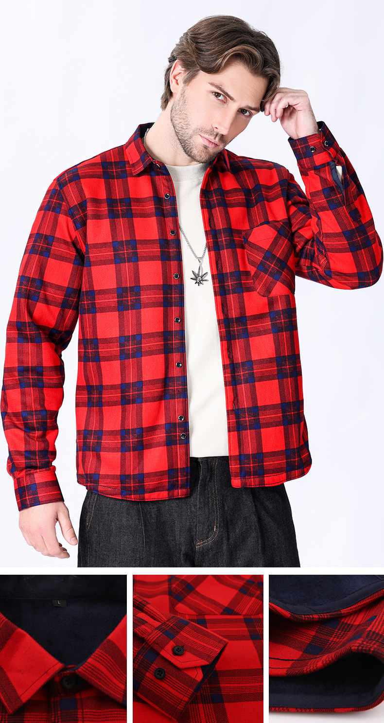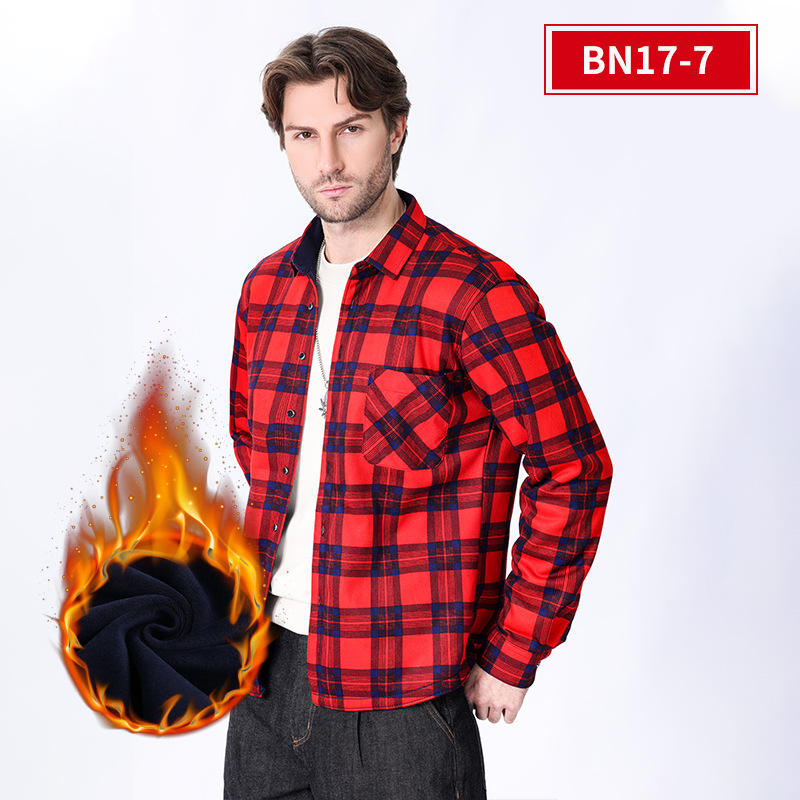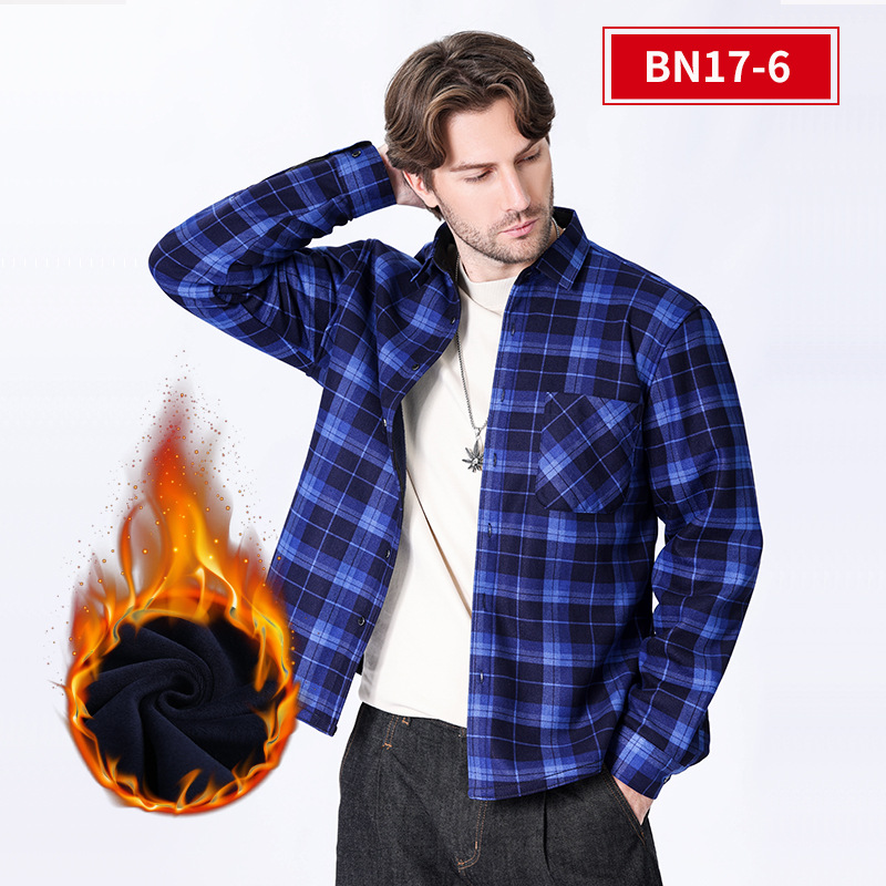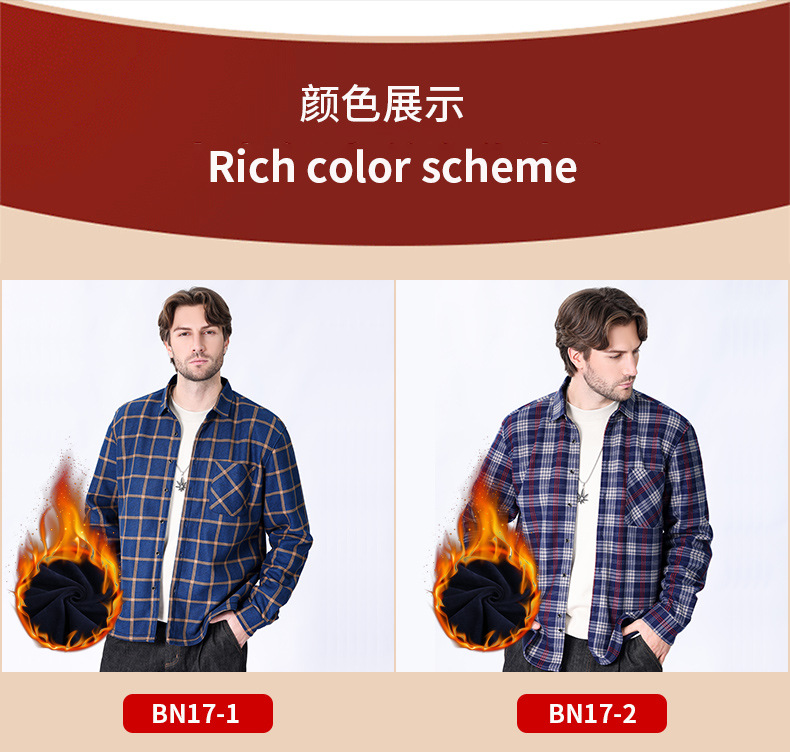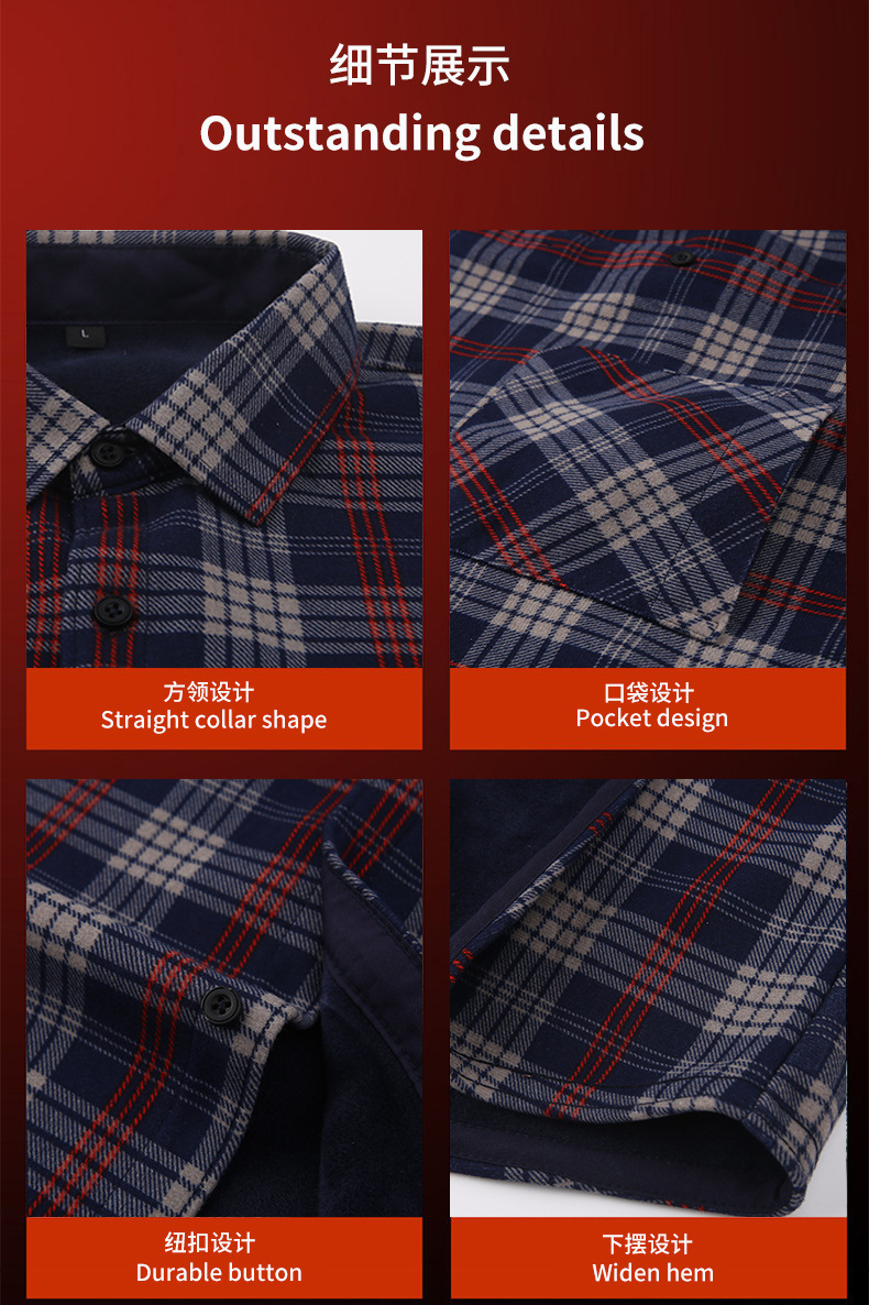 跨境款简约潮流高级感加绒加厚保暖衬衣美式复古男士法兰绒衬衫