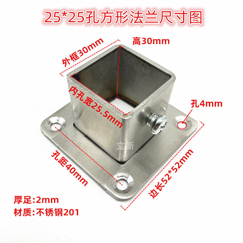 OD59批发加厚不锈钢方形法兰座衣柜挂衣杆方底座方管托毛巾杆吊座