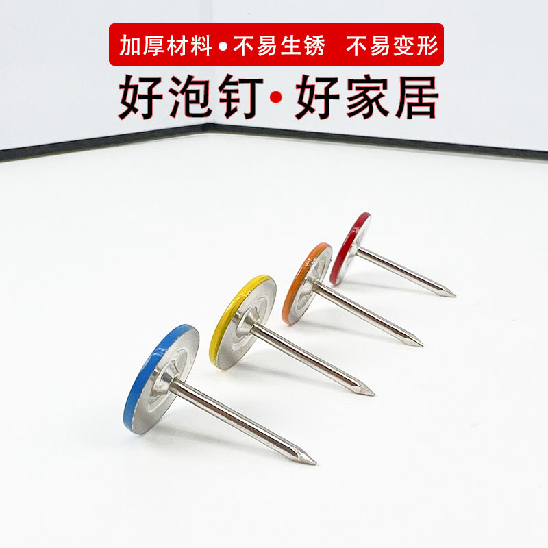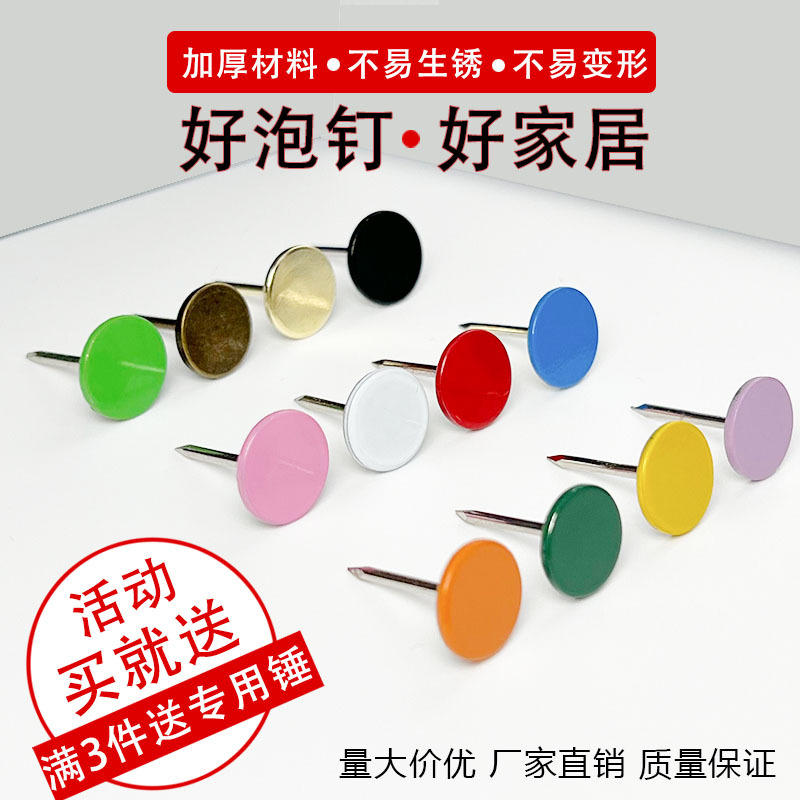1V0H批发平头图钉子按钉加长装饰钉加厚大头钉沙发钉泡钉彩色平面