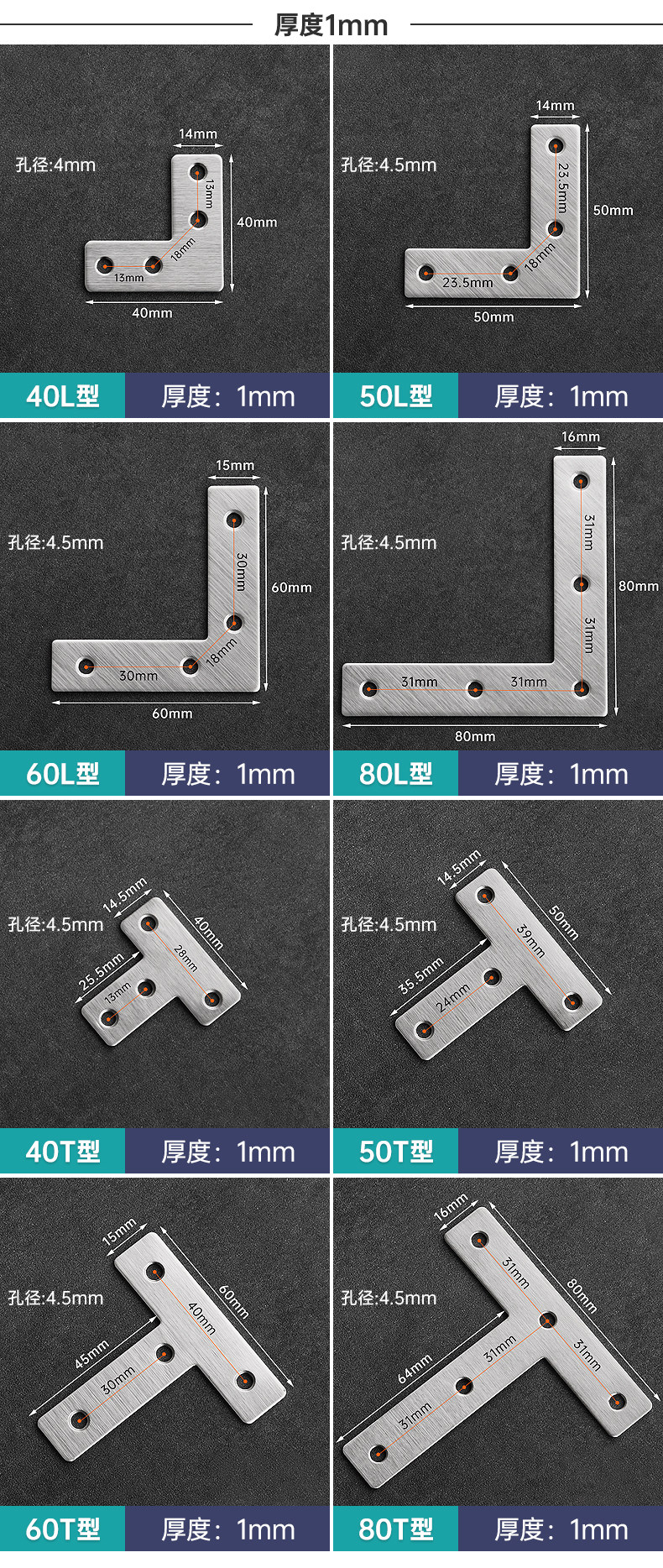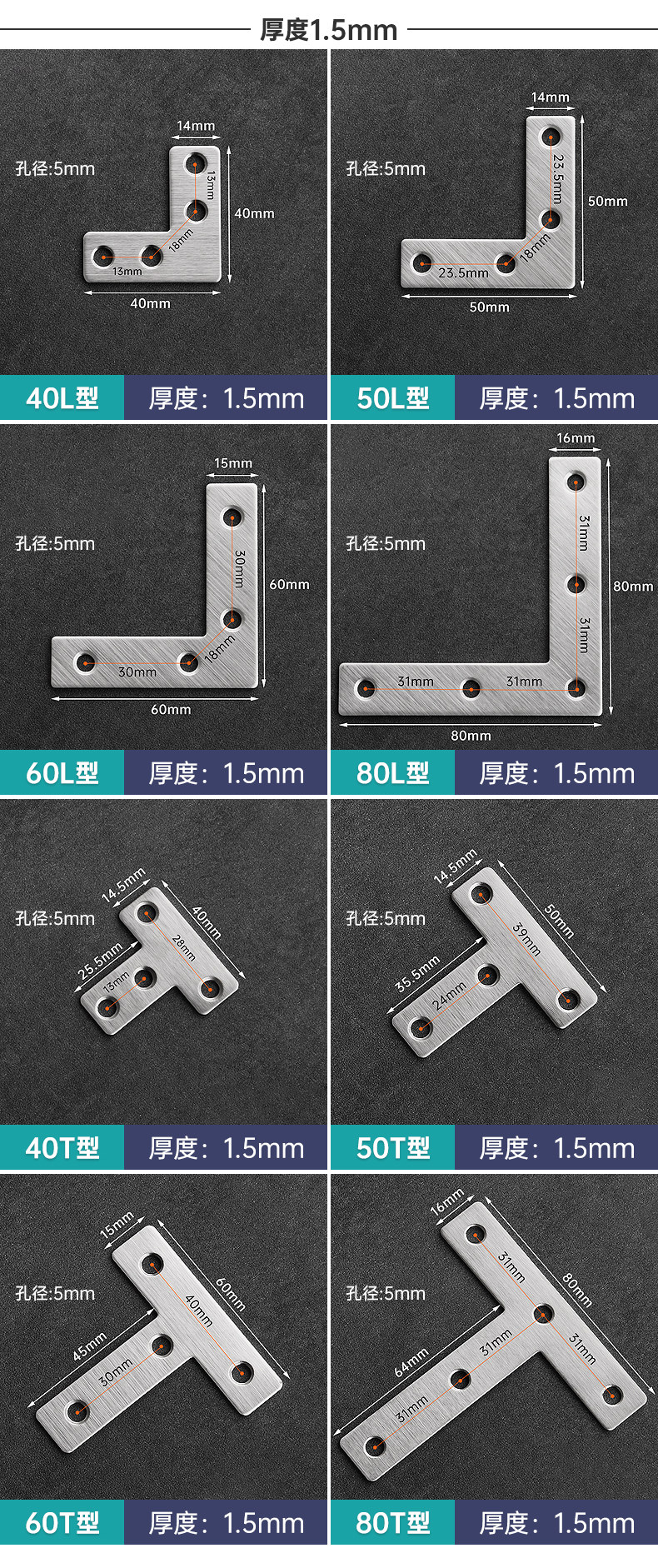 5YA1不锈钢角码加固90度直角固定块连接件家具铁片L形T形三角铁架