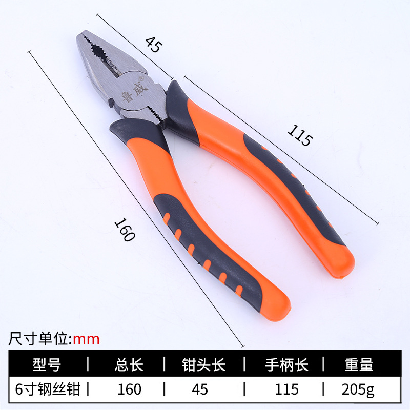 鲁威工业级钳子尖嘴钳多功能手工钢丝钳省力防滑绝缘老虎钳斜口钳