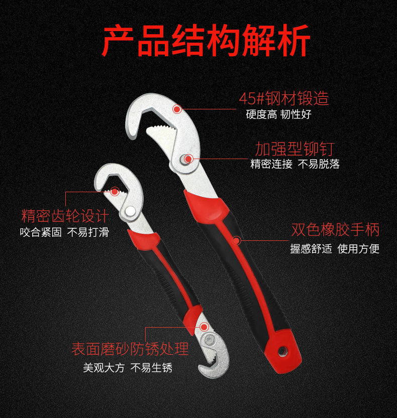 厂家现货万能扳手套装万用扳手多功能活动管钳工业级五金工具钩型