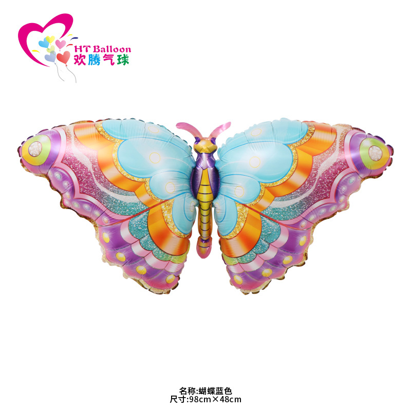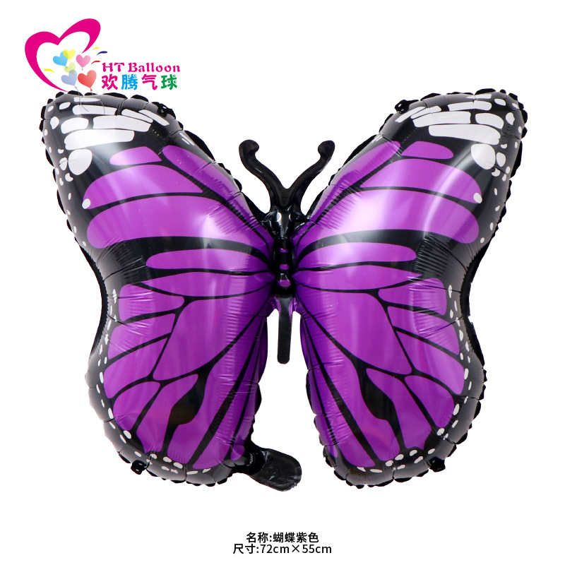 新款蝴蝶气球 粉紫银蝴蝶 女宝宝满月生日拍照气球装饰银彩蝶气球