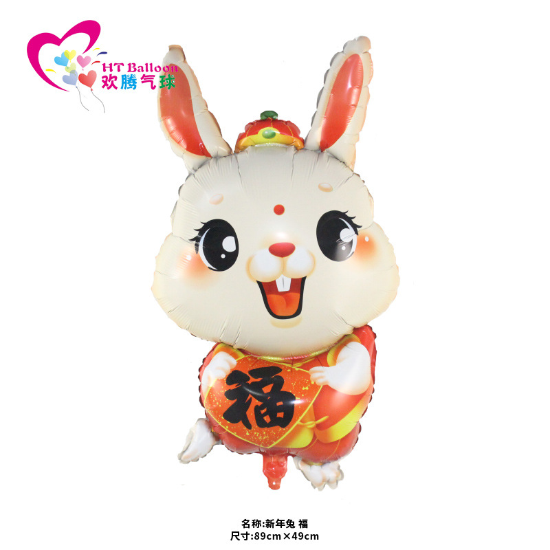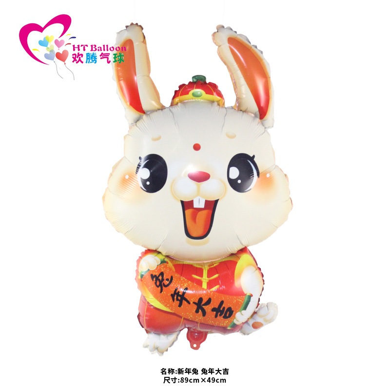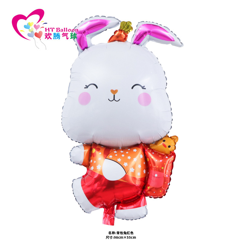 卡通丛林大眼可爱新年兔子气球 丛林兔儿童生日房间派对装饰布置