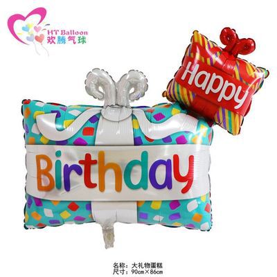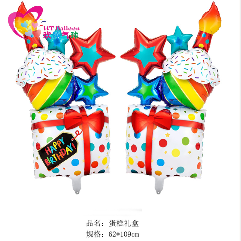 大号生日蜡烛蛋糕 生日礼物礼盒铝膜球 宝宝生日派对装饰气球