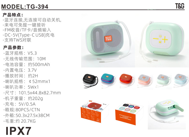 跨境ipx7防水蓝牙音箱无线低音炮高音质迷你小型音响户外对联音箱