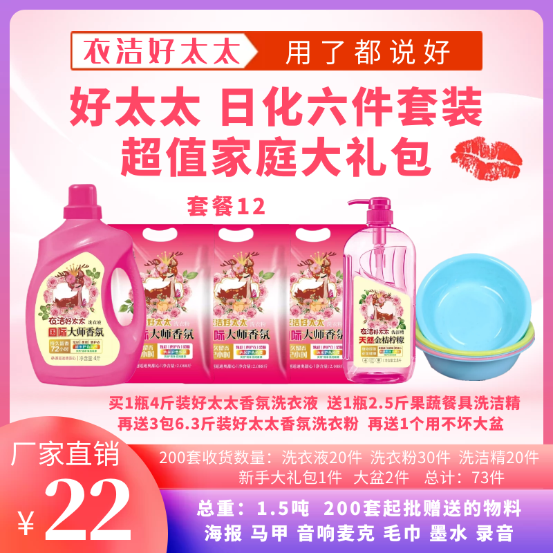 日化六件套衣洁好太太洗衣液洗衣粉大盆6件套摆地摊货源批发